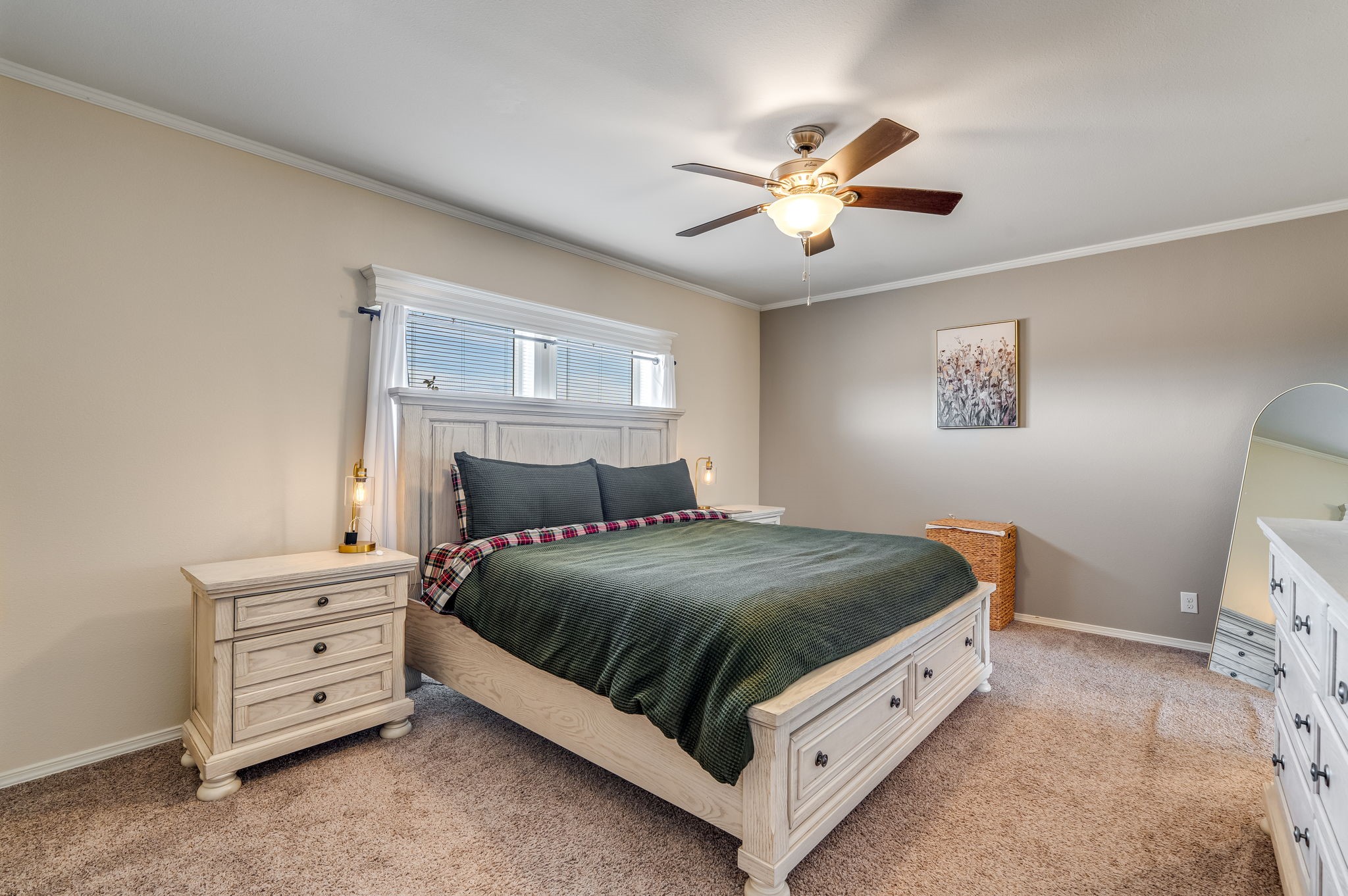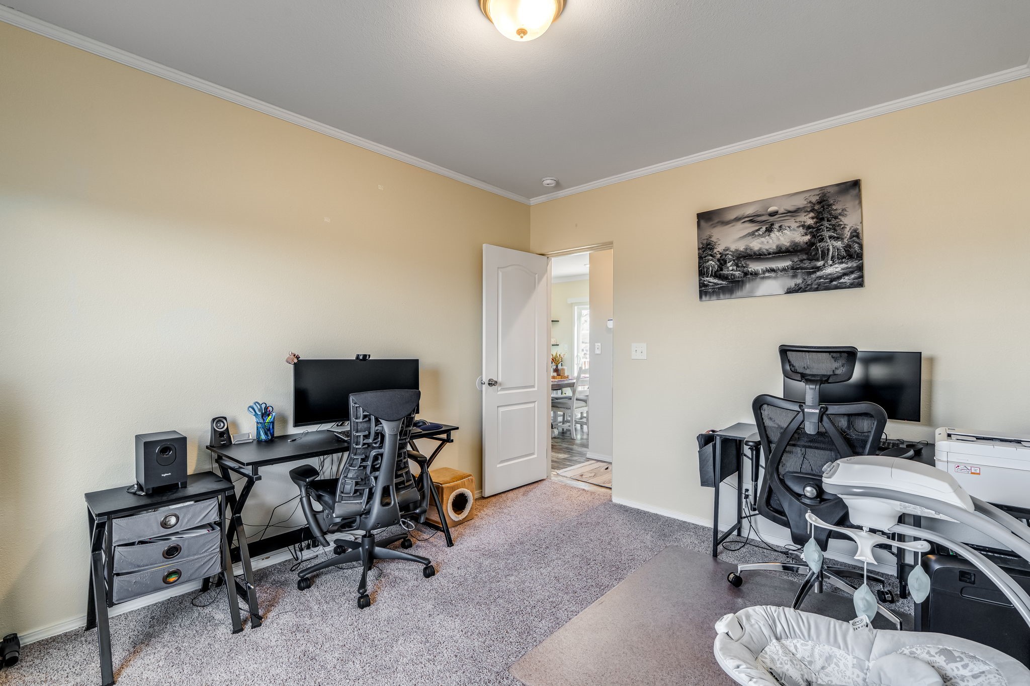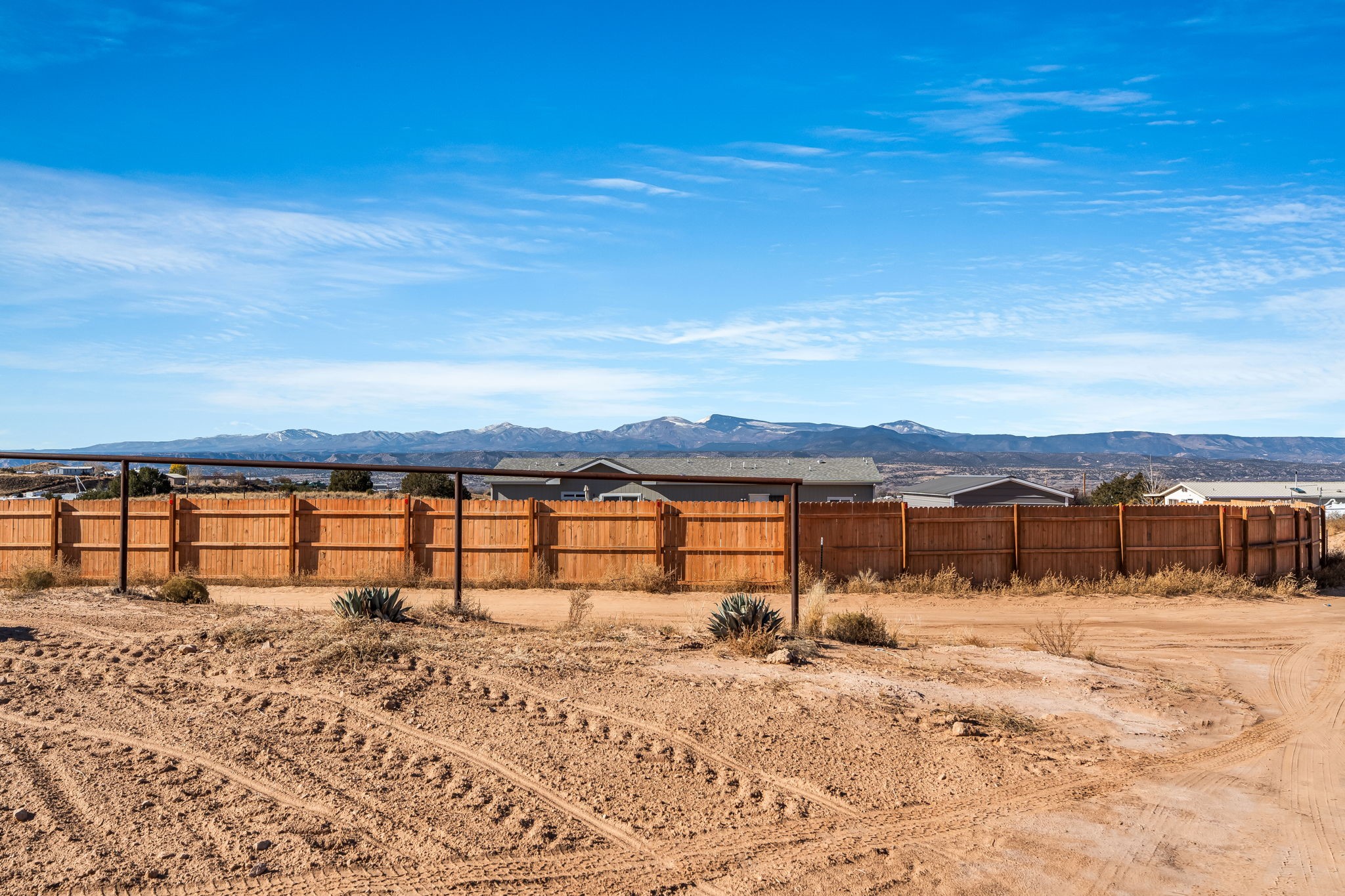 Enjoy wide open views of the Espaola Valley from this elevated .93-acre property. This 2020 modular home offers a comfortable layout with an open living, dining, and kitchen area designed for everyday living and entertaining. The kitchen features abundant cabinet space, an oversized pantry, and like-new appliances. A separate utility room provides additional storage and access to the backyard.The primary suite includes a walk-in closet and full bath with double sinks and a large soaking tub. Two additional bedrooms are located on the opposite side of the home for added privacy, each with its own walk-in closet. Refrigerated air keeps the home cool in the summer, and crown molding, recessed lighting, and modern finishes add a polished touch.The fully fenced property includes a metal pipe fence surrounding the entire lot and offers both sunrise and sunset views, along with nearby access to local trails. Convenient commute to Los Alamos and serviced by Santa Fe County water.