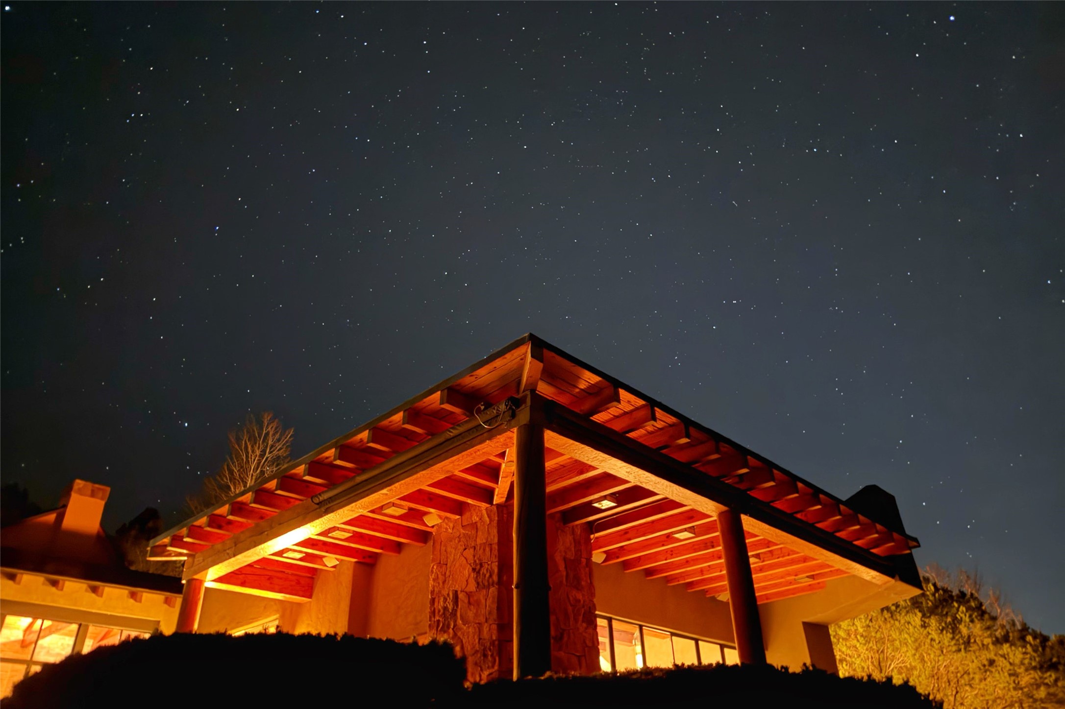 Discover an organic high-desert contemporary estate where glass, stone, and steel dissolve the boundary between indoors and out. Conceived by renowned architect Ed Boniface and built by Doug McDowell, this stunning 6 bed,10 bath compound offers a rare opportunity to own a piece of architectural history while enjoying the perfect balance of seclusion and accessibility, just 15 minutes from the Plaza. Set on an expansive 53+ acre parcel in the coveted, gated, Santa Fe Summit, this exceptional property features three distinct structures thoughtfully positioned across the grounds. The custom main residence showcases the signature style of Boniface, with flowing spaces that blur the boundaries between indoor and outdoor living, highlighting stunning, expansive views from the Jemez Mountains all the way to Colorado. Extensive floor-to-ceiling windows and natural stone add an organic component harmonizing with the surrounding landscape. In addition to an entertainer's dream kitchen, the grand living room, large dining area, and library anchor the public spaces. The primary suite with a sitting area and office offers separate closets and spa-like baths, each with access to the outdoors, a generous gym, game room, and media room occupy the lower level. A separate 3-bedroom guest house provides privacy and comfort for visitors, while the spacious, versatile studio is ideal for art, yoga, music, or creative pursuits that can be converted into an additional guest residence. The meticulously designed grounds invite both relaxation and recreation, featuring a pool perfect for morning swims. Multiple outdoor spaces are perfect for meditation, entertaining, or admiring the sunset. A secluded putting green and an enclosed hot tub with city views complement the property. Separate garages will accommodate 6 vehicles. A truly once-in-a-lifetime offering for the discerning buyer seeking prestige and an unparalleled pedigree.
