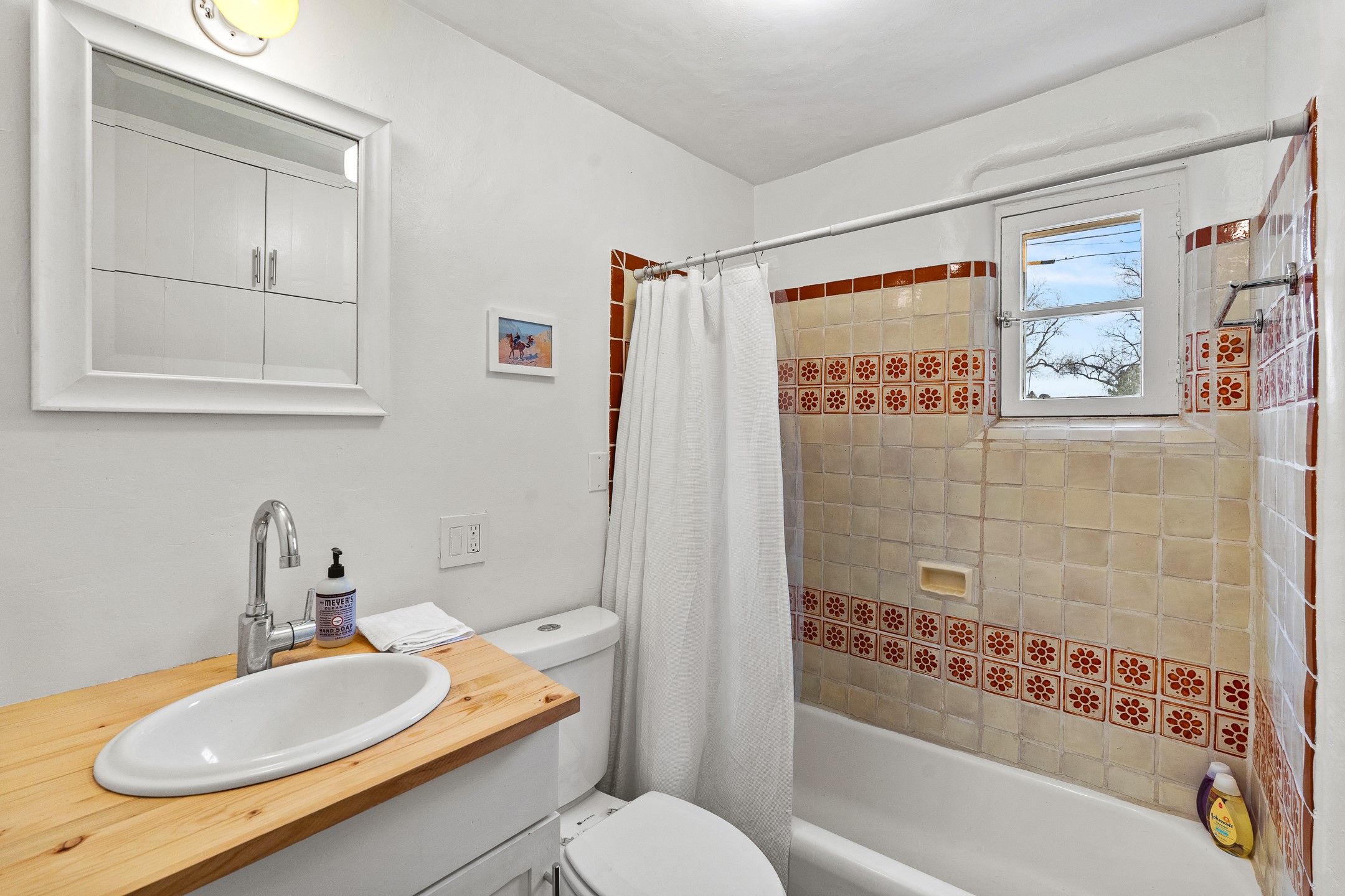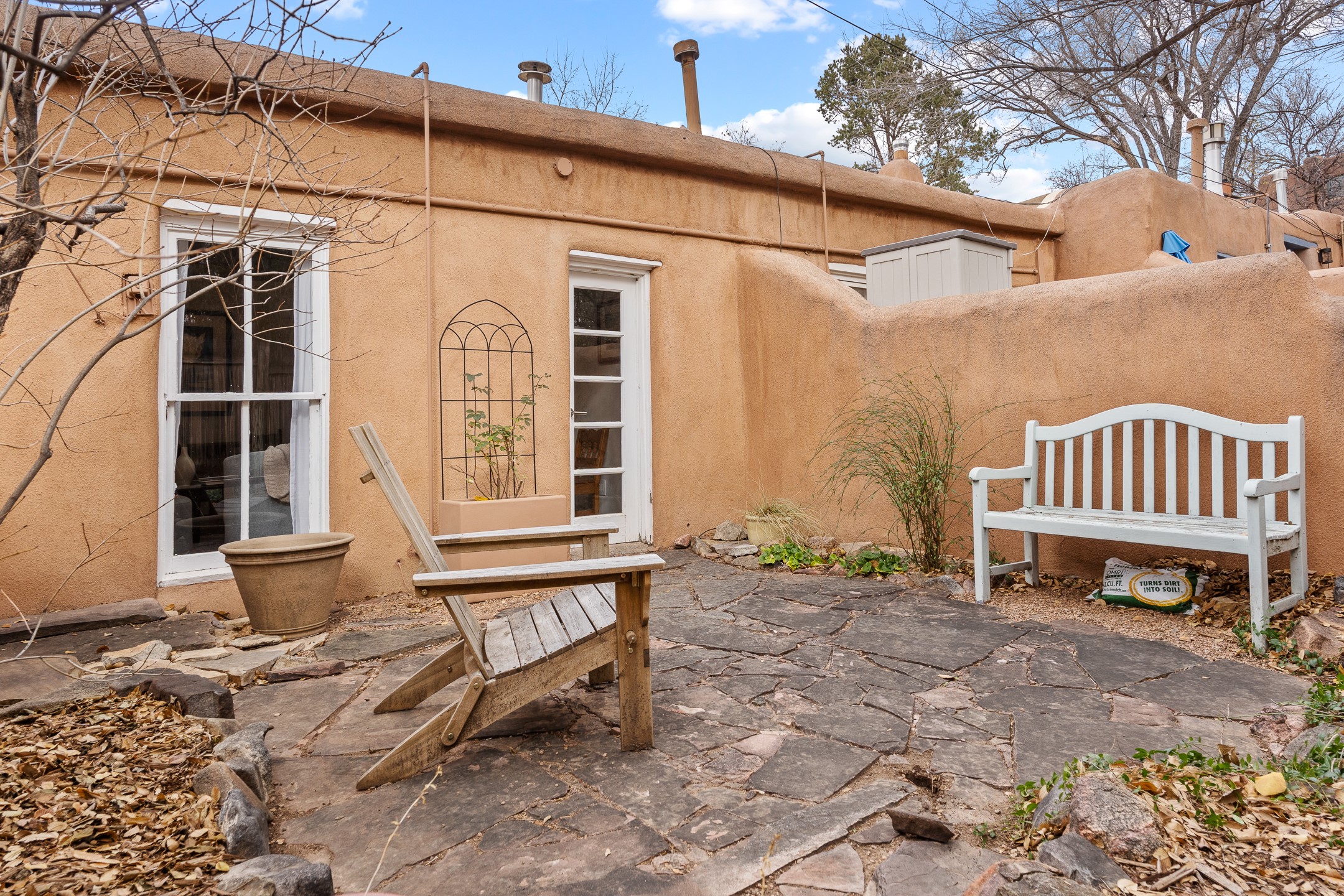 Tucked in the storied Webster Compound on Garcia Street, this enchanting adobe retreat offers a rare opportunity to live within one of Santa Fe's most culturally significant enclaves. Part of an artist colony that nurtured writers, poets, and painters. This timeless residence is more than a home. It's a connection point to Santa Fe's creative soul.Flagstone floors, hand-plastered walls, skylights, and vigas create an atmosphere that feels both grounding and uplifting, an old-world sanctuary shaped by nearly a century of history. The great room centers around an inviting kiva fireplace, its soft glow anchoring the space whether you are relaxing, dreaming, or creating. Doors and divided-light windows open to a south-facing walled garden where winter sunlight warms the adobe and summer trees cast delicate shade. The patio, lilac tree, and serene enclosure evoke the feeling of a hidden courtyard in a far-off place.The newer owner will step into a lineage. Willa Cather, Arthur Sze, Ramona Sakiestewa, Stanley Noyes, and Kon Tiki author Thor Heyerdahl once lived and created within this very compound, shaping works that traveled far beyond Santa Fe. There is a quiet hum of inspiration that lingers on these grounds, and the new steward of this residence will feel it immediately. This home whispers a sweet lullaby.The kitchen blends traditional charm with modern usefulness. Oak floors, stainless steel appliances, custom cabinets, pantry space, and a generous wood countertop. The full bath features classic Mexican tile. With a design that welcomes both simplicity and depth, the home becomes an ideal escape for contemplation, creativity, and renewal.Just moments from Downtown Subscription, Canyon Road, Garcia Street Books, Museum Hill, hiking trails, and the Plaza, this location is quintessential Eastside living, with treed lanes, intimate beauty, and the sense of belonging to a part of Santa Fe that still breathes with history, art, and human connection.
