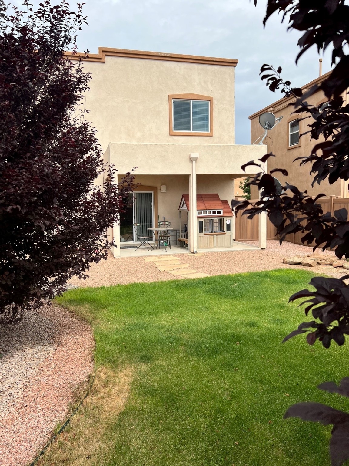 Welcome to this sweet and inviting two-story single-family home in the highly desirable Turquoise Trail community. This cozy yet well-designed residence offers 3 bedrooms, 2.5 bathrooms, and a thoughtful layout that provides warm, welcoming spaces ideal for everyday living.Enjoy the comfort of central refrigerated air, the convenience of front-yard drip irrigation, and the peace of mind of a fully wired security system. Step outside to a lovely backyard, perfect for relaxing evenings, entertaining friends, or hosting weekend barbecues.Just one minute from 599 and I-25, this location offers quick accessibility to Albuquerque, downtown Santa Fe, and Los Alamos, all while maintaining a peaceful, homey atmosphere. Homes in this neighborhood rarely come on the market, thanks to its charm and amenities.Turquoise Trail offers residents four community parks, a volleyball court, playgrounds, walking trails, and gorgeous scenic views, creating a lifestyle that blends comfort, convenience, and outdoor enjoyment.This home is perfect for anyone seeking a welcoming space in an unbeatable location. Move quickly--this one won't last.