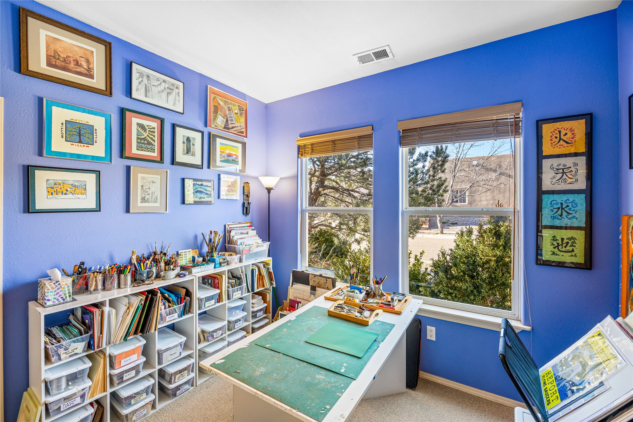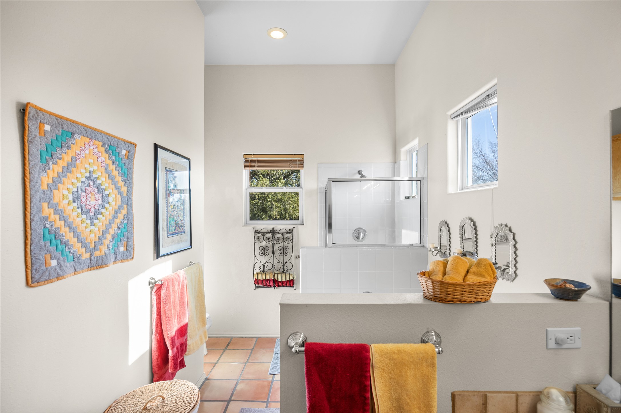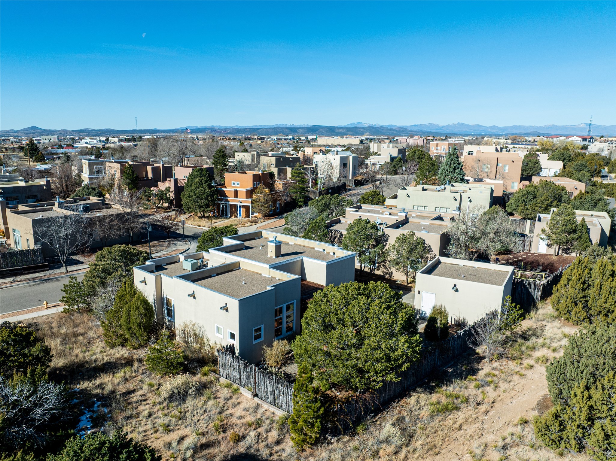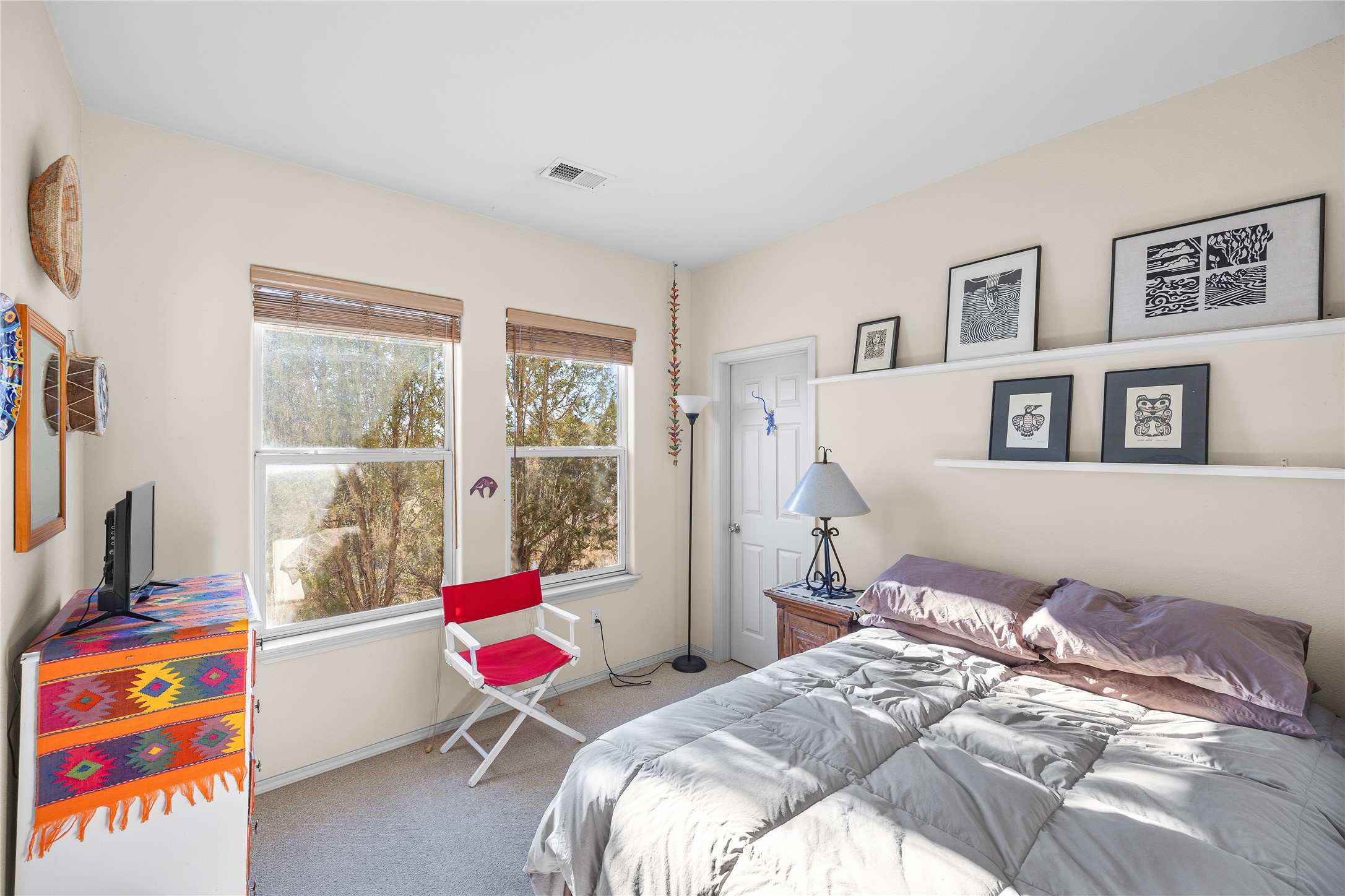 Get ready for this lovely, well cared for single level home in Nava Ade! Sited on a sizeable lot bordered on two sides by green space and adjacent to the walking path, this property features all the interior and exterior comforts that allow for authentic Santa Fe living. Enter through a sweet portal to a spacious Living Room with high ceilings adorned with wood beams. A decorative wall, which sports a two-sided gas fireplace, separates the Living Room and oversized Dining Room/Sitting Room. A wall of tall windows with wooden blinds graces this area. Beautiful Saltillo tile flooring adds to the warmth and Southwestern feeling of these rooms. Exit the Living Room through sliders that lead to a charming portal, ideal for outdoor entertaining. The whimsical rear yard provides a delightful retreat year-round! Custom shelving in all bedroom closets, and owner-made tin accents for the home's vertical blinds are thoughtful and creative touches. In addition to miles of walking paths, enjoy the community clubhouse, pool and gym. This much loved, special home will enchant its next lucky owner.