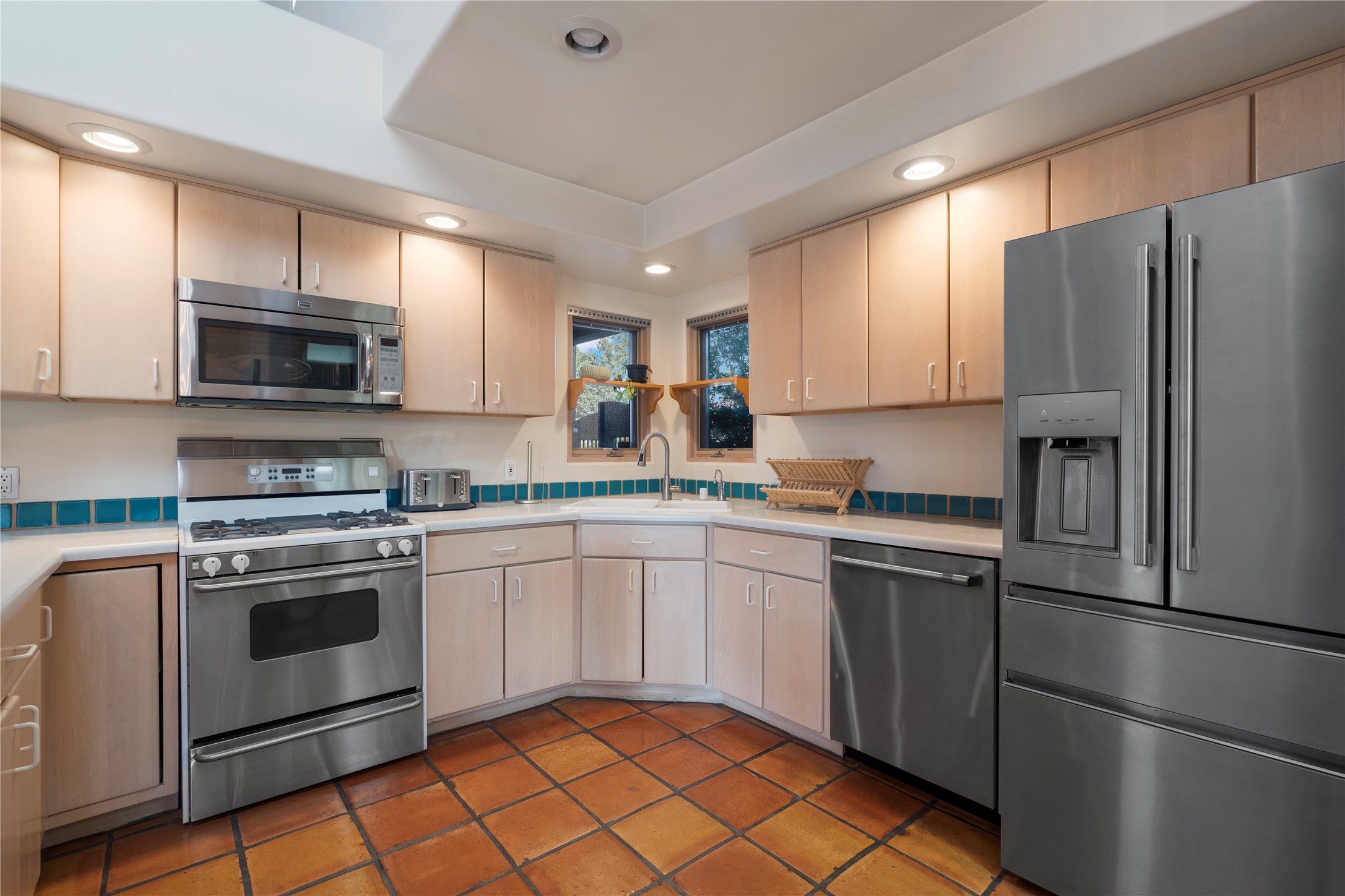 Experience an enchantingSouthwestern retreat in one of Santa Fe's most exclusive neighborhoods.This stunning 3 bed, 3 bath home has soaring ceilings with exposed vigas and exquisite Saltillo tile floors, set within an open, light-filled space enhanced by expansive windows.The inviting living area centers around a kiva fireplace and flows into a chic dining area and state-of-the-art kitchen outfitted with stainless steel appliances. Perfect for rental opportunities with all furniture, household items, artwork, and dcor ensures a truly turnkey move-in experience. Adding to its appeal are a private gated entrance, lush mature landscaping, 2 car garage, all ideally located just minutes from shopping, dining, and downtown Santa Fe.