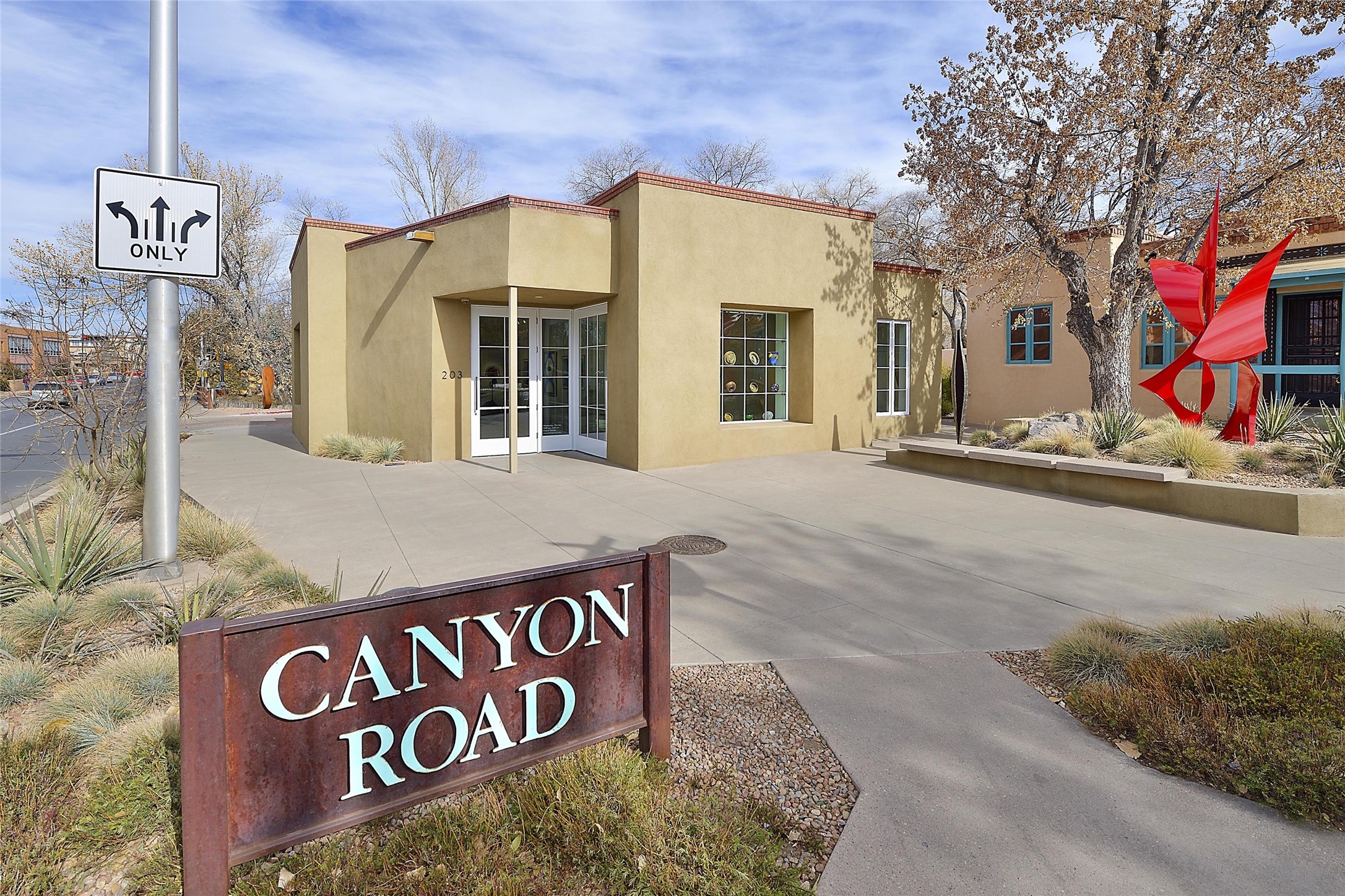 Extraordinary retail and commercial opportunity at the beginning of iconic and world-renowned Canyon Road. Currently operating as a restaurant and retail shops, zoning allows for various commercial, retail, and residential uses, and there is logical space configuration into four separate but adjoining and distinct units.