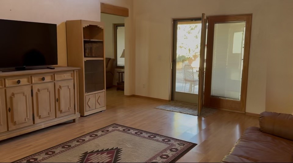 Nestled on nearly 3 peaceful acres in the tranquil Puesta Del Sol community, 44 Calle Benavidez embodies the soul of Santa Fe living--open skies, timeless craftsmanship, and quiet comfort surrounded by nature. Just minutes from the Santa Fe Airport with easy access to Highway 599, this property offers both convenience and serenity.Built in 2000, this 3-bedroom, 2-bath home welcomes you with radiant heat, Pergo and tile floors, and rich pine details throughout, including vigas and tongue-and-groove ceilings that soar up to 18 feet in the great room. The space is filled with natural light from large windows, creating an inviting, airy feel. Enjoy three fireplaces--in the main living area, primary bedroom, and covered back patio--perfect for cozy winter nights or peaceful summer evenings.Both bathrooms feature jet tubs, and skylights in the guest bath and laundry bring in warm, natural light. The home offers electric and gas hookups for the stove and dryer, a gas water heater, and is cable or satellite ready for modern convenience. Ceiling fans in the great room and TV room provide gentle circulation and comfort throughout the seasons.Outside, the enclosed backyard provides a private retreat while still showcasing stunning views of the Sangre de Cristo Mountains. The property features a private driveway, 3-car attached garage, a legitimate Tuff Shed for storage, and a landscape that's alive with year-round New Mexico wildlife. Gentle arroyo features and walking trailsmeander through the land--perfect for morning strolls or pets. The property is also zoned for horses, and a small corral area remains from its previous use, a rare find within an HOA community.Whether you're relaxing by the fire, soaking in the view, or enjoying the open desert air, 44 Calle Benavidez offers a lifestyle defined by peace, space, and the authentic beauty of Santa Fe.