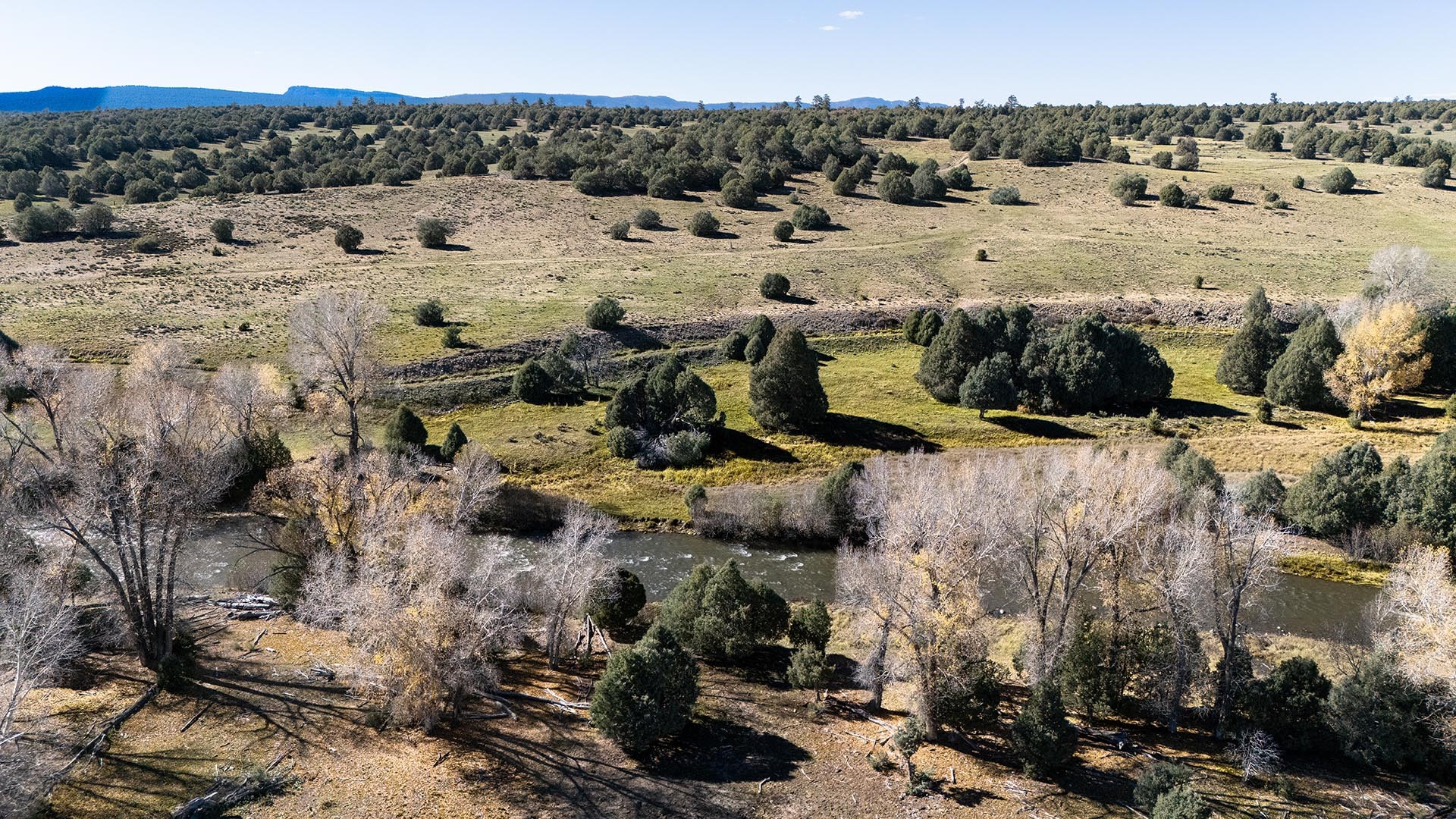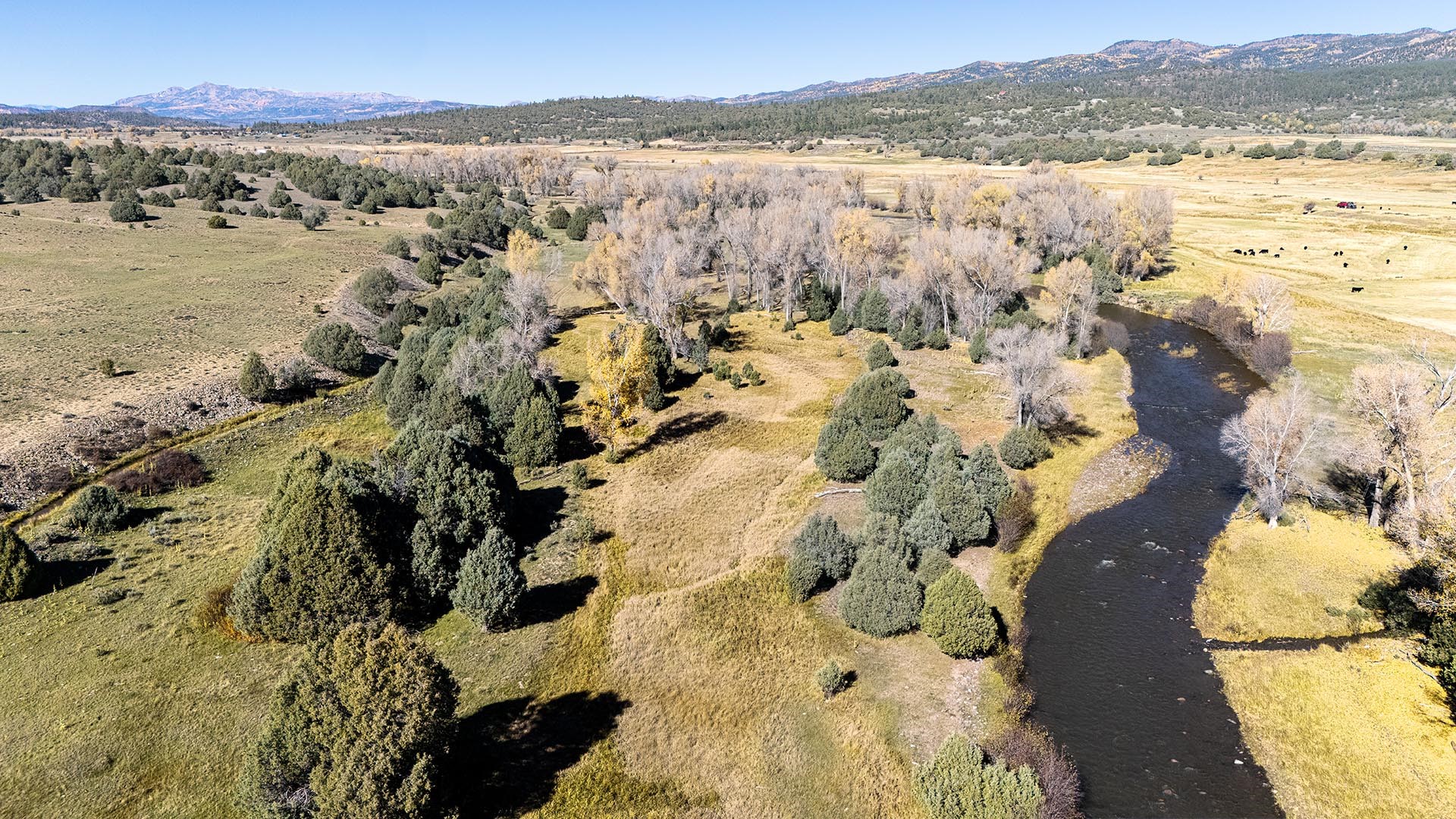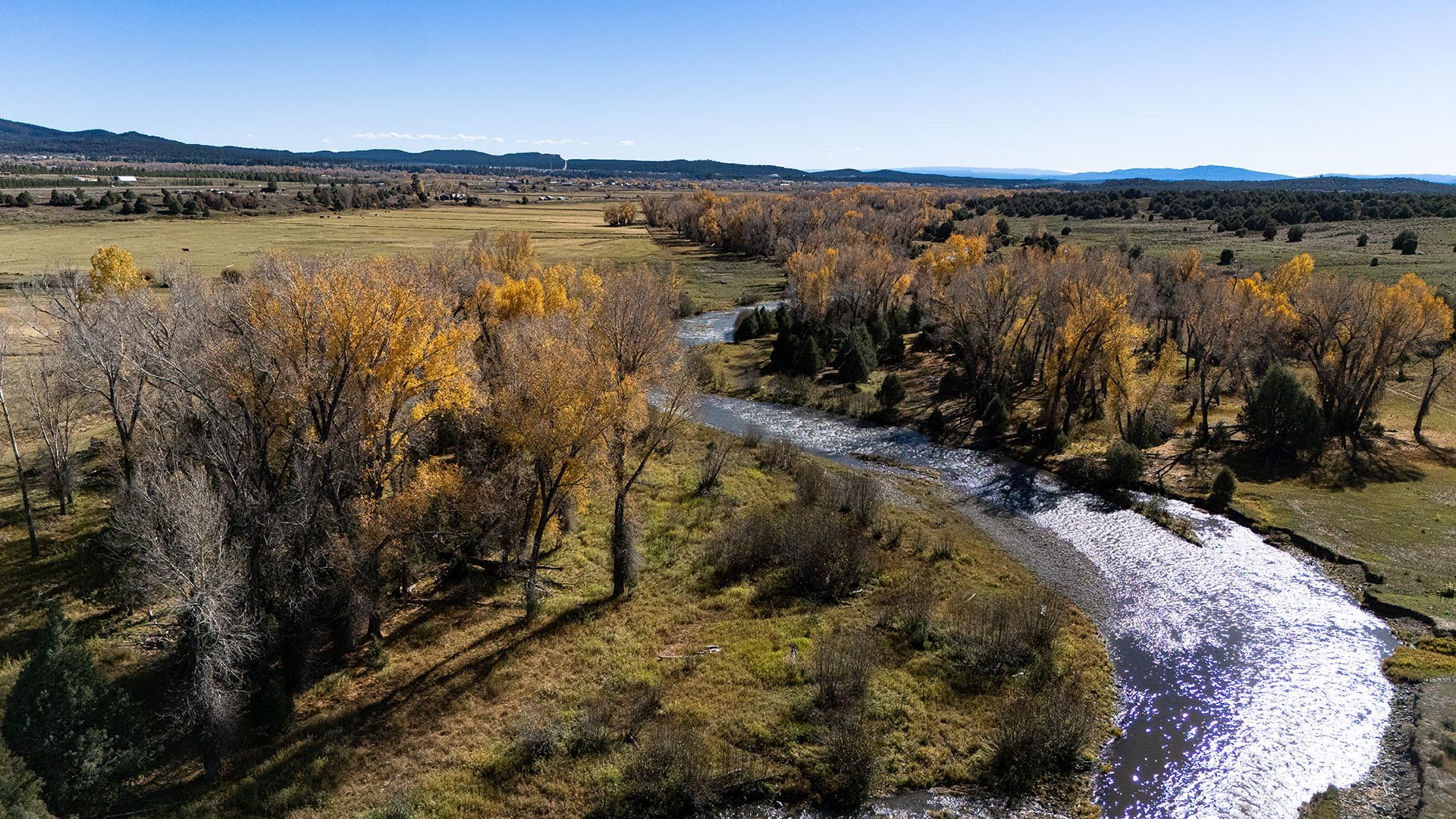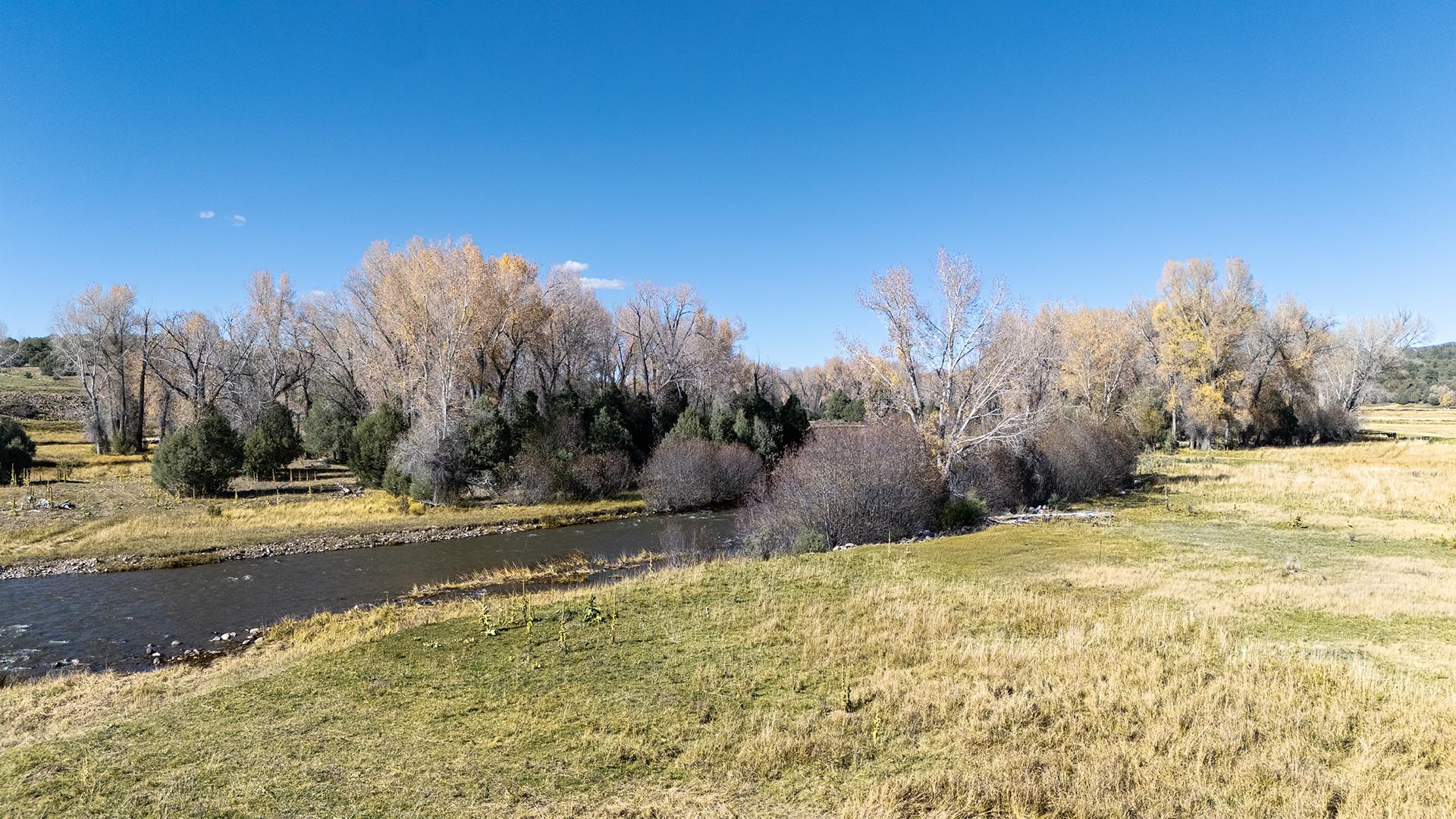 El Barranco Ranch on the Chama River consists of 440 gorgeous acres, blessed with 1.5 miles of both sides of the Chama River in Northern New Mexico. The El Barranco trio of fly fishing, agriculture, and big game hunting is difficult to match on one property. The ranch offers excellent fly fishing on the trout-rich Chama River, which winds through a beautiful setting of cottonwoods. Fly fishing is a prominent feature, but the opportunity to hunt elk or mule deer cannot be overlooked. The ranch borders the vast, undeveloped acreage of the Jicarilla Apache Nation, as well as the renowned elk and mule deer habitat that exists on those lands. Elk and mule deer routinely visit El Barranco's hayfields and river bottom to feed and water. The ranch is eligible for and has received multiple hunting vouchers. It is not unusual at El Barranco in the early fall to hunt elk or mule deer in the morning, fish for large brown and rainbow trout in the middle of the day, and then enjoy another evening hunt. There is more value than just the first-class recreational aspects of the ranch. Substantial senior water rights lead to great hay production and cattle grazing, which has been the primary focus of the current owners. Farm work can be done hands-on or by retaining existing hay and grazing leases. At a time when live water fishing properties and senior water rights are hard to find, a rare recreational and agricultural opportunity awaits the buyer of this gold medal property. Buyers seeking additional acreage should consider the 270 acre El Barranco East property, located across the highway.