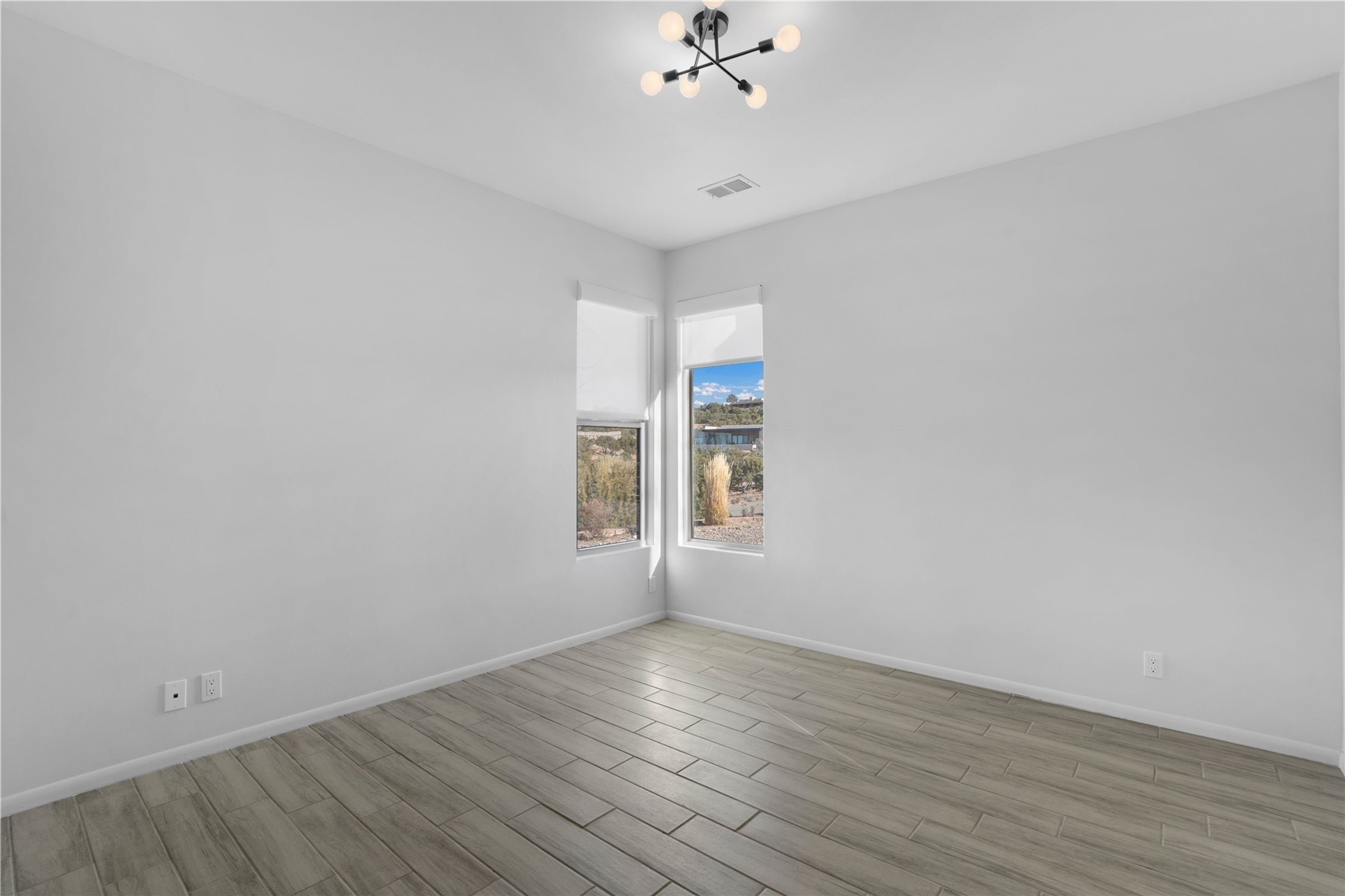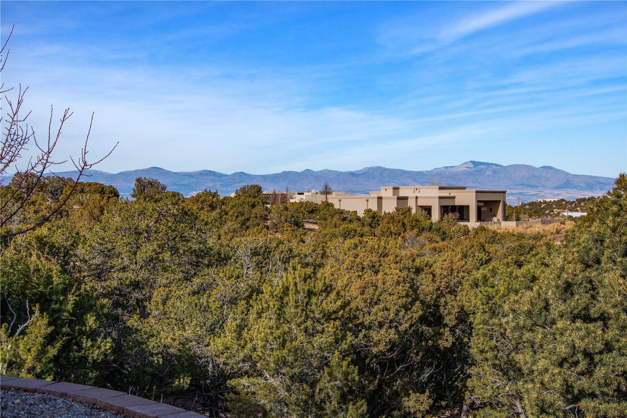 Set against the timeless landscape of northern New Mexico and beautiful views of the Jemez and Sangre de Cristo Mountains, this inviting home on 2.6 acres blends classic Santa Fe style with comfortable modern living. Enjoying a private but convenient setting in the desirable Sundance Ridge subdivision off of Tano Road, this home consists of just over 2,400 sq. ft. of living space, configured as 3 bedrooms and 2.5 baths. The 5-year old home has a wonderfully open floor plan with high ceilings, which give the home a wonderful sense of light and space. The well appointed kitchen with Bosch appliances has great storage and counter space with an enormous island with plenty of bar seating, a large pantry with skylight and there is excellent separation between the guest bedrooms and primary suite. A wall of windows on the west side of the home looks out to the ample back patio with gas hookup for a grill, walled garden and lawn for unparalleled indoor/outdoor living. Enjoy the serene surroundings, big sunset views and dark night skies! All of this less than 15 minutes to the nearest grocery store, and less than 20 minutes to the Santa Fe Plaza!