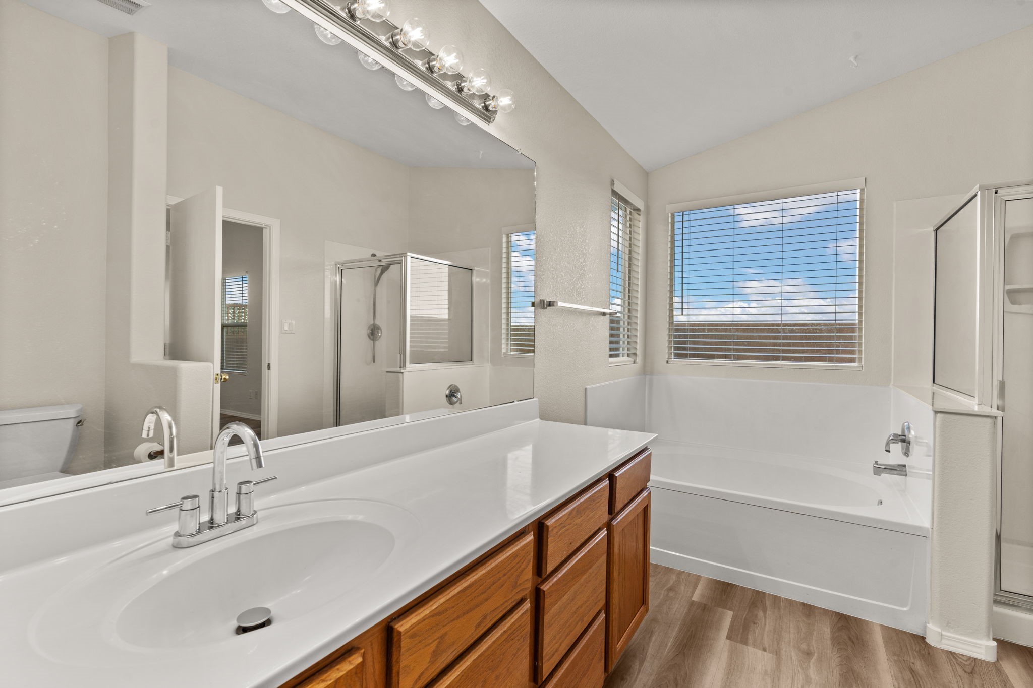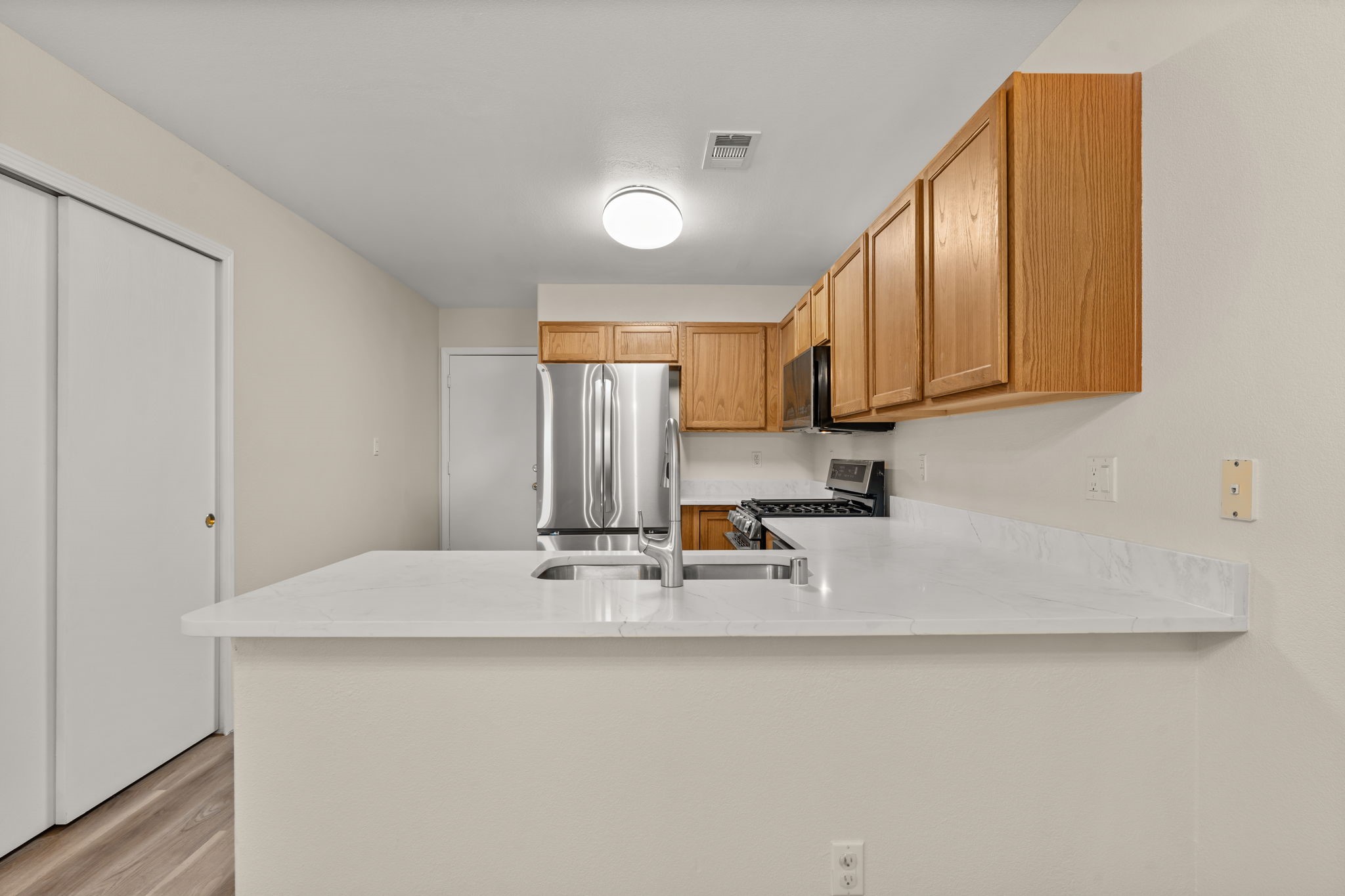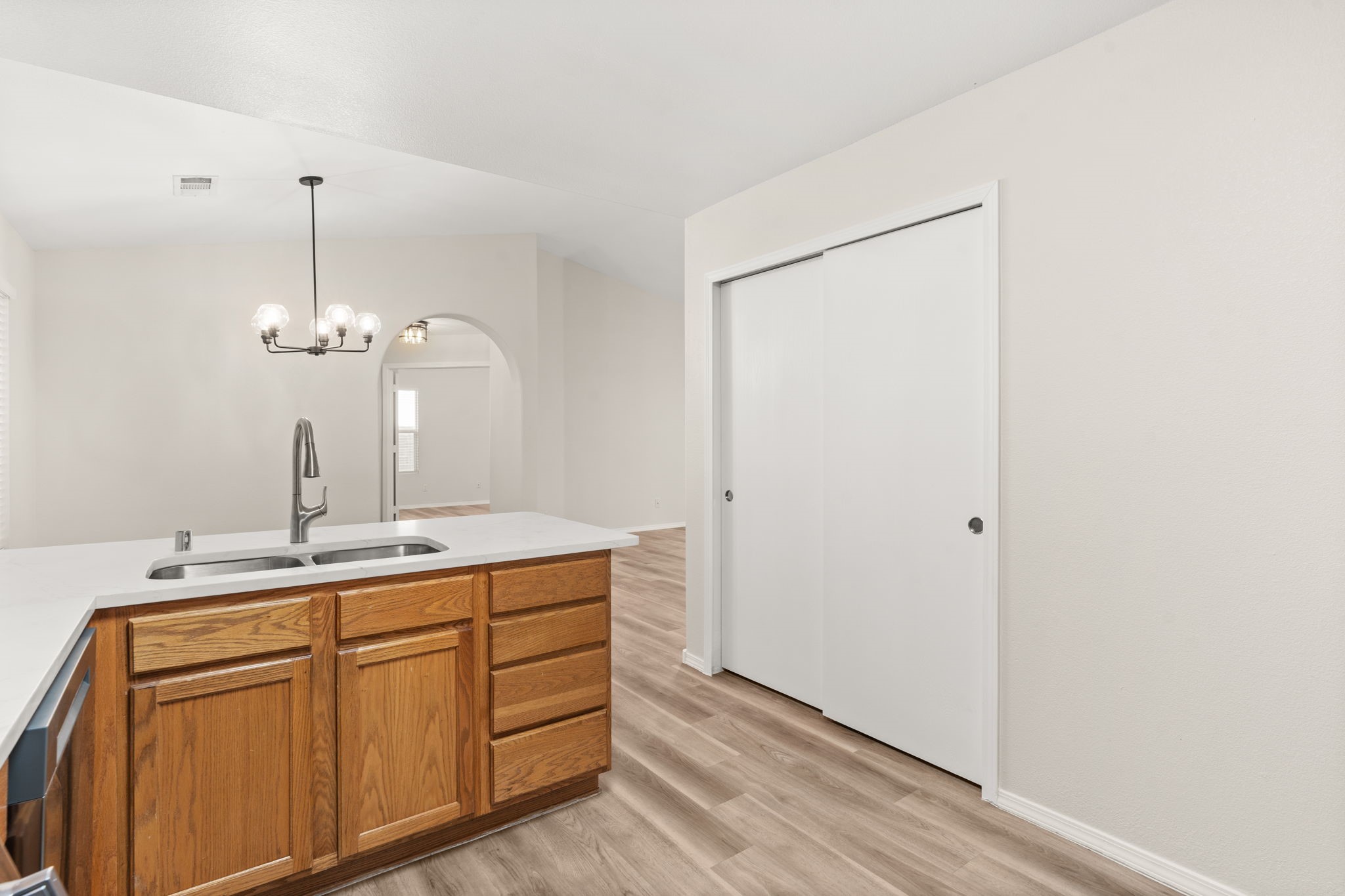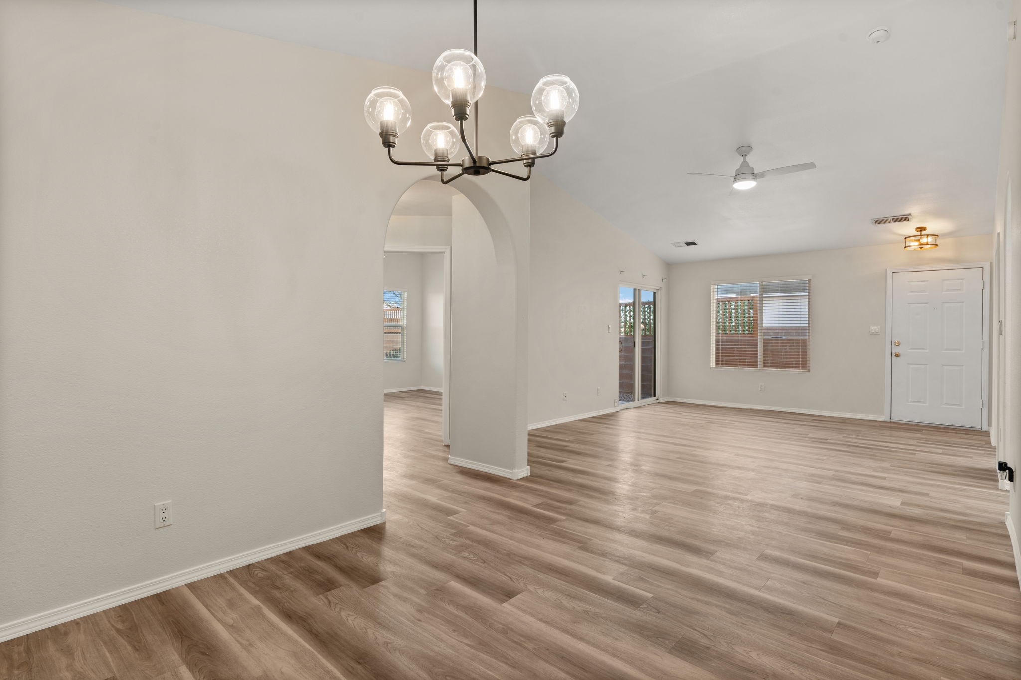 Refreshed Kitchen, take another look. Welcome to this beautifully updated home, situated in a small gated subdivision offering both comfort and privacy. Step inside to find all new LVT flooring and blinds throughout, complemented by fresh paint and modern updated lighting that create a bright and inviting atmosphere. Kitchen boasts all new stainless appliances and quartz counters. The vaulted ceilings enhance the spacious feel of the great room, while refrigerated air keeps the home cool and comfortable year-round. Enjoy the tranquility of the outdoors with a backyard that backs to open space and a walking path, offering extra privacy and the perfect setting for evening strolls or morning coffee. Move-in ready. Roof, HVAC and water heater all less than 6 years old.
