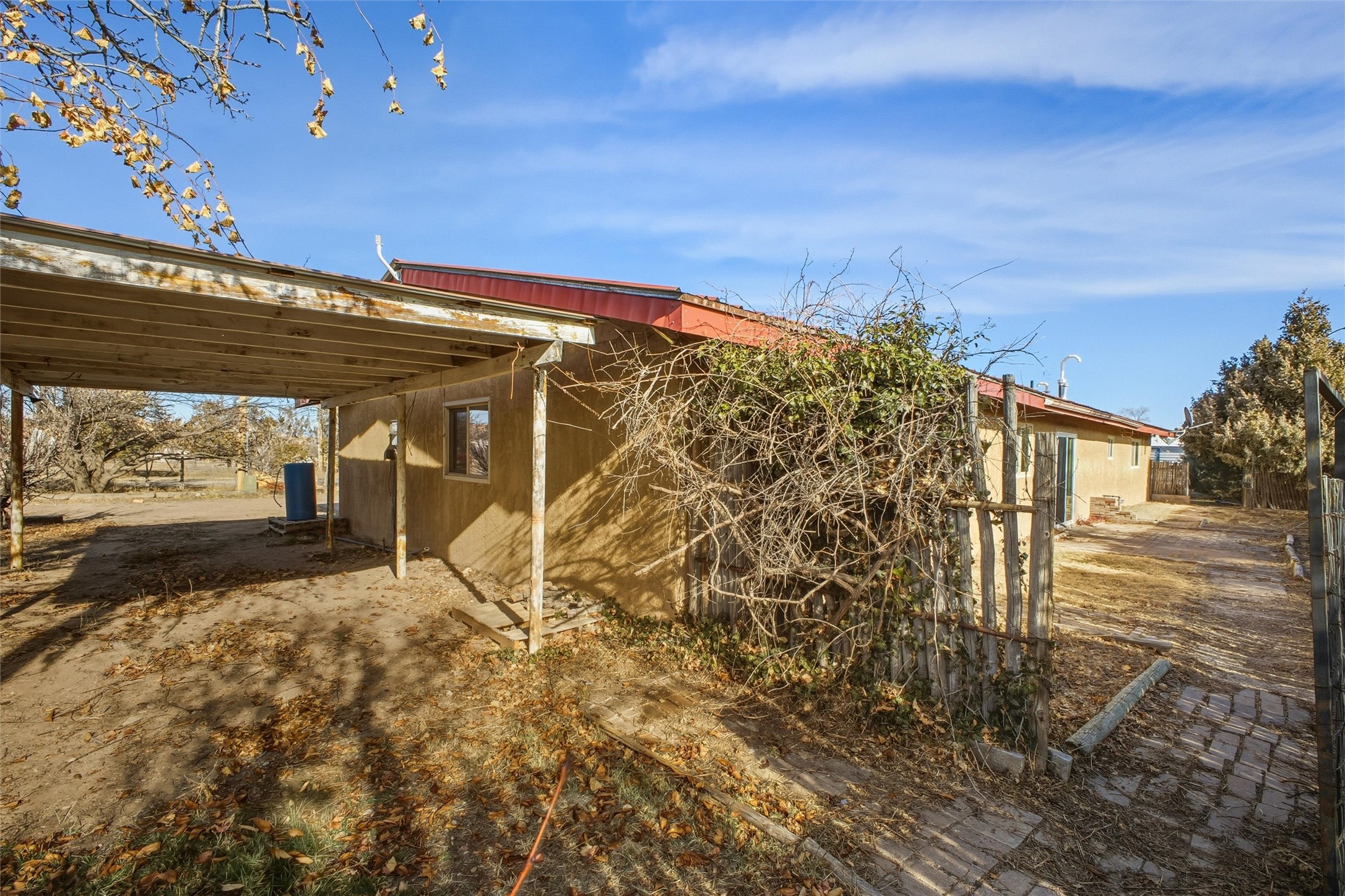 Nestled on over an acre of land with breathtaking mountain views, this updated and well-maintained home offers the perfect blend of modern convenience and rustic charm. From its spacious, light-filled interiors to its serene outdoor setting, this property provides the ideal environment for both relaxation and creativity. With a short commute to Los Alamos and Santa Fe, you can enjoy the peace and privacy of rural living without sacrificing convenience. The heart of the home is the expansive, modern kitchen. Featuring luxurious granite countertops, a large central island with extra storage, and stainless steel appliances, this kitchen is designed for both function and style. Whether you're preparing meals for the family or hosting friends, the layout is perfect for food prep and entertaining, with ample room to gather around the island. A charming wood burning stove located in the kitchen adds warmth and ambiance, creating a cozy focal point for winter mornings and evenings spent cooking and connecting. The kitchen flows seamlessly into the main living areas, offering an open and comfortable layout. The property offers an incredible amount of space for gardening, hobbies, or projects. Mature fruit trees add charm and productivity to the landscape, while the insulated shed provides excellent space for storage or can easily be used as a workshop. The home features an updated bathroom with modern fixtures and stylish finishes, offering both comfort and functionality. This is a rare opportunity to own a well-cared-for home with space to grow, stunning views, and easy access to nearby communities. A perfect balance of comfort, functionality, and location.