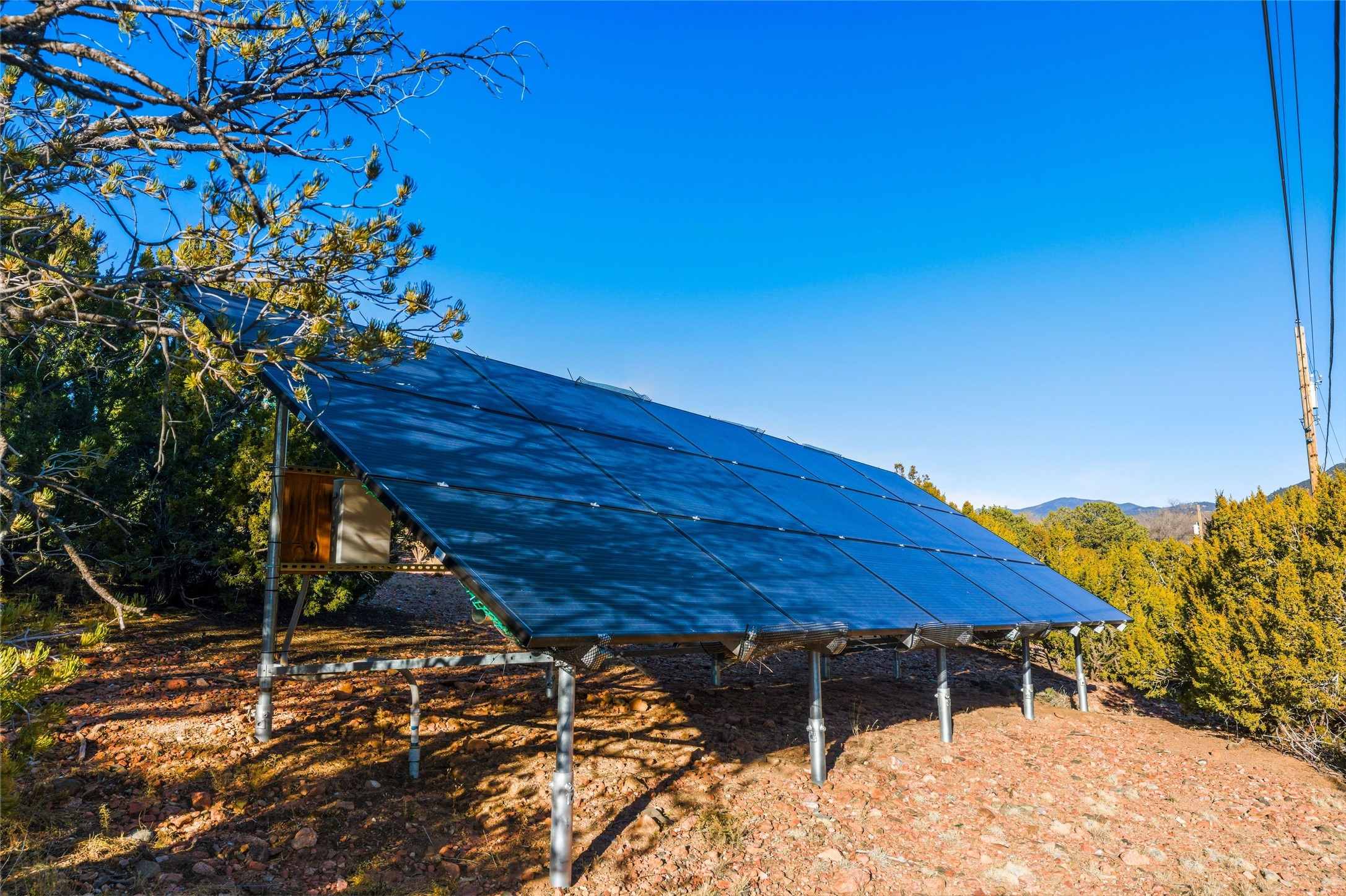 Centrally located in this quiet Museum Hill neighborhood with stunning mountain views from every room, this chic and updated 3,366 +/- sq.ft. home is situated on 1.1 +/- private acres with a fenced and gated backyard ideal for raised bed gardens and nature enthusiasts. There are are a total of 3 bedrooms and 3 bathrooms. All the bedrooms are situated on the main entry level. Downstairs, a third living area with a 3/4 bathroom and an additional washer and dryer, could function as a private guest quarters with its own access, or as a flex space/office - perfect for a growing family or professionals needing additional work space. A large kiva, wood-burning fireplace anchors this cozy space. Upstairs, the open-concept living/dining room look out onto maturely treed and landscaped views perfect for seasonal living with plenty of room for entertaining. A front entry portal inspires the senses with sunset views. The spacious kitchen with bar seating, stainless appliances, and granite countertops has another family room adjacent to it with a large wood burning fireplace and backyard access. The home is bathed in natural light and skylights. Wood and tile floors cascade throughout adding to the organic warmth of the home. The entire property has been lovingly maintained and updated with spa-like bathrooms and versatile functionality. Solar panels have been added and are owned by the Sellers. Forced gas heating and air-conditioning make this home very comfortable and affordable in all seasons. Accessibility to the downtown and South Capitol areas are what make this property an ideal location to call home.