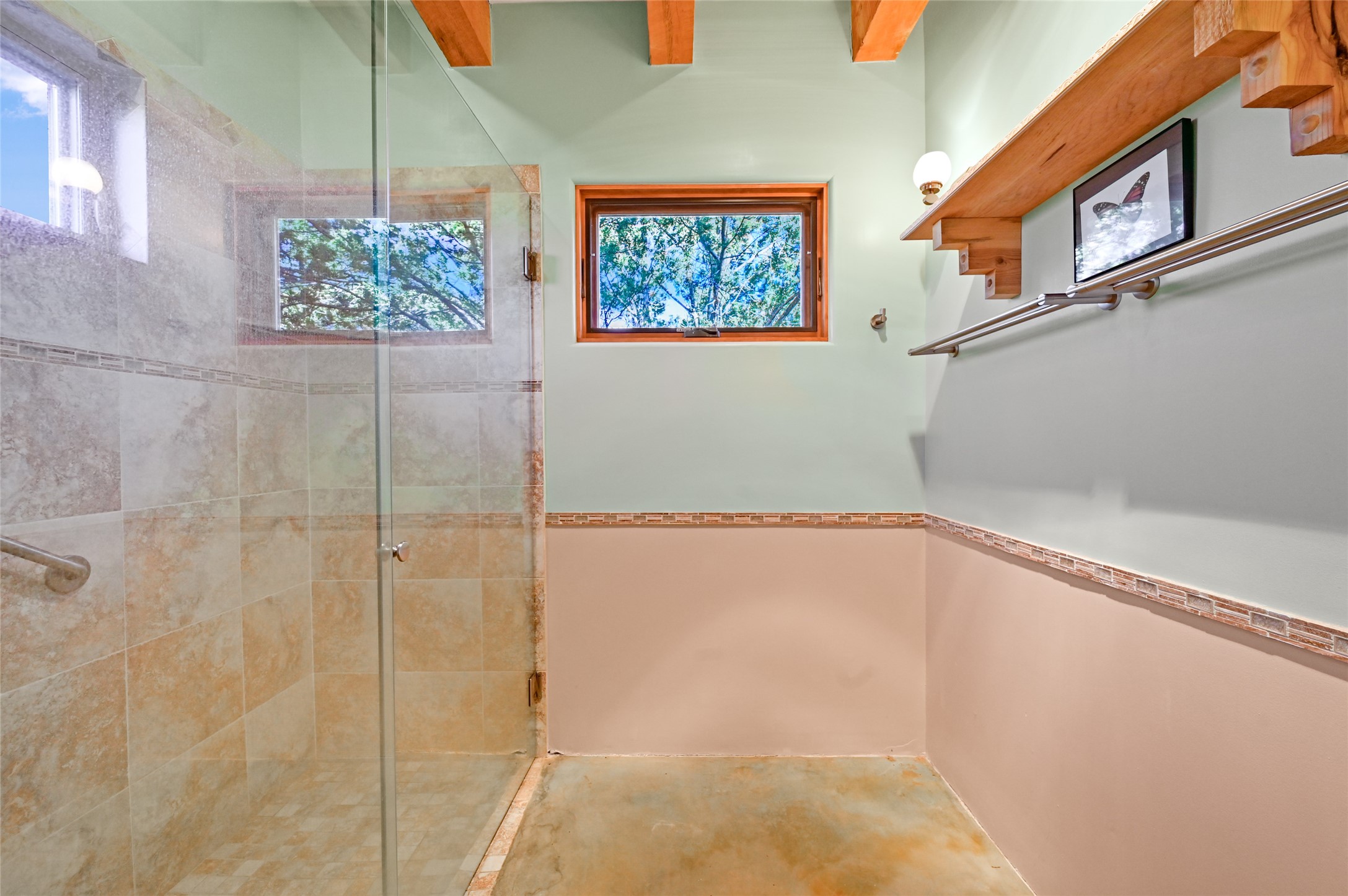 - Interior FeaturesBeamed Ceilings, No Interior Steps