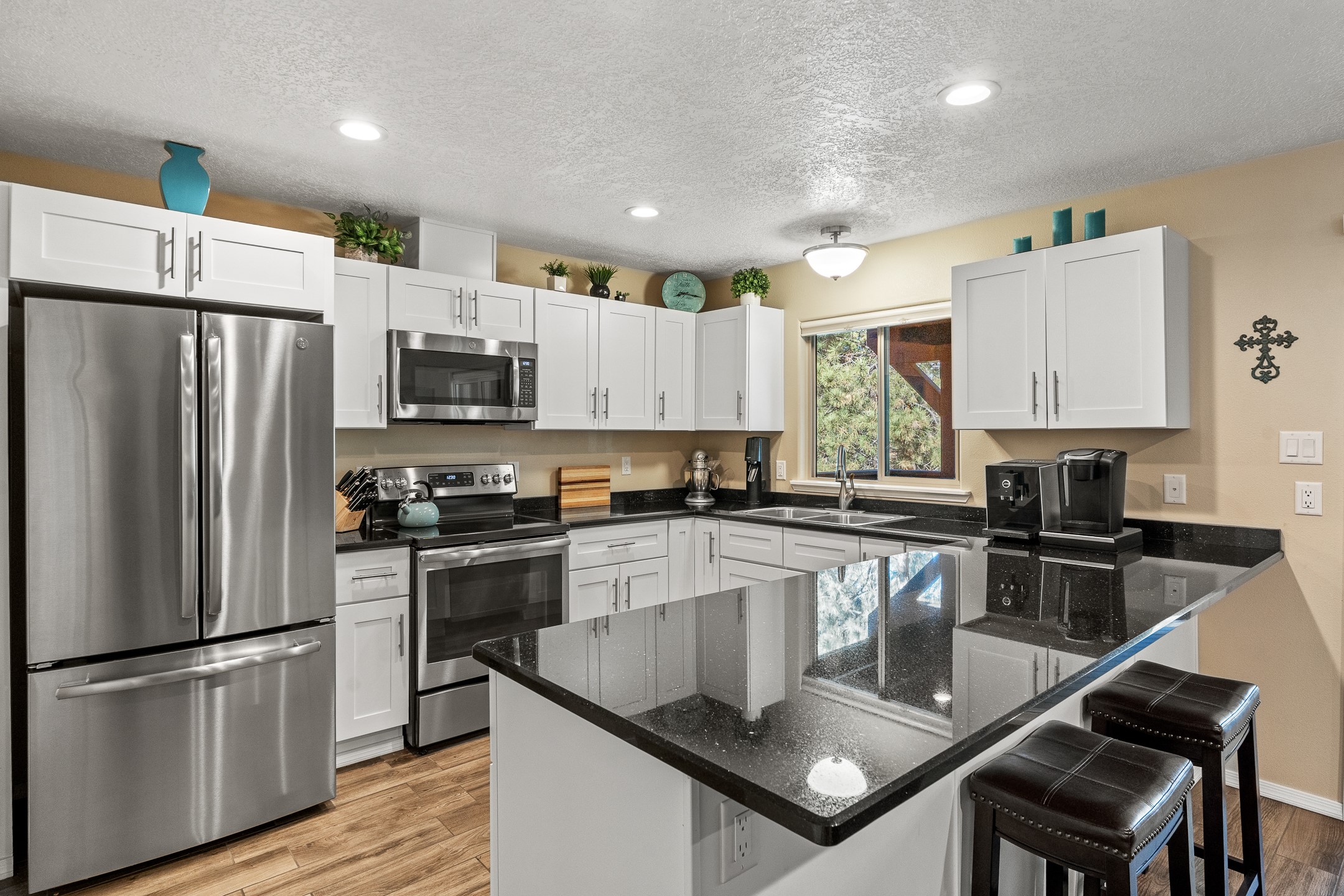 Beautifully remodeled townhome with a desirable multi-level floor plan, multiple decks with scenic views, mini split air conditioning, and a bright loft to top it all off. Welcome to 998 Alamo!Nestled among towering pines, this home offers a peaceful sense of retreat while still showcasing lovely views in North Mesa. Upon entry, you're greeted by updated recessed lighting and flooring that flows seamlessly throughout the main level. Just around the corner, a formal dining area opens to an inviting open-concept layout, connecting the kitchen and living room and extending onto a spacious deck--perfect for entertaining or simply enjoying the tranquil setting. The modern kitchen is equipped with stainless steel appliances, solid-surface countertops, and a charming window over the sink with views of the pines beyond. A conveniently located powder room completes this level.Upstairs, the living quarters await! The primary suite includes an en suite bathroom with a beautifully-tiled, modern shower, as well as a private deck to enjoy views of the night sky. The guest wing features two additional bedrooms, a full bathroom, and a dedicated laundry room.The next level reveals a bright and cheerful loft with large windows, offering flexibility as a home office, reading nook, or additional living space.On the lower level, you'll find a generous recreation area set up with a hot tub--perfect for relaxing after a long day. The spacious two-car garage includes ample storage.This thoughtfully updated home combines comfort, style, and serene mountain living. Don't miss the opportunity to make it yours--schedule a showing today before it's gone!