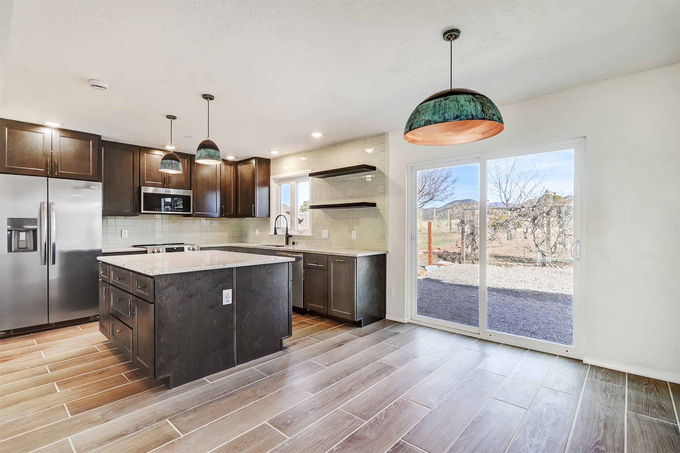 Step into this beautifully updated Eldorado home, where modern improvements blend seamlessly with classic Southwestern style. Completely move-in ready, the home offers comfortable indoor-outdoor living in one of Santa Fe's most sought-after communities. An open, light-filled floor plan welcomes you in, showcasing thoughtful updates and inviting spaces designed for everyday living. The remodeled kitchen serves as the heart of the home, featuring new cabinetry, new countertops, new stainless steel appliances, and a huge island--perfect for casual meals, entertaining, or gathering with family and friends. The living room is warm and welcoming, anchored by a traditional kiva fireplace that adds character and charm. Throughout the home, tasteful finishes, updated flooring, and custom lighting enhance the overall sense of comfort and cohesion. The bathrooms have been attractively updated. Generously sized bedrooms provide comfortable private spaces, while the flowing layout allows for easy movement between living areas. Recent upgrades provide convenience and peace of mind, including a new central downdraft swamp cooler, new water heater, serviced boiler, roof tune-up, brand-new septic tank, and new garage door. A professionally painted interior adds a fresh feel throughout. Outside, enjoy the peaceful setting Eldorado is known for, with space to relax and take in the surrounding natural beauty. Eldorado residents enjoy access to hiking and biking trails, art and cultural attractions, and a variety of dining and shopping options, with only a short drive to downtown Santa Fe. This stunning home offers a comfortable, stylish place to settle in and enjoy the relaxed Eldorado lifestyle.