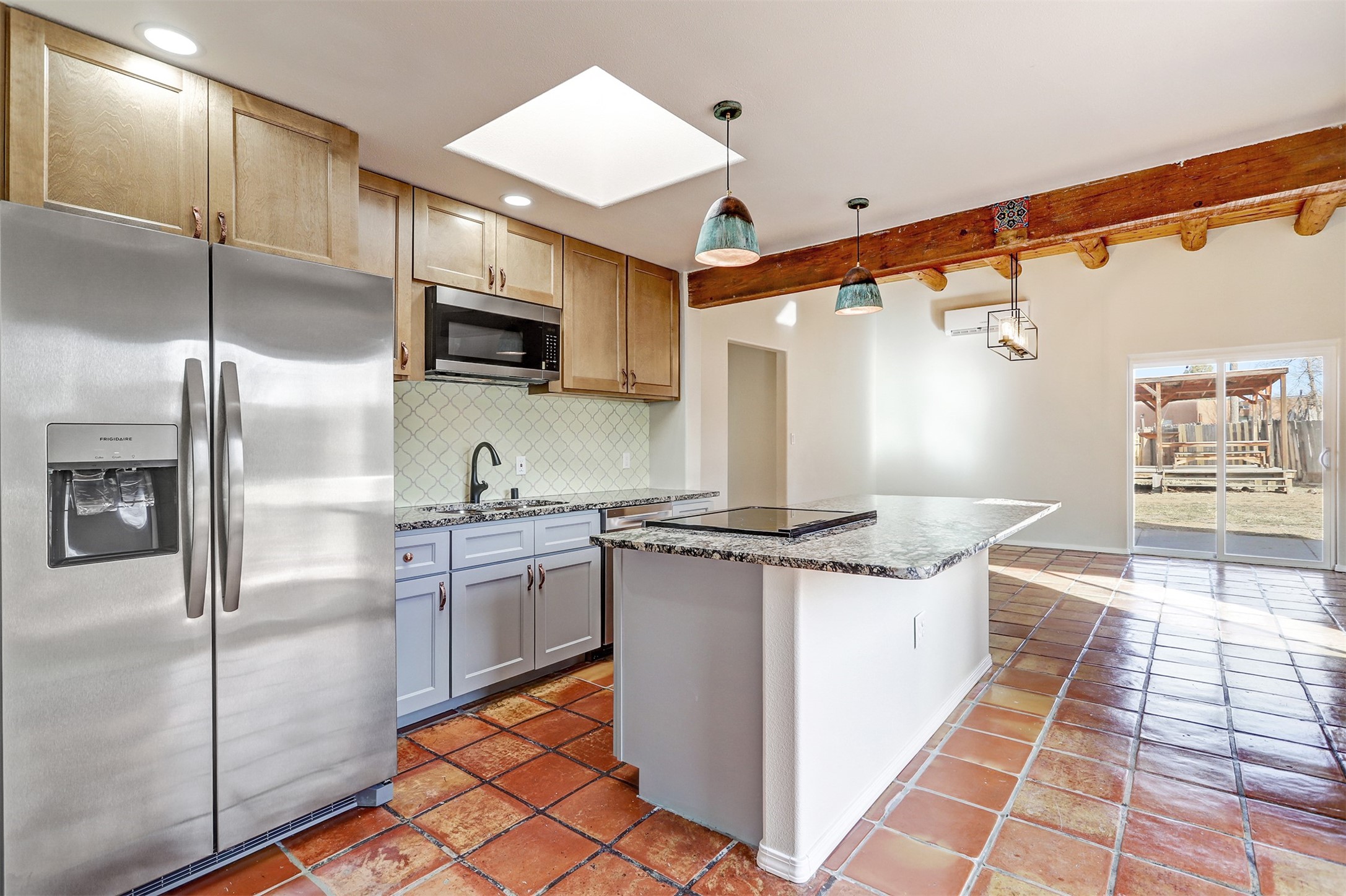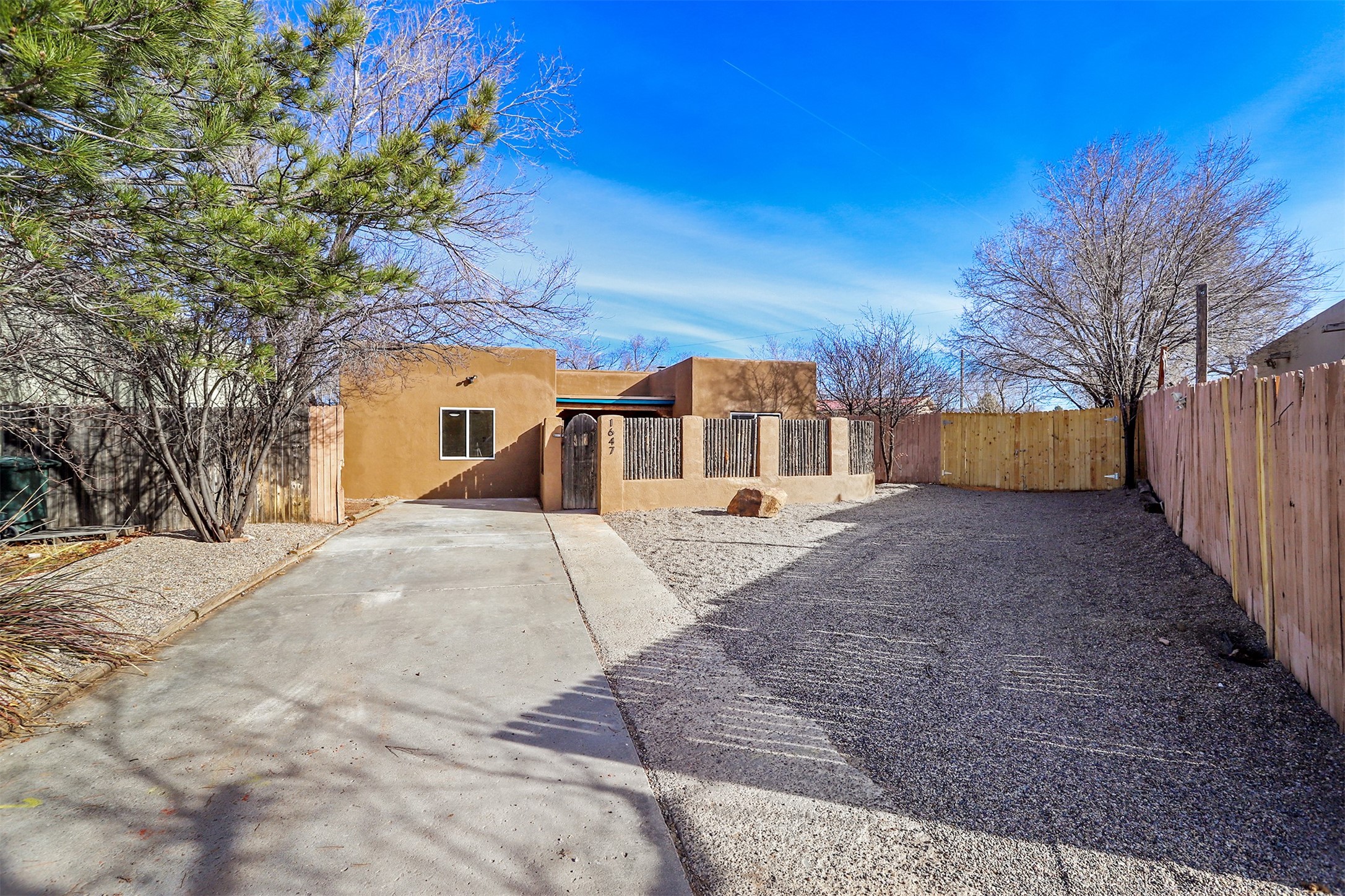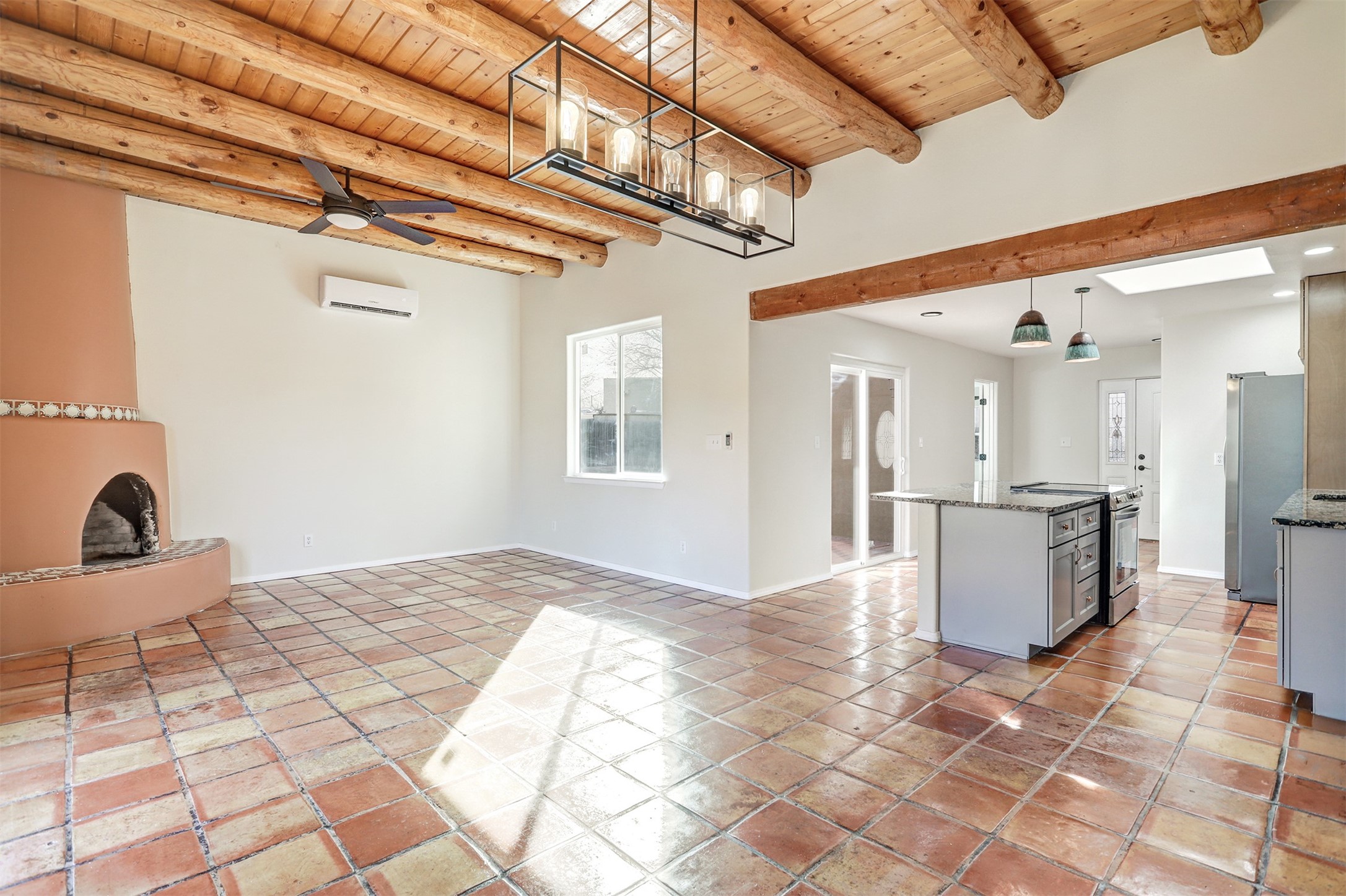 Welcome to this beautifully updated Santa Fe home, where classic Southwestern charm meets modern comfort. Perfectly situated in a central and well-connected area, this property offers easy access to shopping, dining, trails, and everyday amenities while maintaining a peaceful residential feel. A nearby park makes this an ideal setting for evening walks, outdoor enjoyment, and taking in Santa Fe's stunning sunsets. Inside, the thoughtfully designed layout features four spacious bedrooms and inviting living areas ideal for both entertaining and everyday living. The stunning kiva fireplace serves as a warm focal point, adding authentic character and cozy ambiance during cooler months. Saltillo tile flooring in select areas, combined with fresh interior and exterior paint, creates a bright, refreshed atmosphere with timeless Southwestern appeal. The updated kitchen is ready for all your culinary adventures, featuring new countertops, new cabinetry, and new stainless steel appliances. Remodeled bathrooms, updated light fixtures, and new carpet in the bedrooms enhance comfort and livability throughout the home. A new mini-split heating and cooling system installed on 11/2025 provides efficient year-round climate control. Set on a generously sized lot, the expansive backyard offers convenient backyard access and excellent flexibility--perfect for outdoor entertaining, gardening, additional parking, or creating your own private retreat. With its thoughtful updates, abundant outdoor space, and desirable location near parks and amenities, this move-in-ready Santa Fe home is a wonderful opportunity to enjoy comfort, character, and convenience all in one.