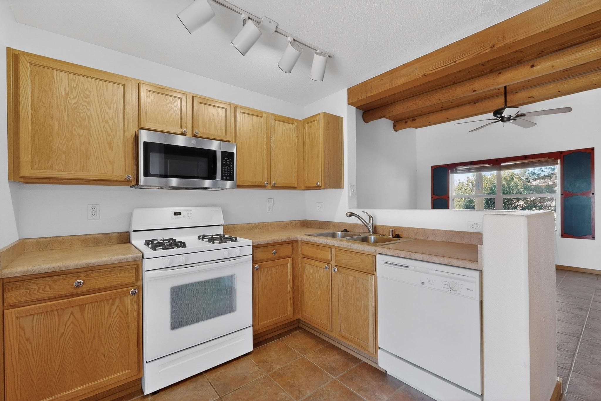 Welcome to a very well kept home on the south side of Santa Fe! Located in a cul-de-sac, this home boasts a large backyard that has been nicely landscaped as well as a nicely landscaped front yard. The entry has a glass panel screen door that opens up to a tiled living room with vigas. The kitchen is equipped with newer appliances, along with the laundry room located adjacent to the garage. The water heater and furnace have been updated, and the roof has been maintained. The carpets in the bedrooms have been cleaned, and the house has been painted as well. Close to schools, restaurants, the south side library, the teen center, trails, parks, and other amenities that this part of town has to offer. Easy access to Highway 599 and interstate 25. Come see for yourself this wonderful home!