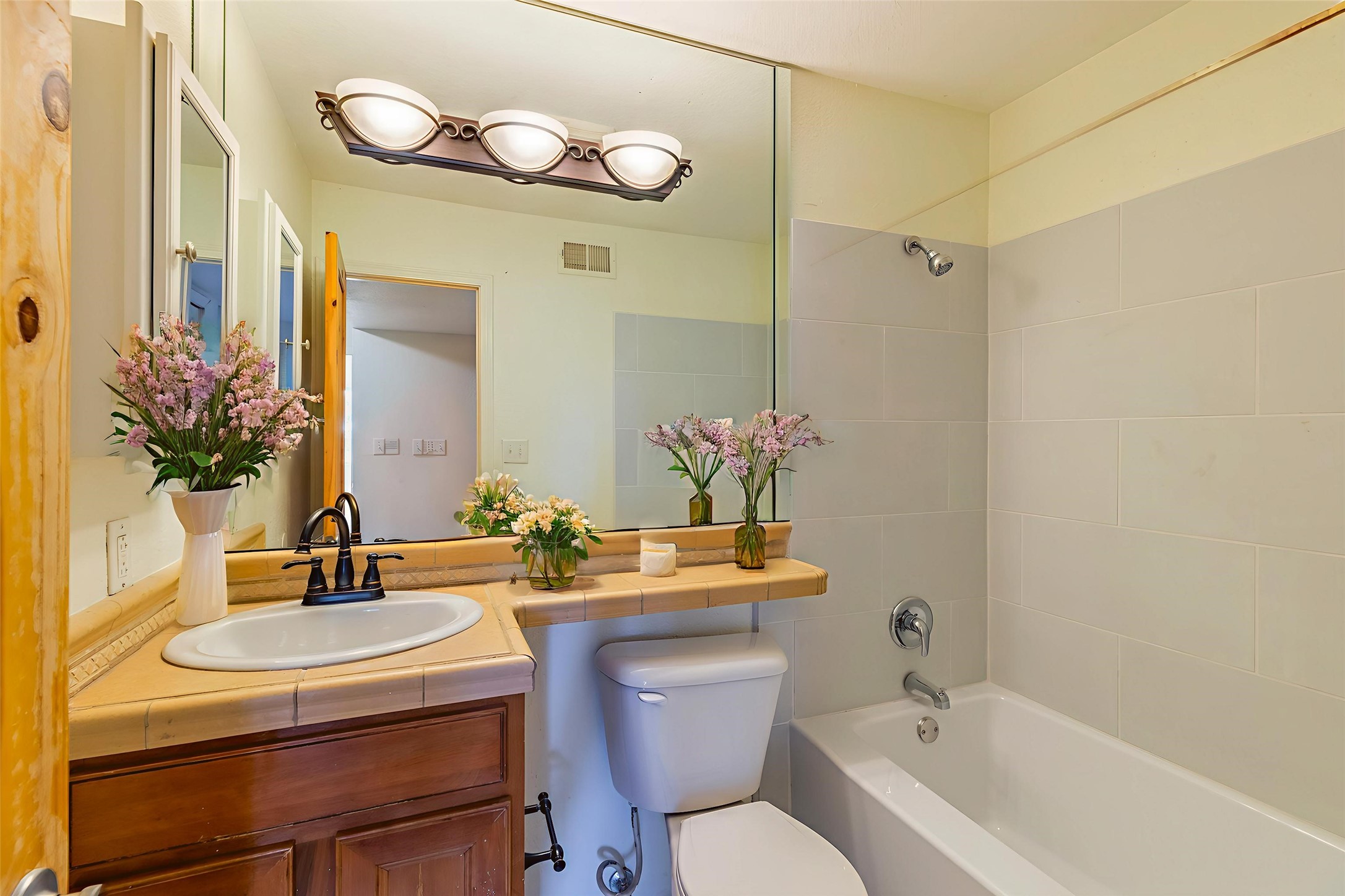 THINK SMALLER. LIVE LARGER. NEXT IMAGINE A POOL! Sometimes the smartest home in Santa Fe isn't the biggest--it's the one that gives you back your time and money and your breathing room and a community pool to enjoy. Keep reading for details!This CORNER one-bedroom, one-bath, two-level condo in gated Dos Santos quietly rewrites what "AFFORDABLE" means. Perched on a gentle hilltop with no one above you, it feels private, light-filled, and free. The open living area flows to a sun-splashed patio, while the upstairs bedroom offers true separation for rest and creativity. A REMODELED bath with a new cast iron tub brings a fresh, spa-like calm to everyday life.Here, HOME OWNERSHIP is designed for ease. The reasonable HOA fee covers nearly everything--roof, stucco, windows, cooling systems, water, and full exterior care--so your weekends belong to you. The community adds its own rhythm: heated POOL in summer, year-round spa tub, FITNESS center, outdoor fire pits, and a DOG PARK for your four-legged companion.And now, freedom runs deeper in a home giving you more space in your budget to explore, travel, or simply exhale. In a market where rates continue to make new headlines as rates trend below 6%, this offer asking price makes a difference you'll FEEL EVERY MONTH! LOCATION completes the picture: minutes to Christus St. Vincent Hospital, Trader Joe's, Whole Foods, the Plaza, and the Railyard Arts District, with easy access to the Zia Railrunner Station Albuquerque commuters or the highway for Los Alamos.DOS SANTOS isn't a compromise; IT'S A CHOICE for those who value time, community connection, amenities, privacy, low maintenance and HOA fee over excess of large size and expense of maintenance. Because in Santa Fe, less can truly live larger--and now, it can cost less too. Yes, asking is affodable at 260,000! Call to learn more and to see your next home!
