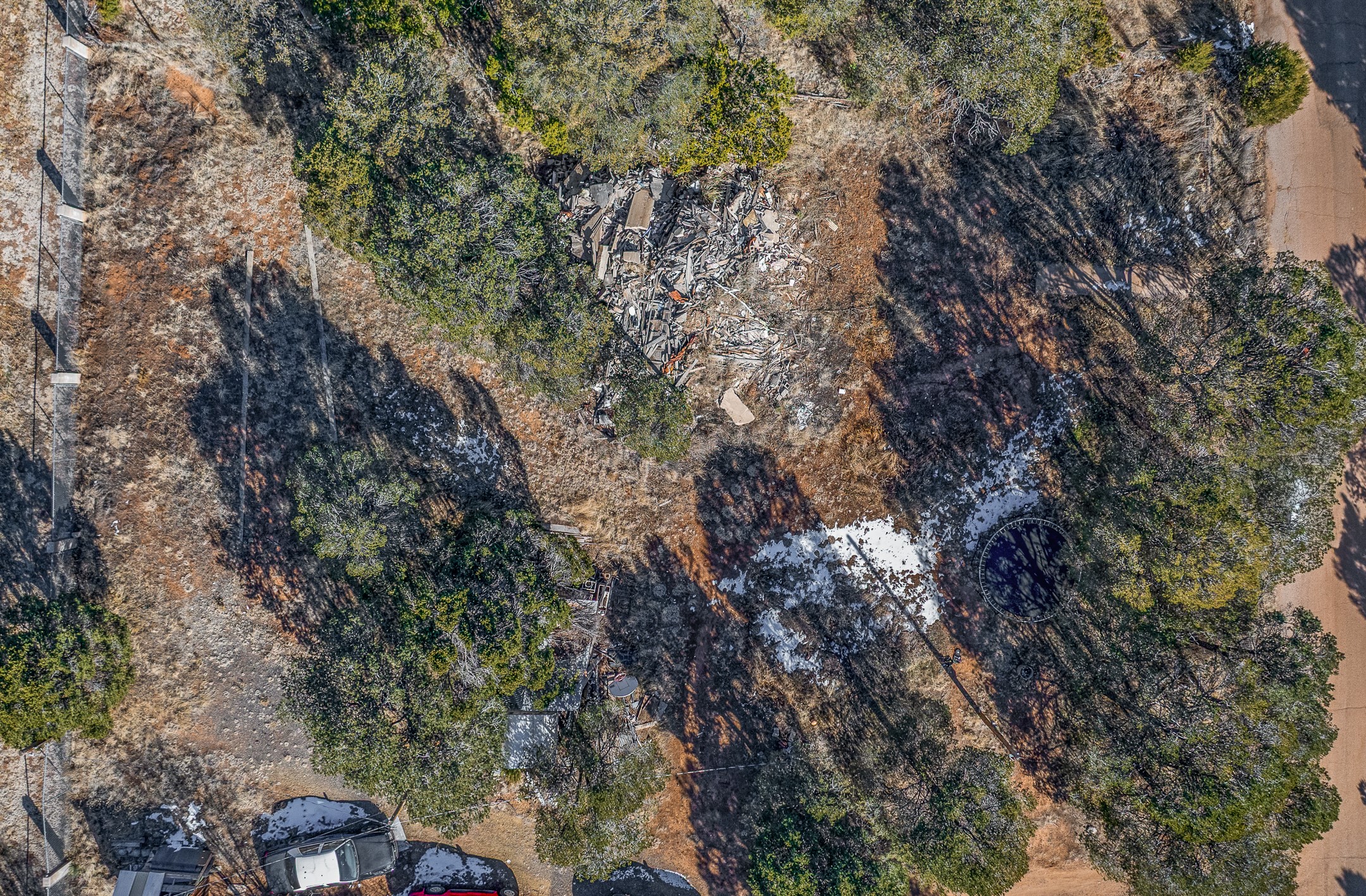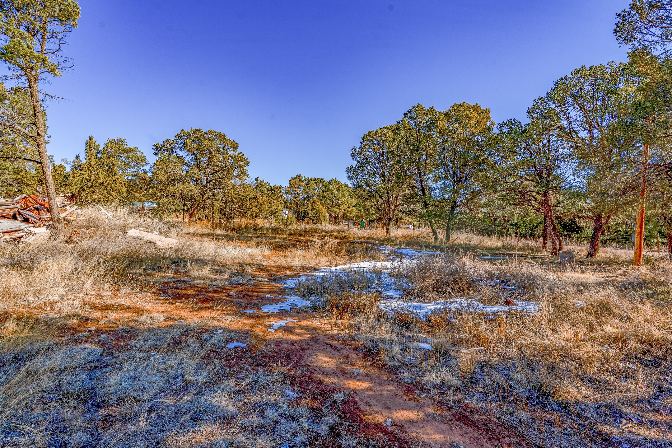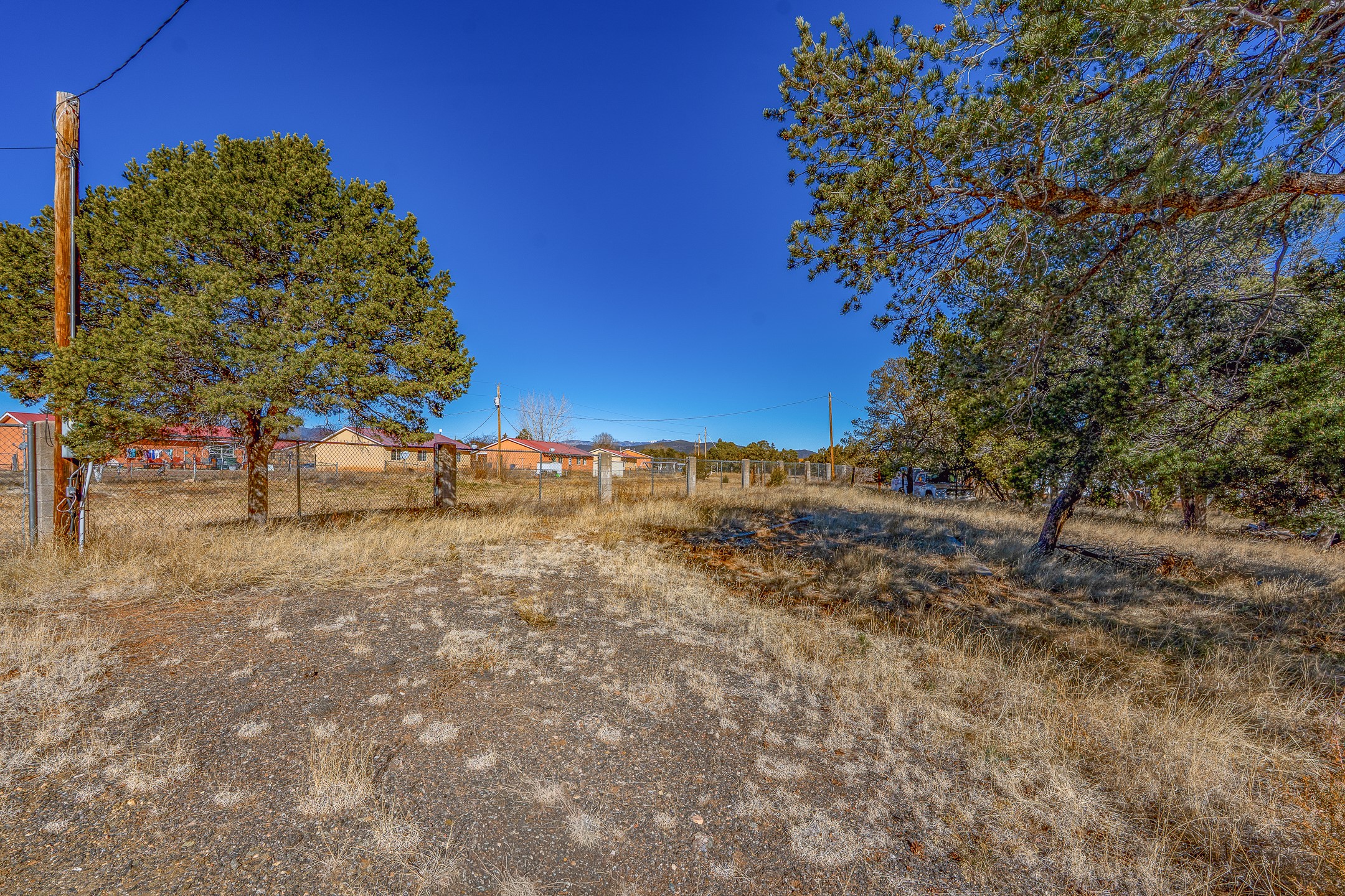 Just over a half acre in the Village of Pecos. Two lots make up this property, with considerable flat space for easy building and large pine trees. Connection to village water and sewer possible. A home had been on the lot and burned years ago, some rubble remains. An old outbuilding is still on the lot. Easy to access, easy to build.