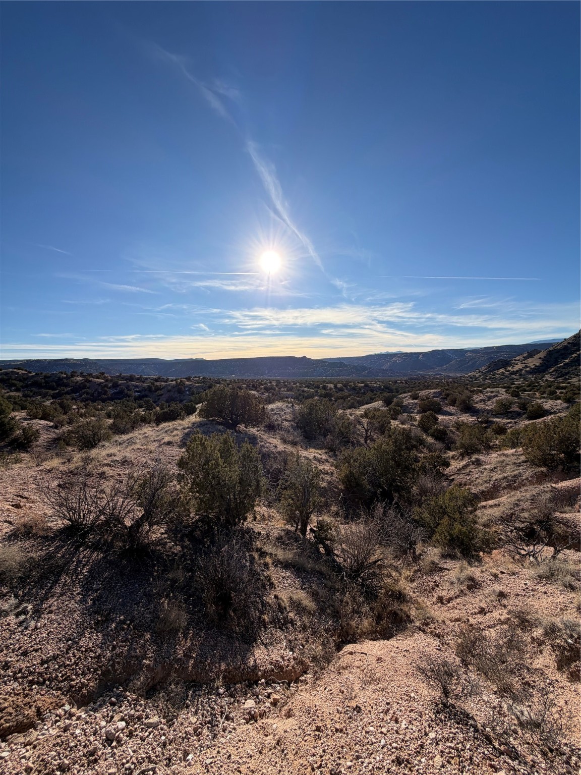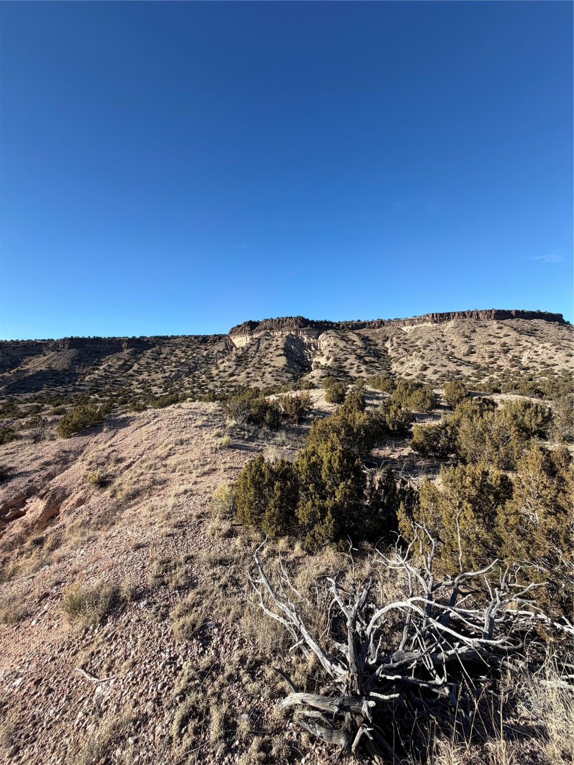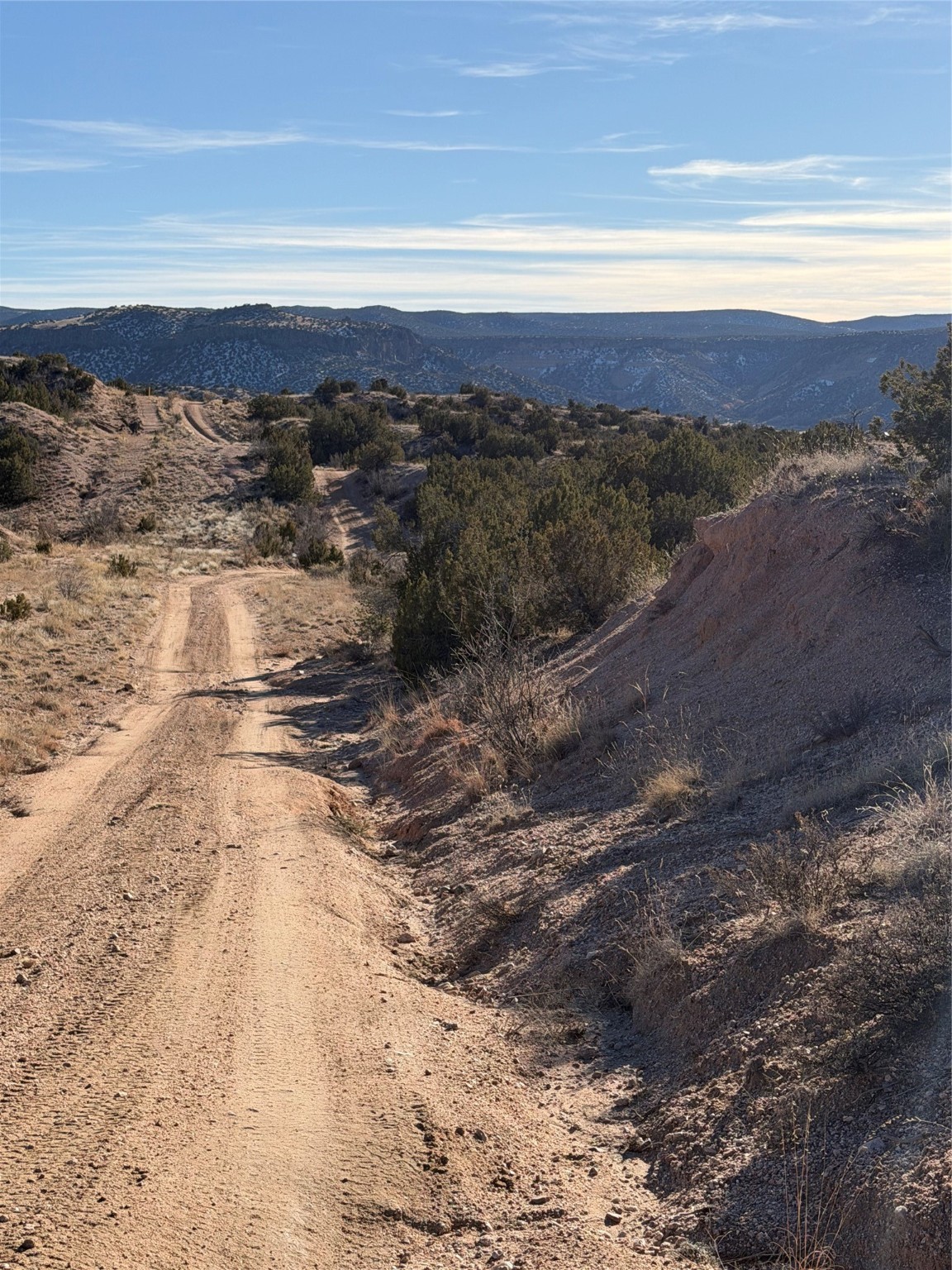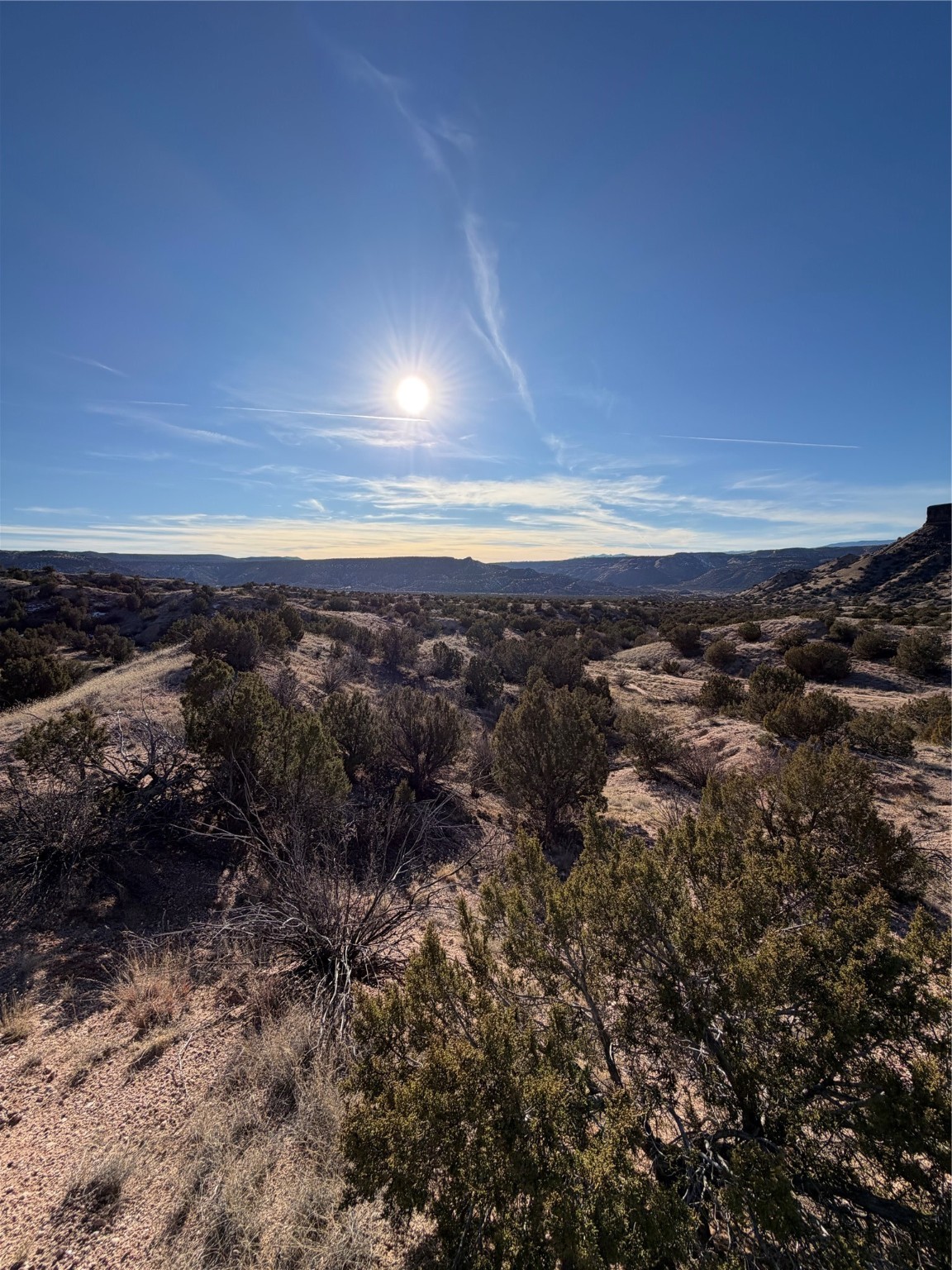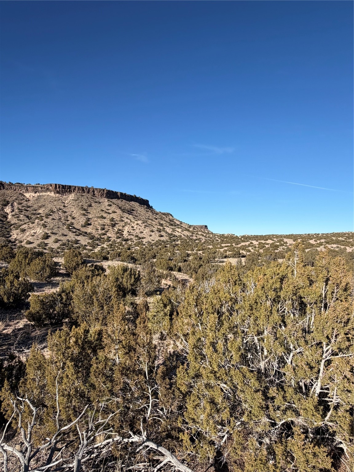Off-grid lot within sight of the Rio Grande. 2.5 acres with major views in every direction, this lot borders National Forest land on all sides, and is near the Rio Grande and the Diablo Canyon Recreation area for more outdoor opportunities. Sited about ten miles from Las Campanas in northwest Santa Fe, this lot features multiple elevated sites and dramatic scenery; Kalitaya Way and a buried gas pipeline go through the property. Roads are primitive, high clearance vehicle is recommended.