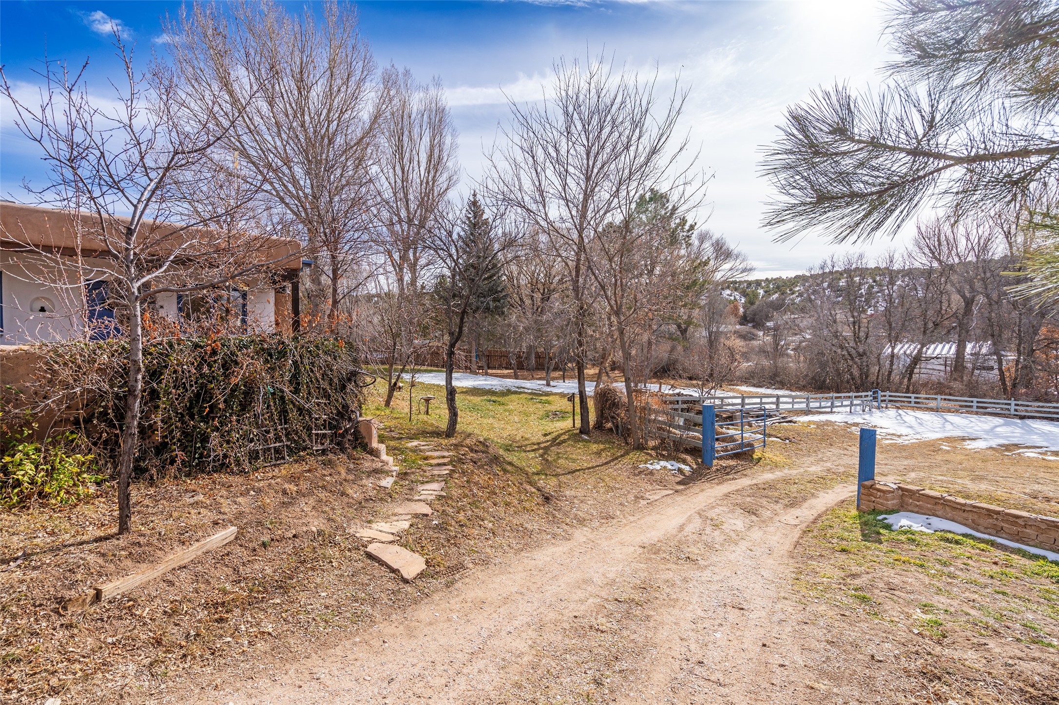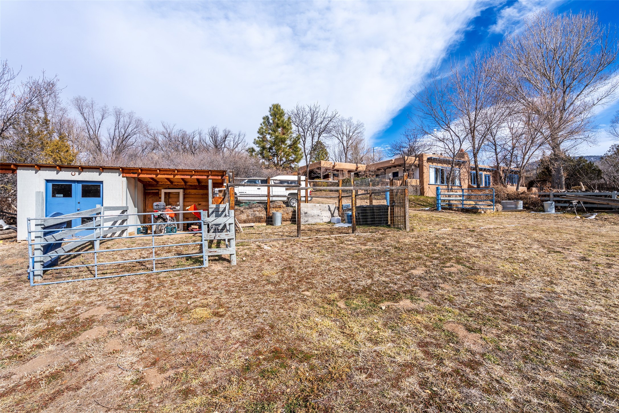 Nestled in the storied community of Chupadero, just outside Santa Fe, this remarkable 1.49-acre property offers an authentic New Mexico lifestyle steeped in history and natural beauty. Chupadero has been a vital agricultural corridor for centuries, with acequia irrigation systems dating back to the Spanish colonial era that continue to nourish the land today.This lovingly owner-built adobe home, crafted in the late 1980s, embodies timeless Southwestern architecture while offering modern comfort. The main residence features 3 bedrooms and 2.5 baths, complemented by flexible living space. Classic brick floors add warmth and character throughout, creating an inviting ambiance.The property's precious acequia water rights provide flood irrigation when available--a rare asset for the established orchard and fruit trees. Mature cottonwoods offer shade and seasonal beauty. A private well ensures year-round water security, and the brand-new septic system provides peace of mind.A charming 1-bedroom guest house offers privacy for visitors or potential rental income. The dedicated workshop with office space is perfect for artisans, hobbyists, or remote professionals. With a barn and corral there is ample room for horses or other livestock, this property is ideal for those seeking a spot for their miniature donkeys or sustainable homestead.Practical amenities include a 1-car garage and carport. The meticulous maintenance throughout reflects the owner's decades-long commitment to preserving this special sanctuary.This is more than a home--it's a connection to New Mexico's agricultural legacy and an opportunity to embrace a slower, more intentional way of life in one of Santa Fe's most historically significant communities.