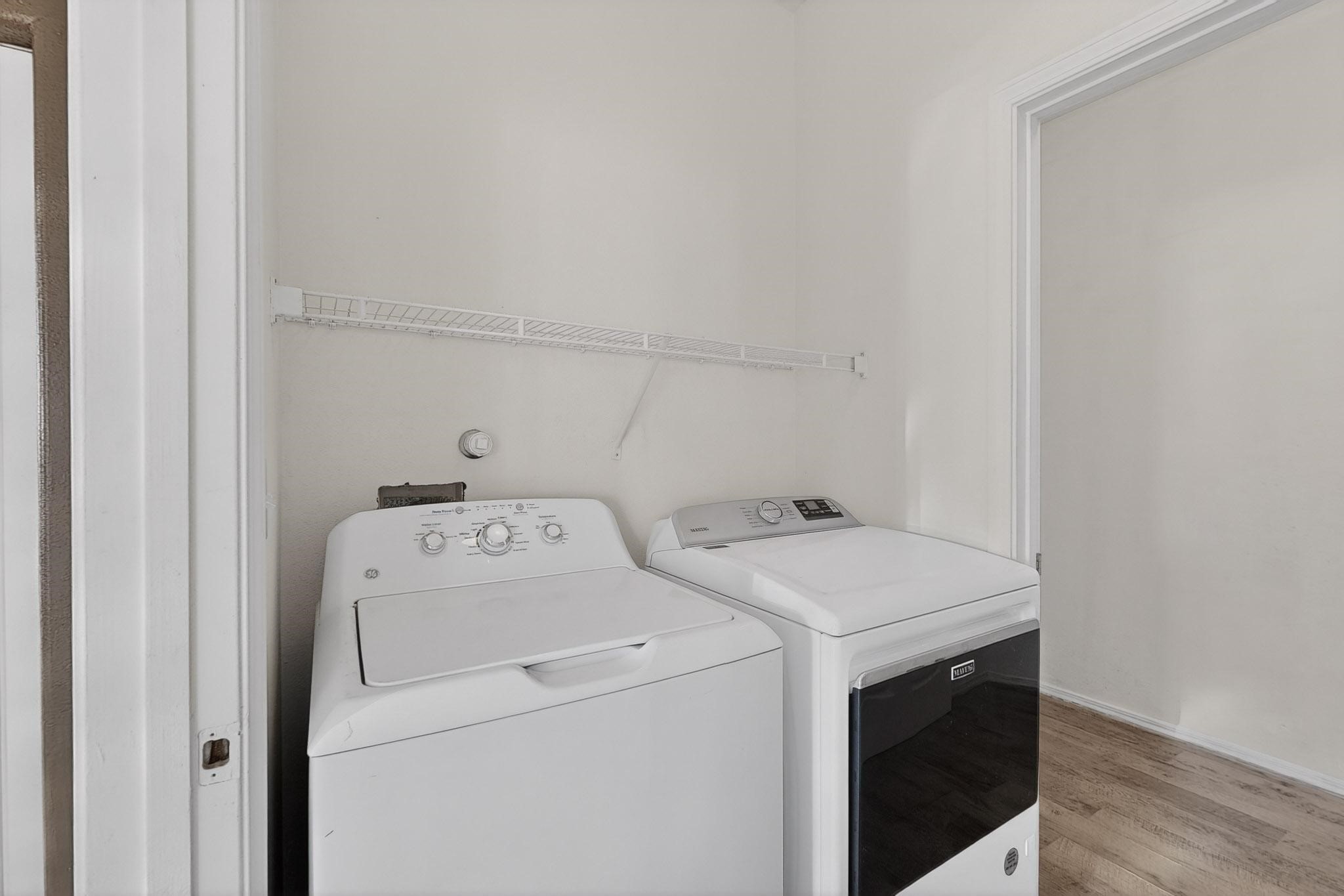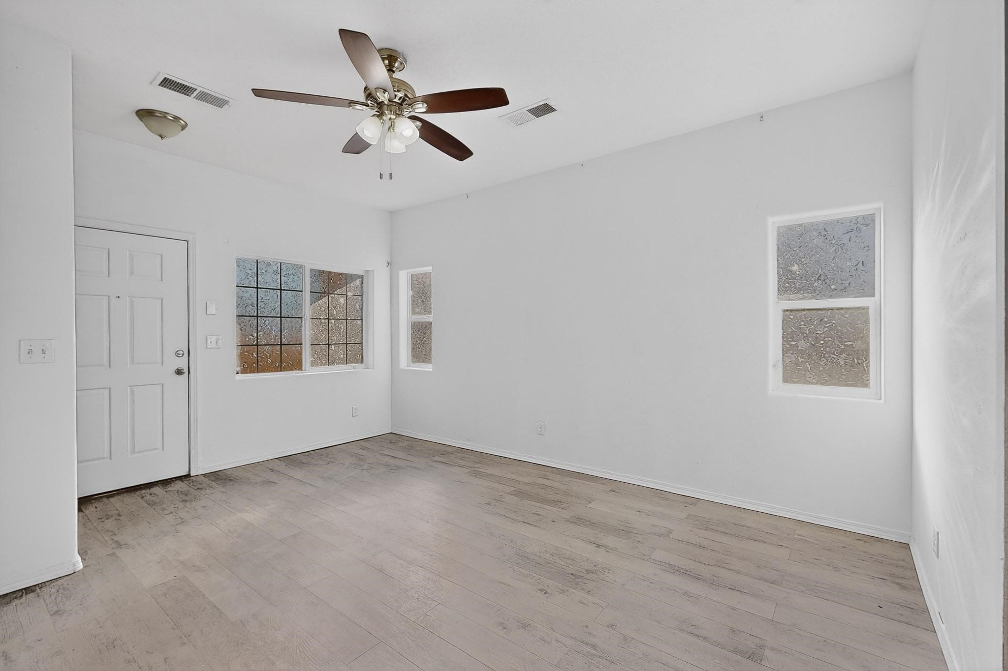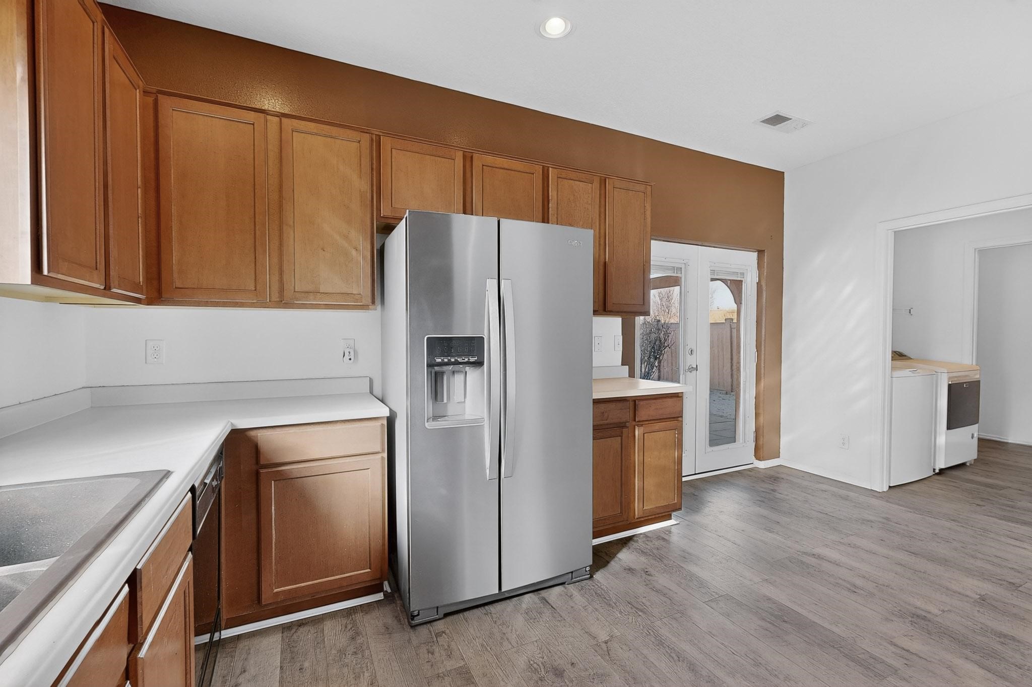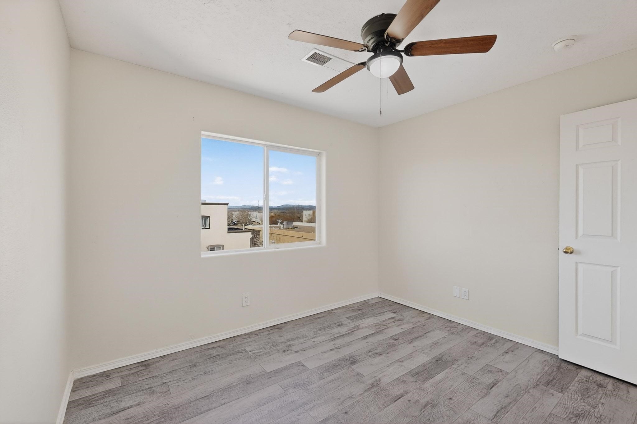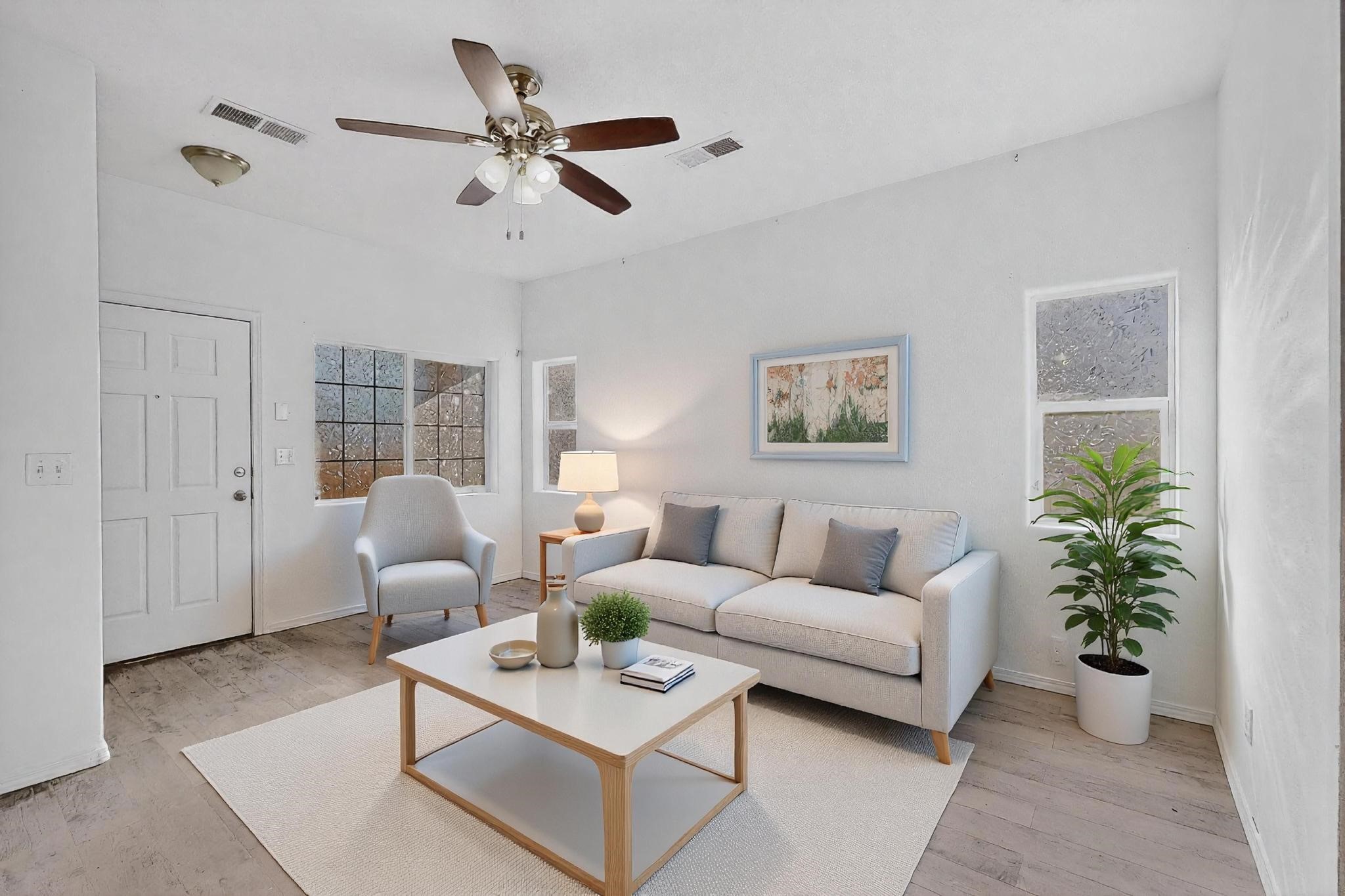 Discover the perfect blend of convenience and community in this newly listed home, ideally situated in a convenient Southside neighborhood. Positioned on a corner lot, this property offers beautiful second-story views and generous outdoor space.Step inside to a fresh, move-in-ready interior that has been recently painted and features hard surface flooring throughout--no carpet! The main level boasts a bright eat-in kitchen with a gas stovetop, perfect for the home chef, along with a convenient guest half-bath. Upstairs, you will find three nice-sized bedrooms and two full bathrooms.Outdoor living is a highlight here; entertain guests under the charming pergola in the spacious backyard or enjoy the community's green space. Peace of mind is ensured with a brand-new water heater (installed Dec 2025).This location is a commuter's dream with easy access to I-25, Veterans Memorial Highway 599, and the Railrunner 599 station. Enjoy a vibrant lifestyle with nearby walking trails, Southside shopping, and the popular Santa Fe Brewing Company. The active HOA fosters a true neighborhood feel with movie nights and events for kids. Schedule your viewing today!