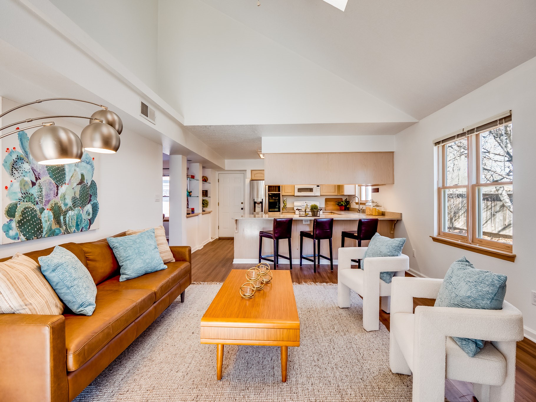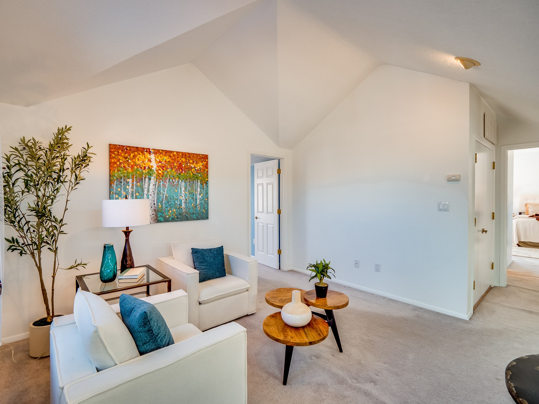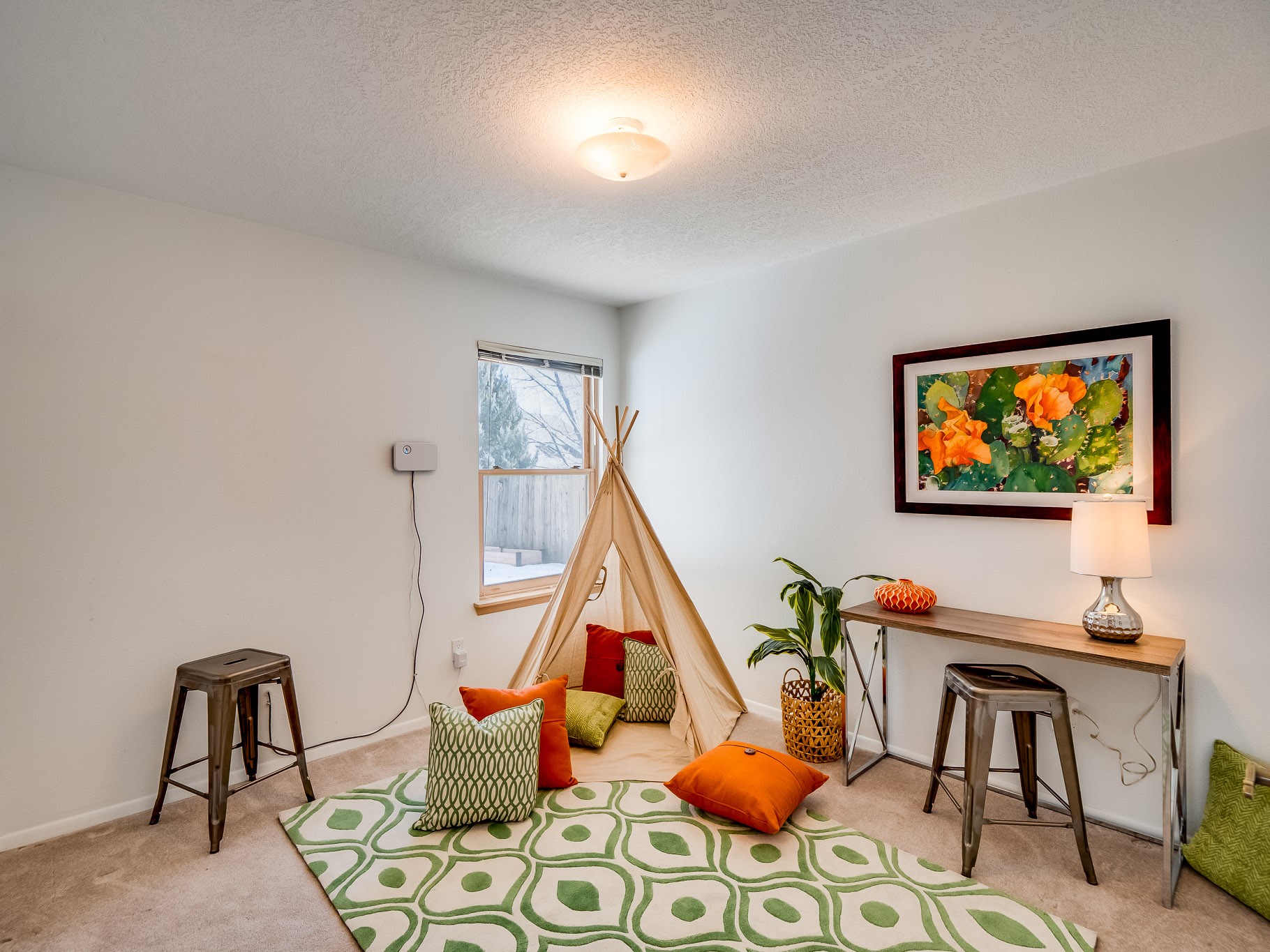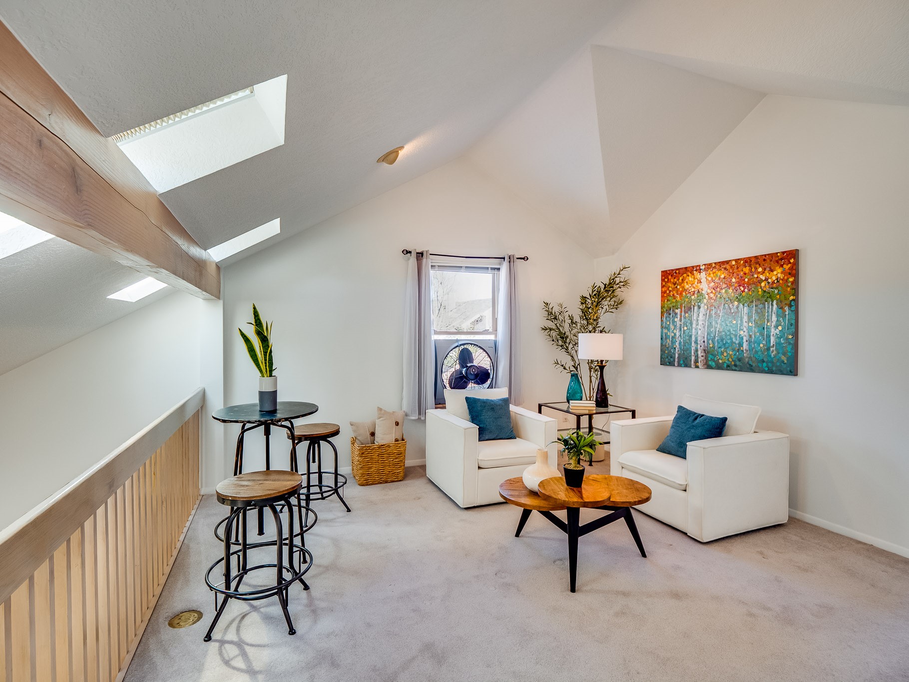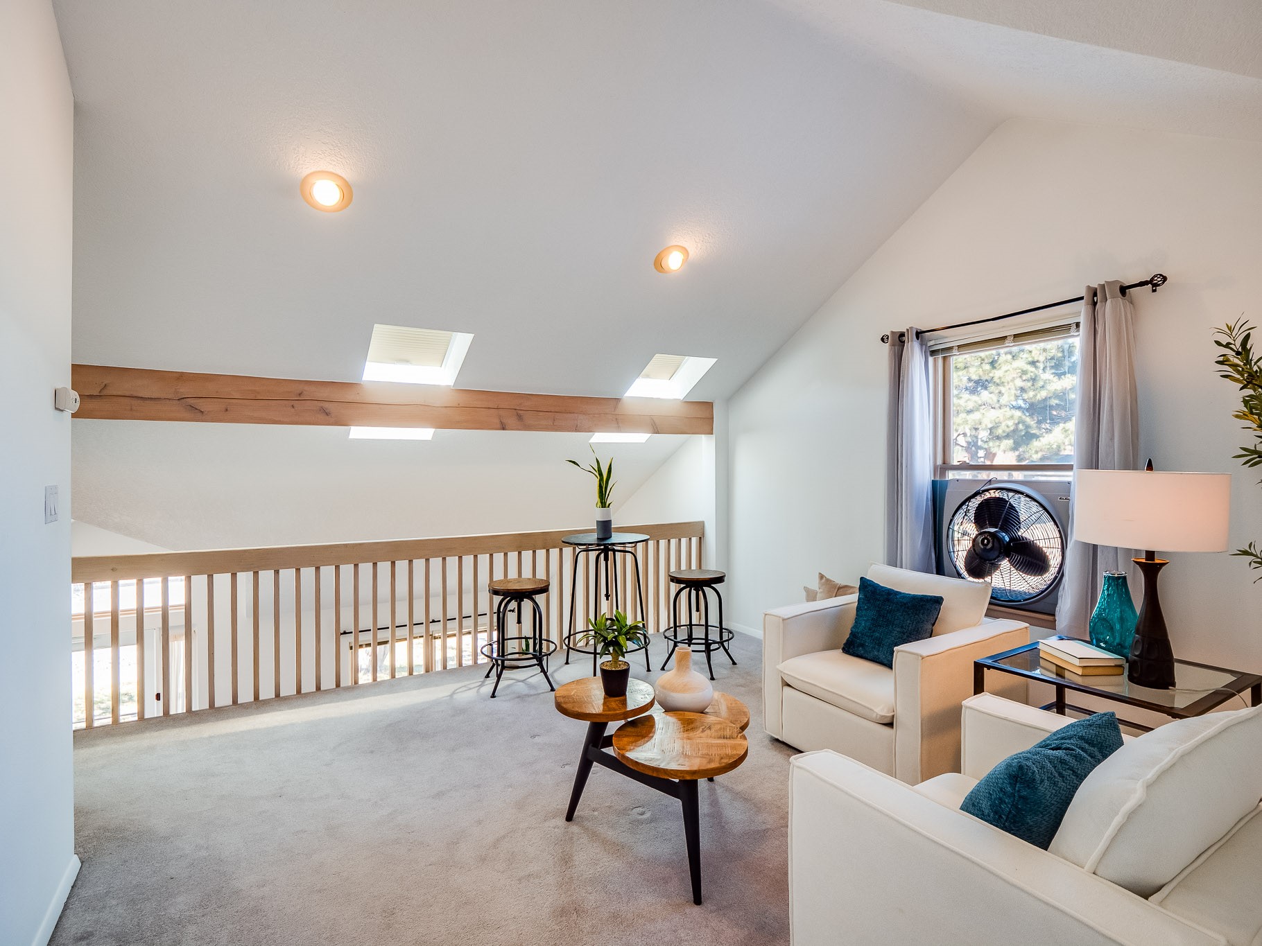 Situated on a desirable corner lot in North Mesa, this beautiful two-story home offers exceptional curb appeal with a large grassy front yard and mature trees lining the welcoming front entrance, providing shade as well as privacy. Step inside the foyer and descend a few steps into the bright, open living room, where rich engineered wood floors extend throughout the main living spaces. Vaulted ceilings enhance the sense of space and light, creating an inviting atmosphere ideal for both everyday living and entertaining. The living room flows seamlessly into the dining area, thoughtfully divided from the kitchen by open glass shelving that adds architectural interest while maintaining an open-concept feel. The kitchen has light colored cabinetry and abundant quartz counter space, including a peninsula island with bar seating. Stainless steel refrigerator and a gas oven/range, and there is convenient access to the oversized two-car garage. Adjacent to the kitchen, the family room features vaulted ceilings and a dramatic floor to ceiling stone wood burning fireplace, serving as a warm and striking focal point. From here, step outside to the covered deck overlooking the fully fenced backyard with mature trees, and ample space for gardening and outdoor dining. The main level also includes three nicely sized carpeted guest bedrooms, a guest bathroom with a walk-in tiled shower featuring a luxurious shower panel and single-sink vanity, along with a dedicated laundry room and additional storage closet. Upstairs, the home is fully carpeted and features a cozy loft perfect for relaxing or reading, as well as a versatile bonus room that could serve as a hobby space, office, or additional bedroom. Spacious primary en-suite bedroom with a large walk-in closet and a spa-like bathroom complete with a double-sink vanity, tile flooring, and a deep soaking tub. Located near parks, horse stables and trails, book your tour of this move-in ready home and experience what it has to offer!