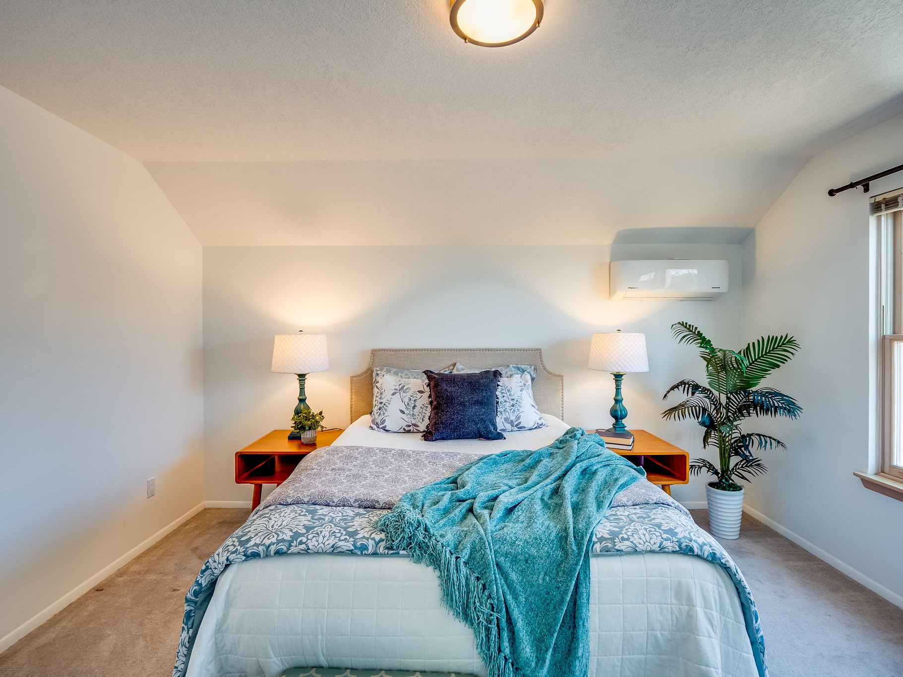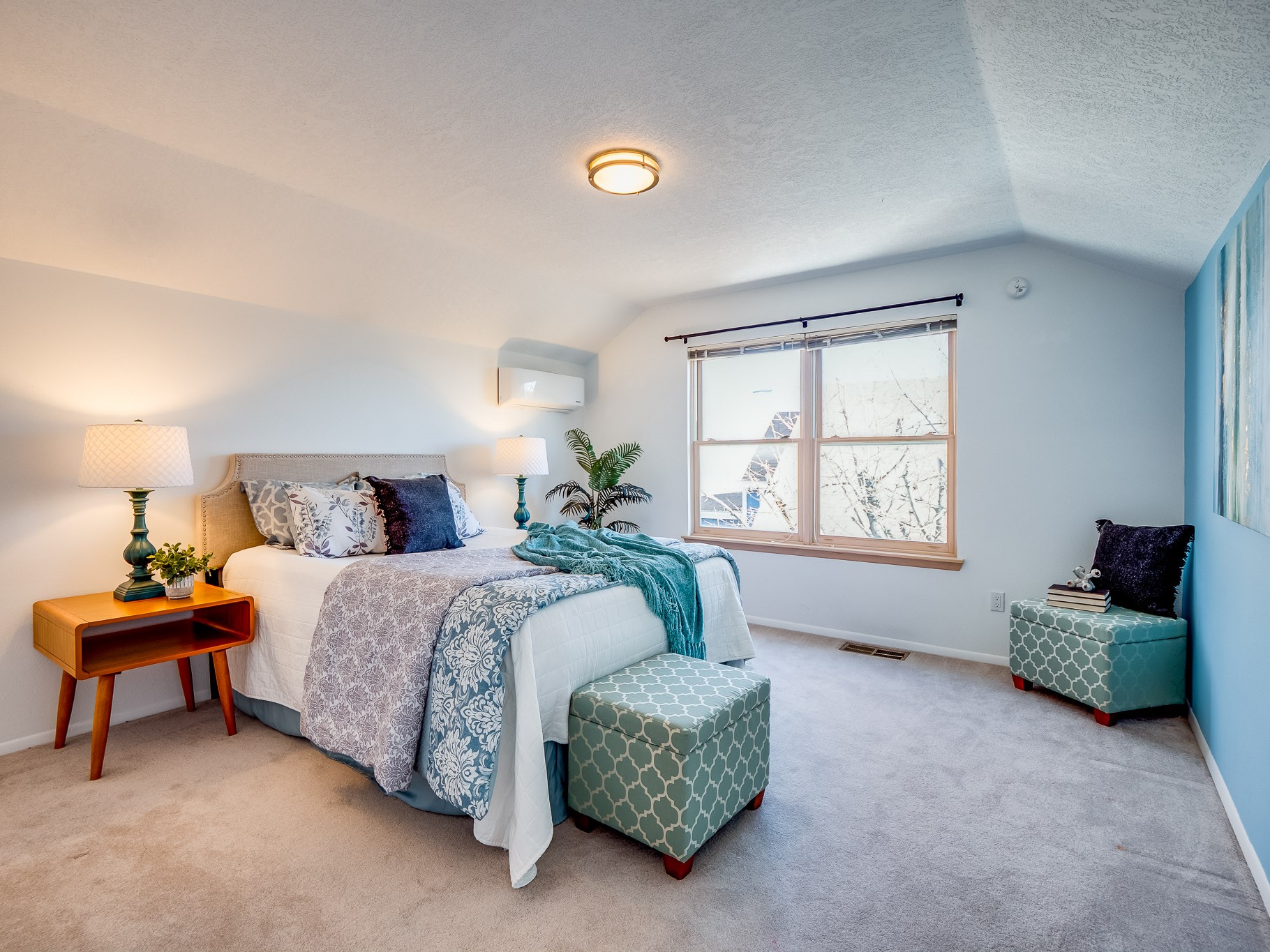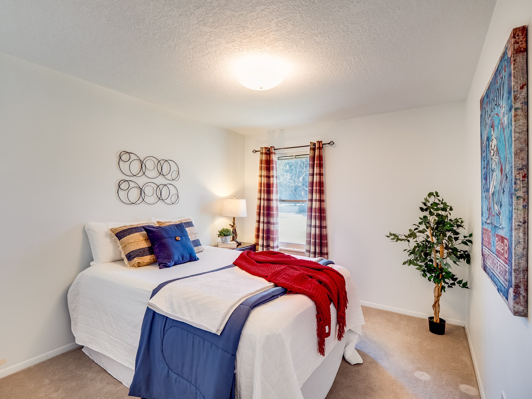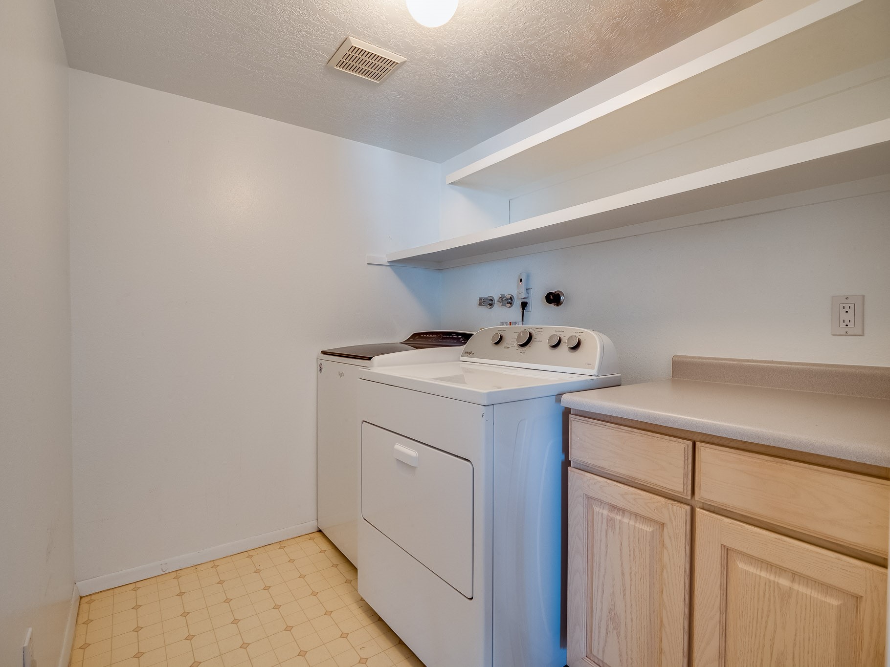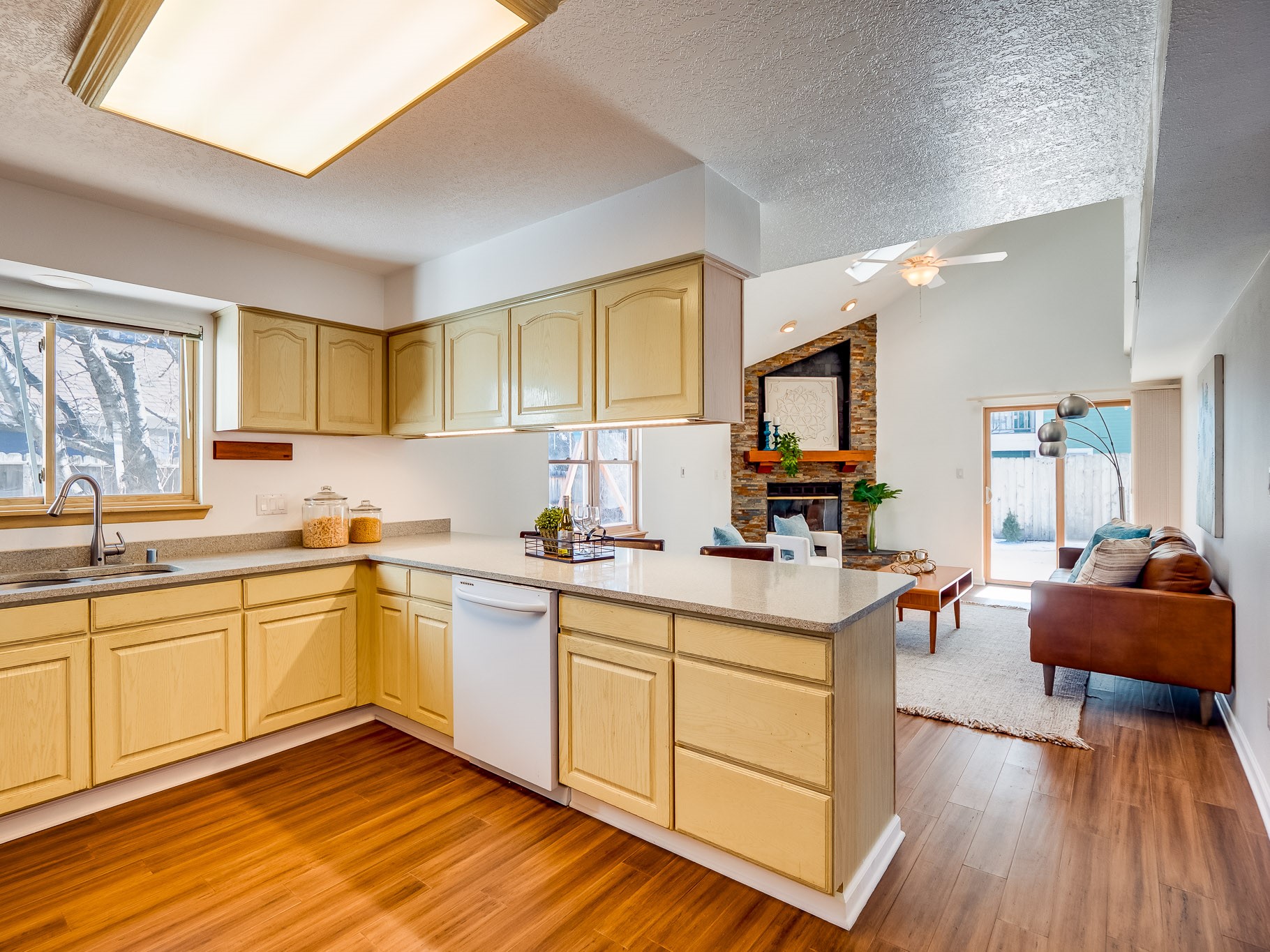 Situated on a desirable corner lot in North Mesa, this beautiful two-story home offers exceptional curb appeal with a large grassy front yard and mature trees lining the welcoming front entrance, providing shade as well as privacy. Step inside the foyer and descend a few steps into the bright, open living room, where rich engineered wood floors extend throughout the main living spaces. Vaulted ceilings enhance the sense of space and light, creating an inviting atmosphere ideal for both everyday living and entertaining. The living room flows seamlessly into the dining area, thoughtfully divided from the kitchen by open glass shelving that adds architectural interest while maintaining an open-concept feel. The kitchen has light colored cabinetry and abundant quartz counter space, including a peninsula island with bar seating. Stainless steel refrigerator and a gas oven/range, and there is convenient access to the oversized two-car garage. Adjacent to the kitchen, the family room features vaulted ceilings and a dramatic floor to ceiling stone wood burning fireplace, serving as a warm and striking focal point. From here, step outside to the covered deck overlooking the fully fenced backyard with mature trees, and ample space for gardening and outdoor dining. The main level also includes three nicely sized carpeted guest bedrooms, a guest bathroom with a walk-in tiled shower featuring a luxurious shower panel and single-sink vanity, along with a dedicated laundry room and additional storage closet. Upstairs, the home is fully carpeted and features a cozy loft perfect for relaxing or reading, as well as a versatile bonus room that could serve as a hobby space, office, or additional bedroom. Spacious primary en-suite bedroom with a large walk-in closet and a spa-like bathroom complete with a double-sink vanity, tile flooring, and a deep soaking tub. Located near parks, horse stables and trails, book your tour of this move-in ready home and experience what it has to offer!
