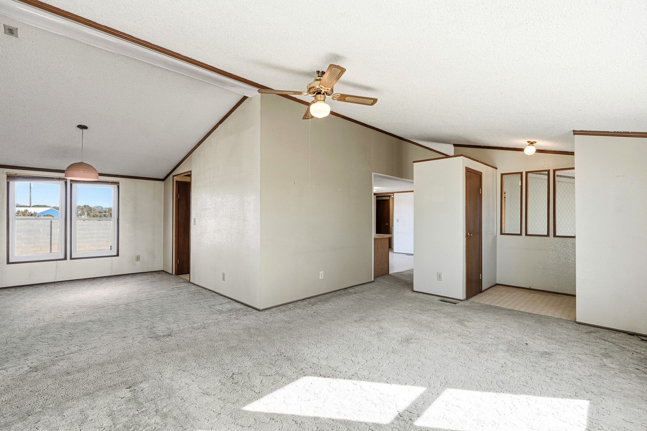 Peaceful private home in a rural setting with easy access to amenities and downtown Santa Fe. Enclosed front yard, metal roofing, newer windows, furnace and refrigerated ac. Theis in need of updating and there is deferred maintenance. Seller has priced it accordingly and does not intend to make repairs or concessions due to the property condition. Large lot is fully fenced for your privacy and enjoyment.