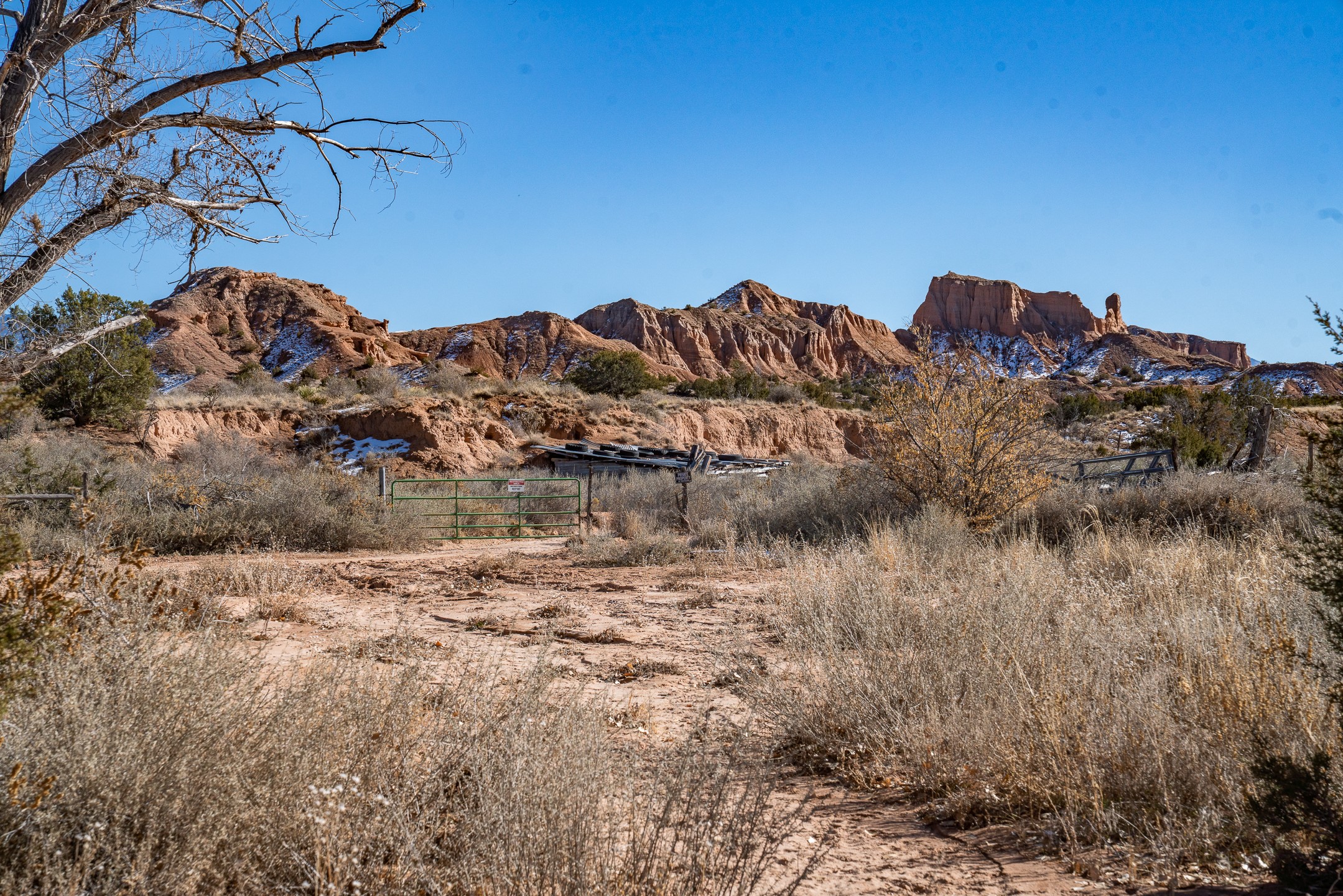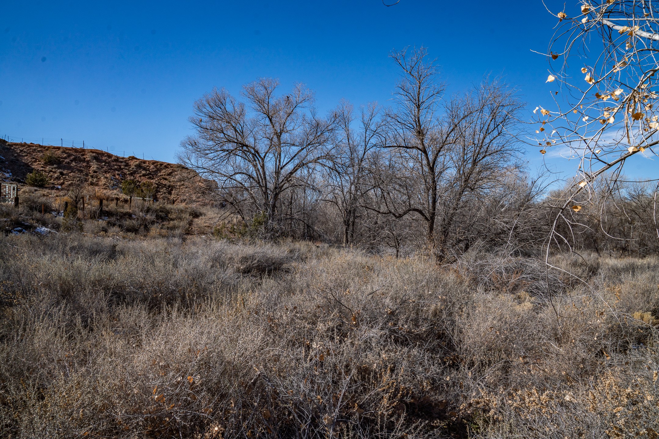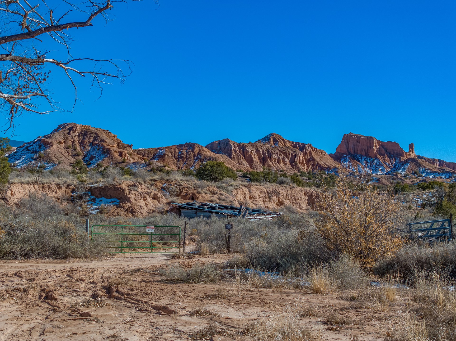 Capture a piece of gorgeous Chimayo land on .95 lush acreage!! Flat land with easy building sites provides for house, guest house and storage buildings! Trees and birds abound! Access to BLM land is available as well. There is a shared well on the property and a gate already provided for access into the property. Water rights also will transfer!! Owner may finance with 20% down.
