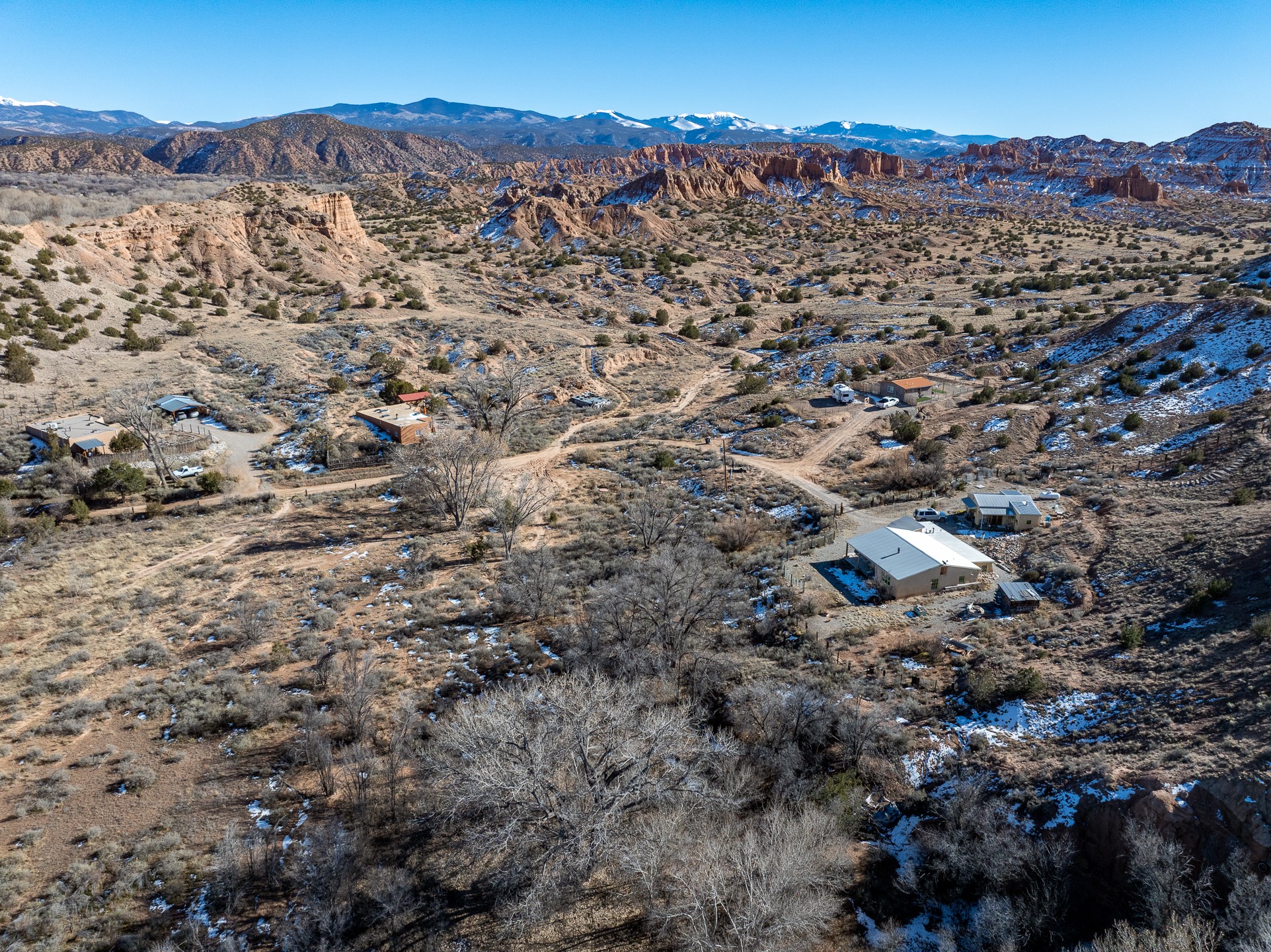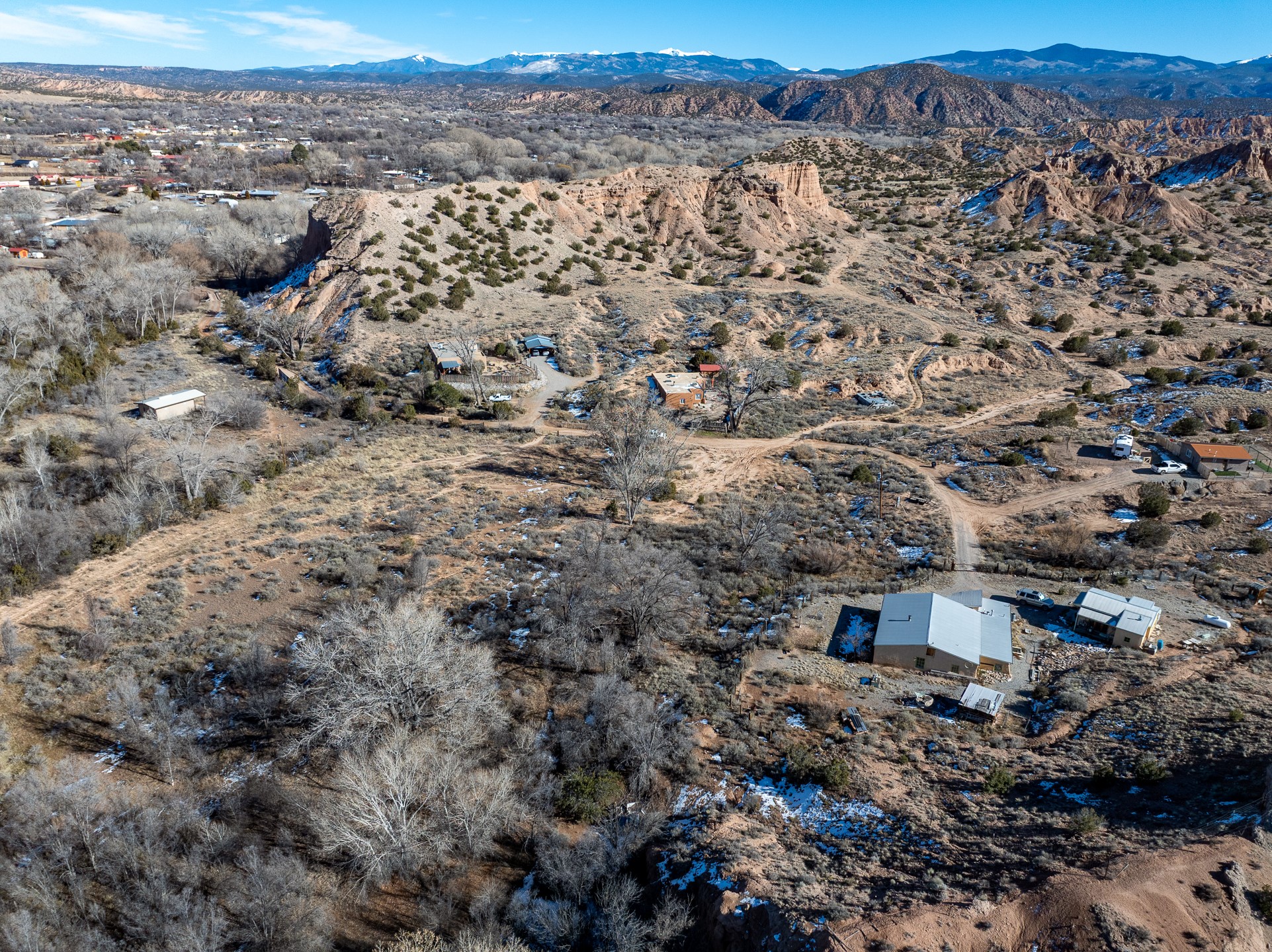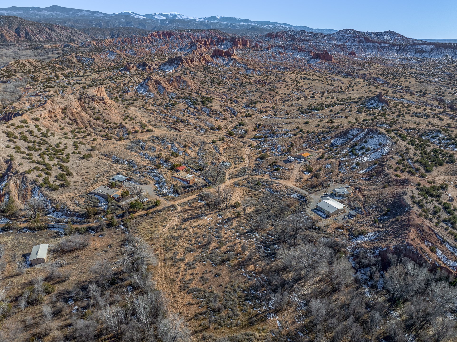 Capture a piece of gorgeous Chimayo land on .95 lush acreage!! Flat land with easy building sites provides for house, guest house and storage buildings! Trees and birds abound! Access to BLM land is available as well. There is a shared well on the property and a gate already provided for access into the property. Water rights also will transfer!! Owner may finance with 20% down.
