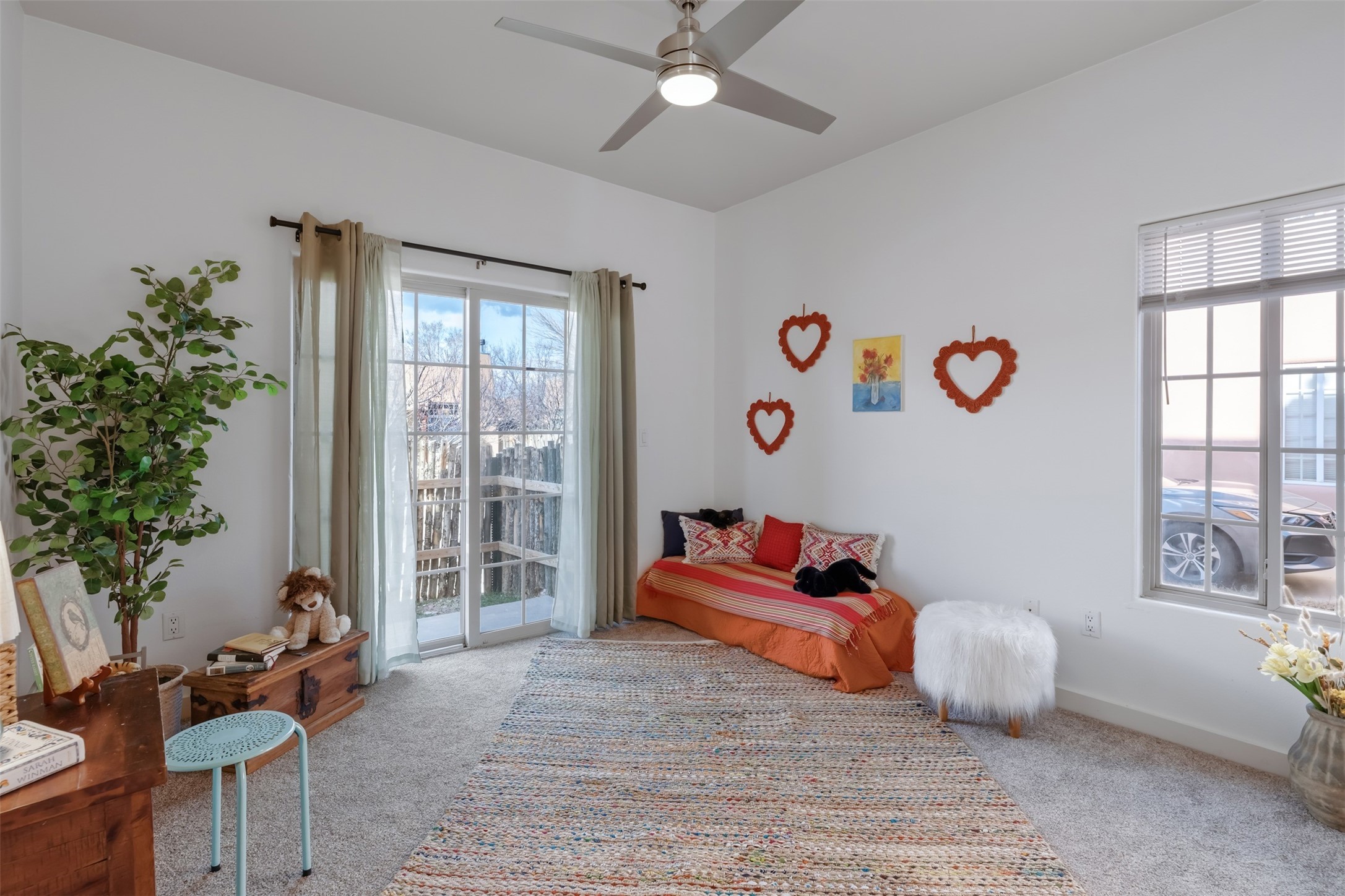 Located within the desirable and convenient Nava Ade community with access to amenities including walking paths, green space, pool, fitness center, steam room, and hot tub, 4212 Big Sky Road is a smart, well-designed two-story home, offering 1,272 square feet, three bedrooms, and two full baths.The main level feels expansive, with tall ceilings and oversized windows that pull in light from multiple directions. Sliding doors open directly to a fenced backyard, creating an easy connection between indoor living and outdoor space--ideal for morning coffee, pets, or an evening unwind.A large bedroom and a full bath are positioned on the ground floor, offering flexibility for guests, kids, or a primary bedroom for single-level living. Upstairs, two additional bedrooms share a full bath. The layout strikes a practical balance: open and airy below, private and quiet above.The yard is fully enclosed, and the corner position lends the property an open, spacious feel. Perfect for buyers who value natural light, efficient design, and a well-maintained community neighborhood. Convenient Southside location with easy access to Santa Fe Place Mall and Zafarano Drive shopping (Target, Albertsons, etc).