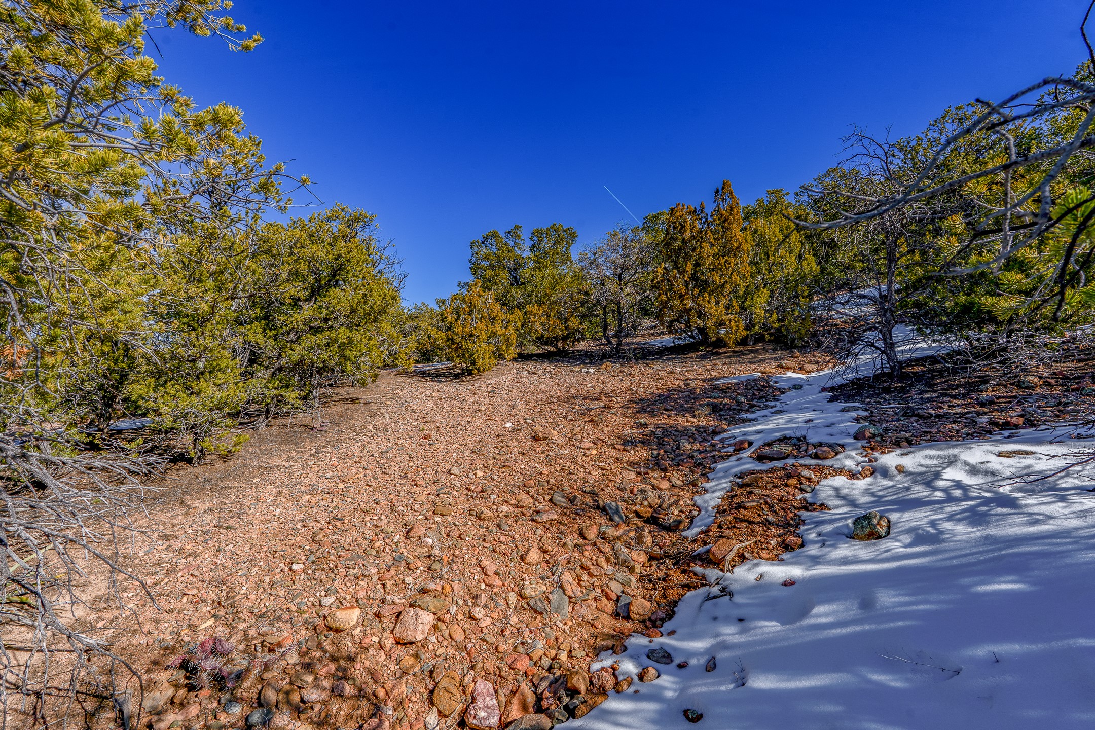 Beautiful, tree-covered North End lot located just off prestigious Barranca Road in the Cerro de Piedrasubdivision, offering reasonable covenants. Paved roads and quick, easy access to downtown Santa Fe.Utilities are available at the street; septic required. The property features ample flat, buildable areasand enjoys views of city lights as well as the Sandia and Ortiz Mountains. An ideal opportunity to buildyour Santa Fe dream home in a prime location.