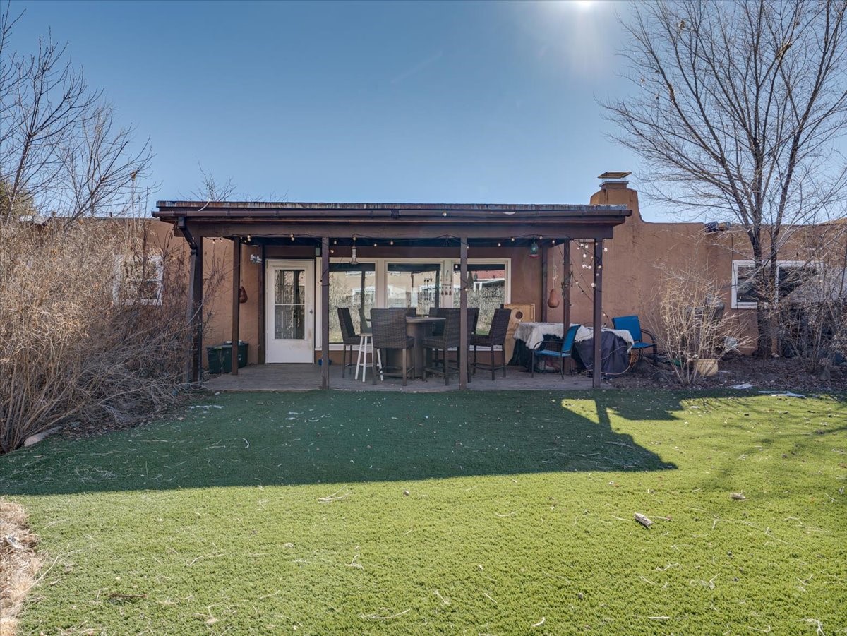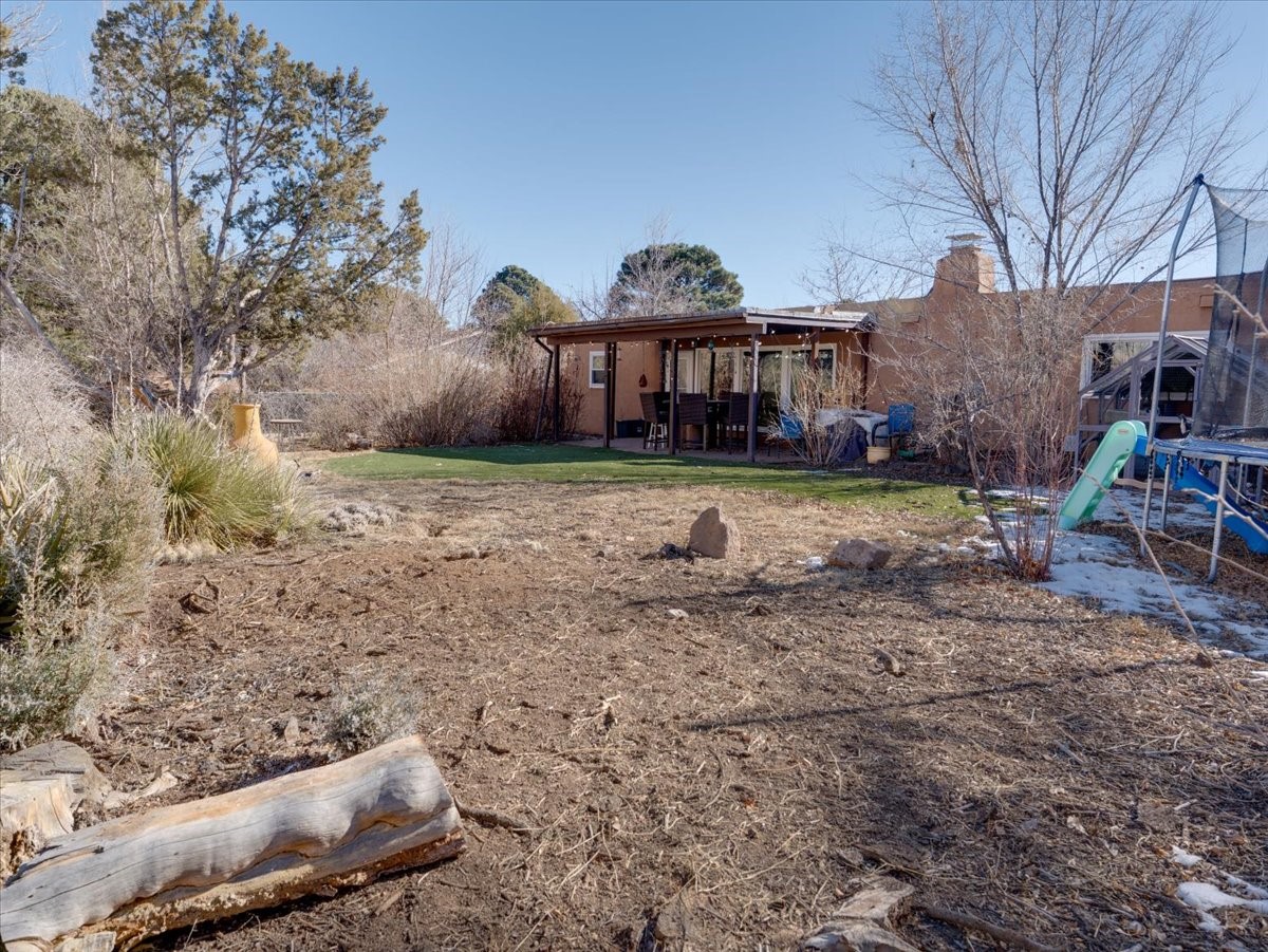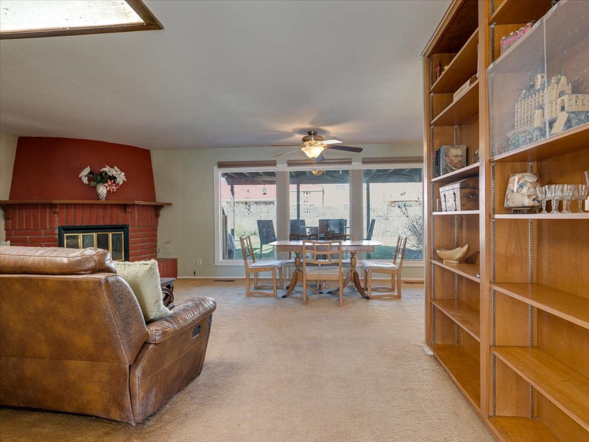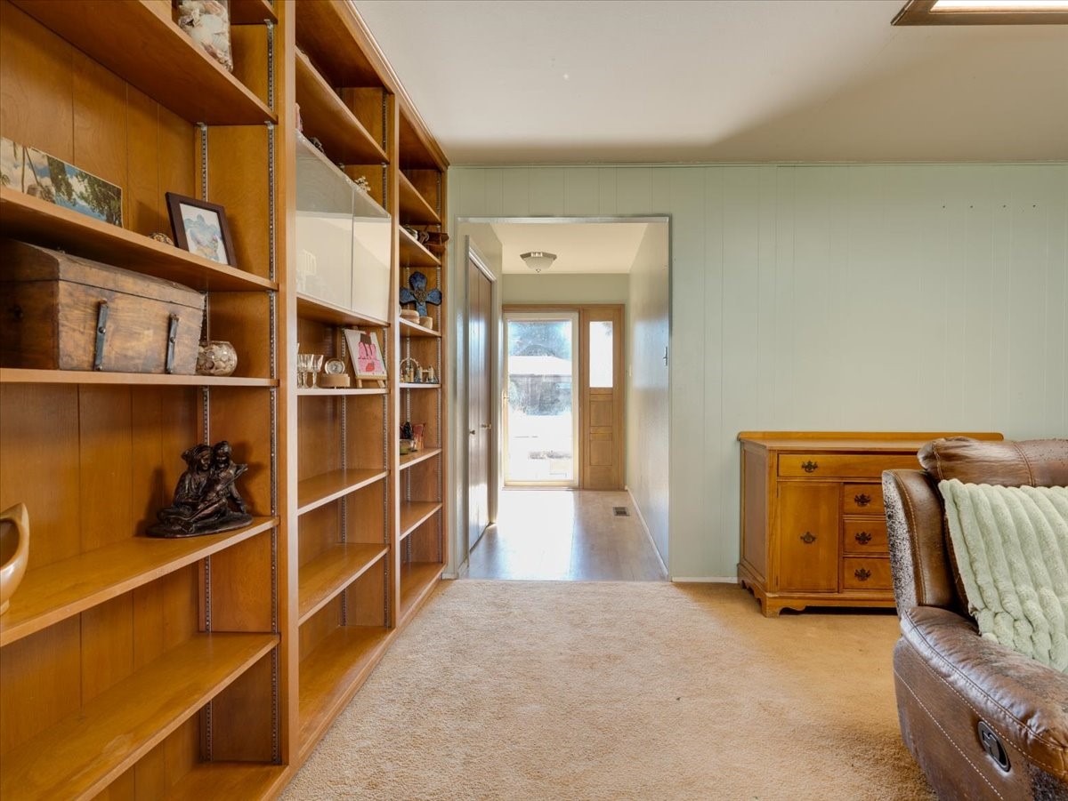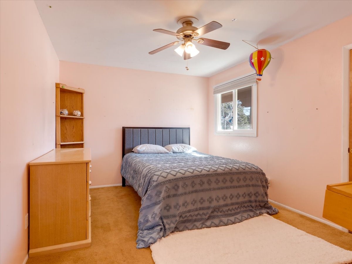 Welcome to this charming single-family home in White Rock, ideally located near Rover Park, bus stops, and scenic hiking trails. A south-facing front porch greets you with warm morning sunshine and the added benefit of quicker winter snow melt on the driveway. Inside, the home opens to a bright and inviting living room highlighted by a large fireplace and expansive windows that frame views of the backyard while filling the space with natural light. Just off the living room, the kitchen offers ample counter space, a small peninsula, and excellent potential for future updates. A dedicated laundry room with generous storage adds everyday functionality. Down the hall are two bedrooms served by a full bathroom. The primary suite offers flexibility, with access to a fourth bedroom tucked away from the main living areas. If a fourth bedroom isn't needed, this room is ideal for a private home office, library, workout room, or creative studio. The home has central air conditioning. Outside, the backyard features a covered patio perfect for all-season enjoyment, a low-maintenance area of artificial turf, and a generous yard ready for a new owner's vision of a garden, play space, or outdoor entertaining. With its desirable location, abundant natural light, and versatile layout, this home presents a wonderful opportunity to personalize and enjoy for years to come. Schedule your private showing today.