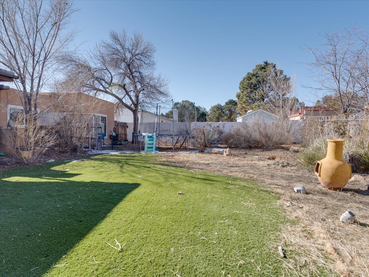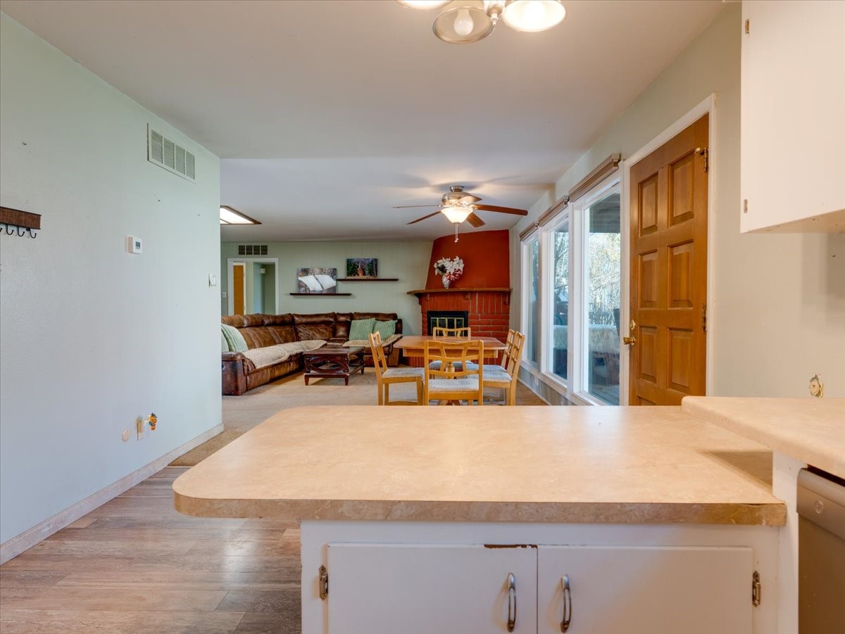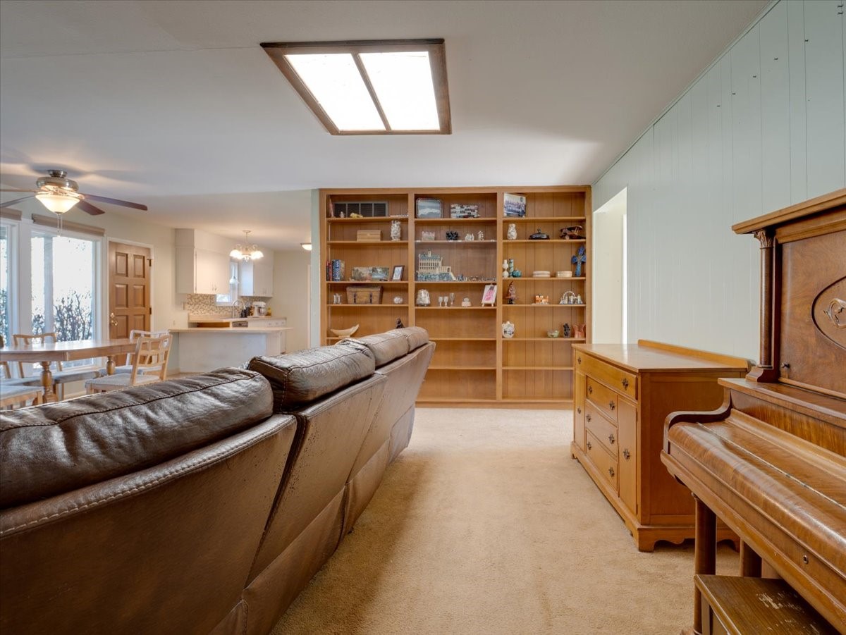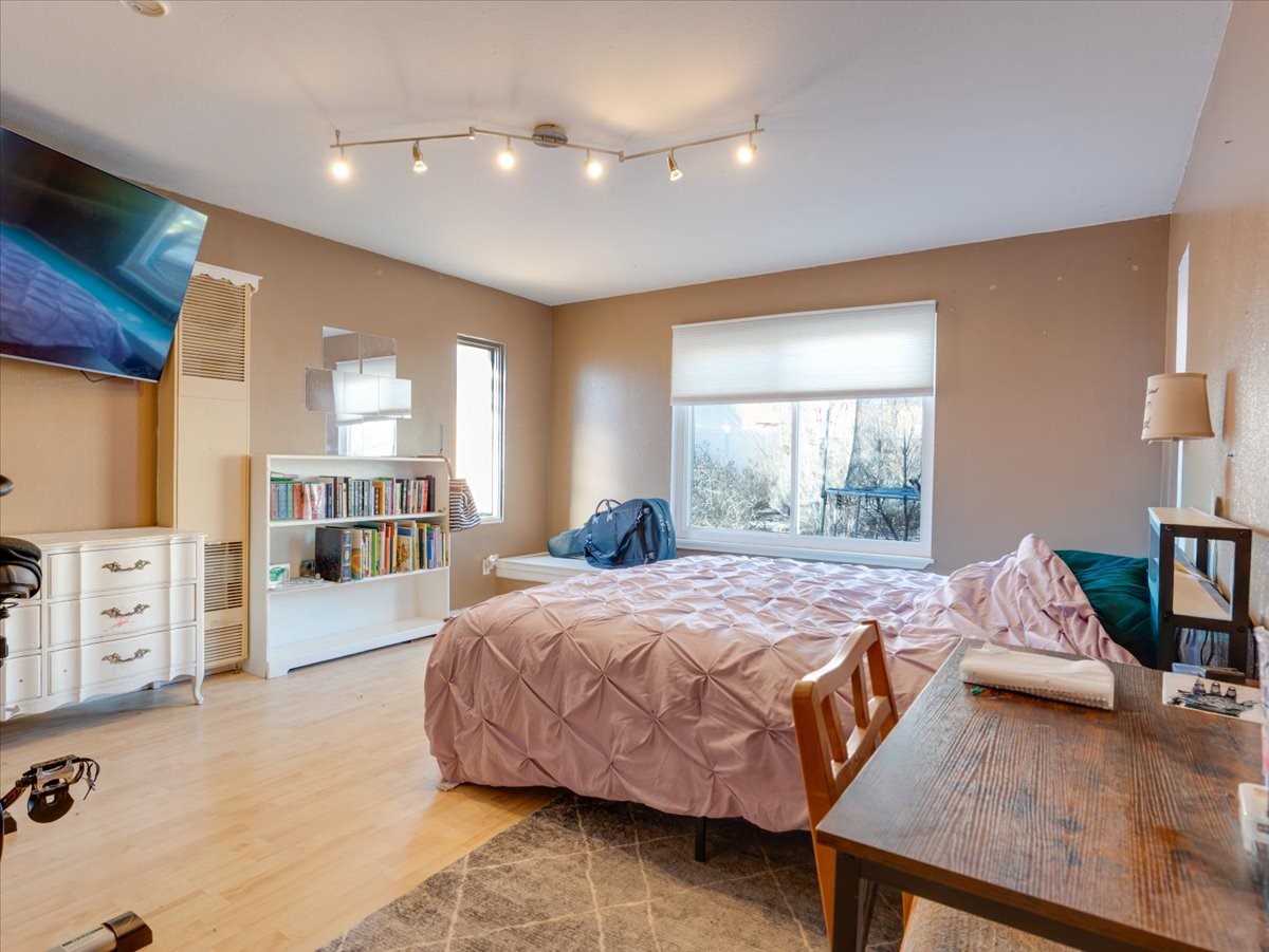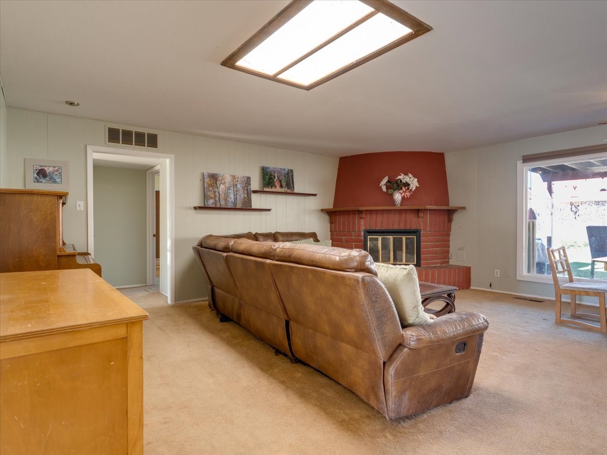 Welcome to this charming single-family home in White Rock, ideally located near Rover Park, bus stops, and scenic hiking trails. A south-facing front porch greets you with warm morning sunshine and the added benefit of quicker winter snow melt on the driveway. Inside, the home opens to a bright and inviting living room highlighted by a large fireplace and expansive windows that frame views of the backyard while filling the space with natural light. Just off the living room, the kitchen offers ample counter space, a small peninsula, and excellent potential for future updates. A dedicated laundry room with generous storage adds everyday functionality. Down the hall are two bedrooms served by a full bathroom. The primary suite offers flexibility, with access to a fourth bedroom tucked away from the main living areas. If a fourth bedroom isn't needed, this room is ideal for a private home office, library, workout room, or creative studio. The home has central air conditioning. Outside, the backyard features a covered patio perfect for all-season enjoyment, a low-maintenance area of artificial turf, and a generous yard ready for a new owner's vision of a garden, play space, or outdoor entertaining. With its desirable location, abundant natural light, and versatile layout, this home presents a wonderful opportunity to personalize and enjoy for years to come. Schedule your private showing today.