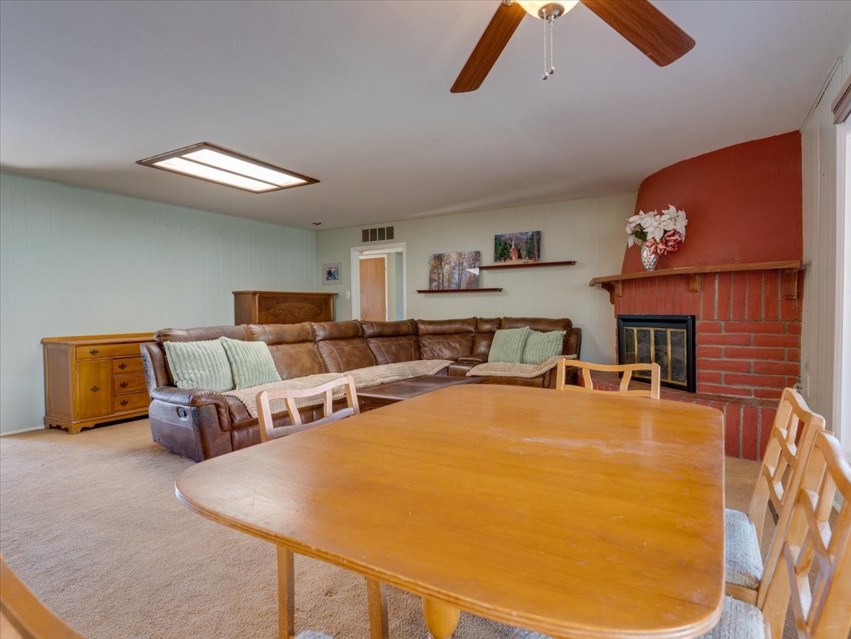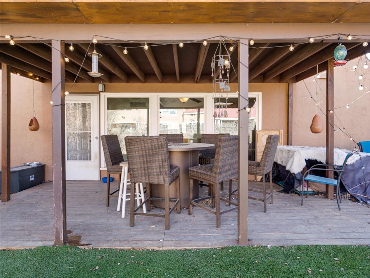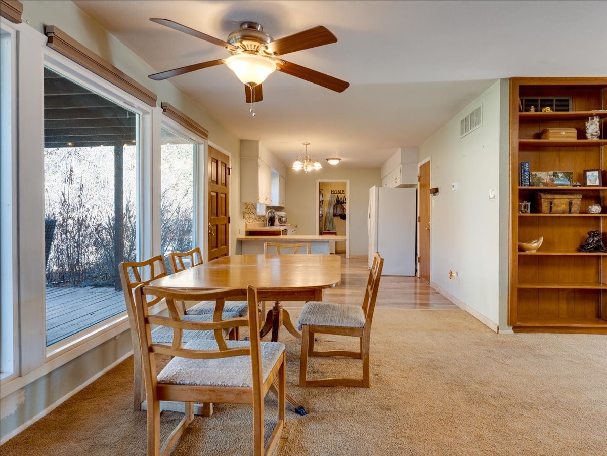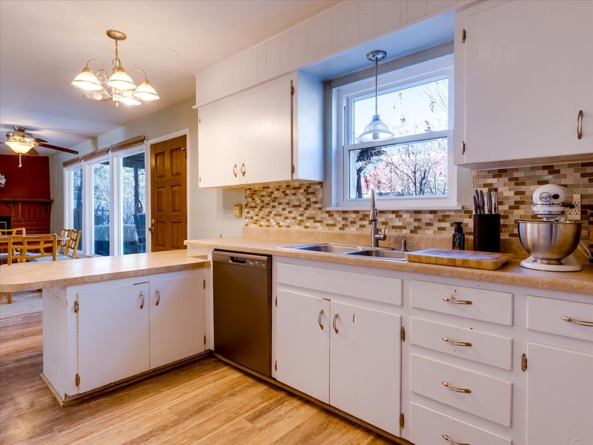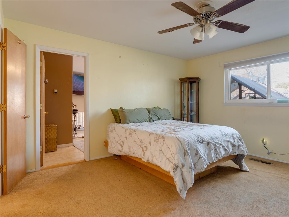 Welcome to this charming single-family home in White Rock, ideally located near Rover Park, bus stops, and scenic hiking trails. A south-facing front porch greets you with warm morning sunshine and the added benefit of quicker winter snow melt on the driveway. Inside, the home opens to a bright and inviting living room highlighted by a large fireplace and expansive windows that frame views of the backyard while filling the space with natural light. Just off the living room, the kitchen offers ample counter space, a small peninsula, and excellent potential for future updates. A dedicated laundry room with generous storage adds everyday functionality. Down the hall are two bedrooms served by a full bathroom. The primary suite offers flexibility, with access to a fourth bedroom tucked away from the main living areas. If a fourth bedroom isn't needed, this room is ideal for a private home office, library, workout room, or creative studio. The home has central air conditioning. Outside, the backyard features a covered patio perfect for all-season enjoyment, a low-maintenance area of artificial turf, and a generous yard ready for a new owner's vision of a garden, play space, or outdoor entertaining. With its desirable location, abundant natural light, and versatile layout, this home presents a wonderful opportunity to personalize and enjoy for years to come. Schedule your private showing today.