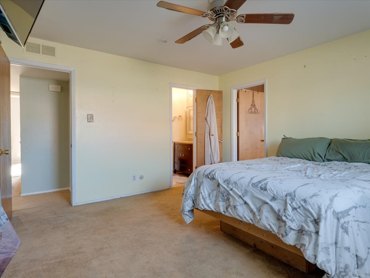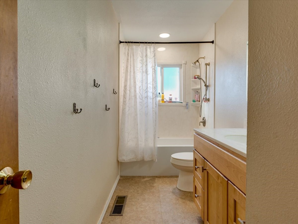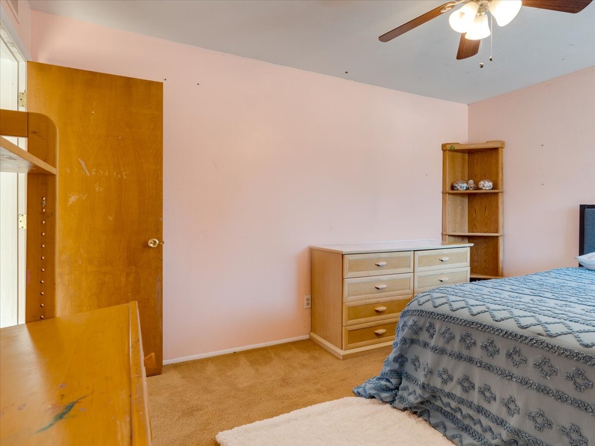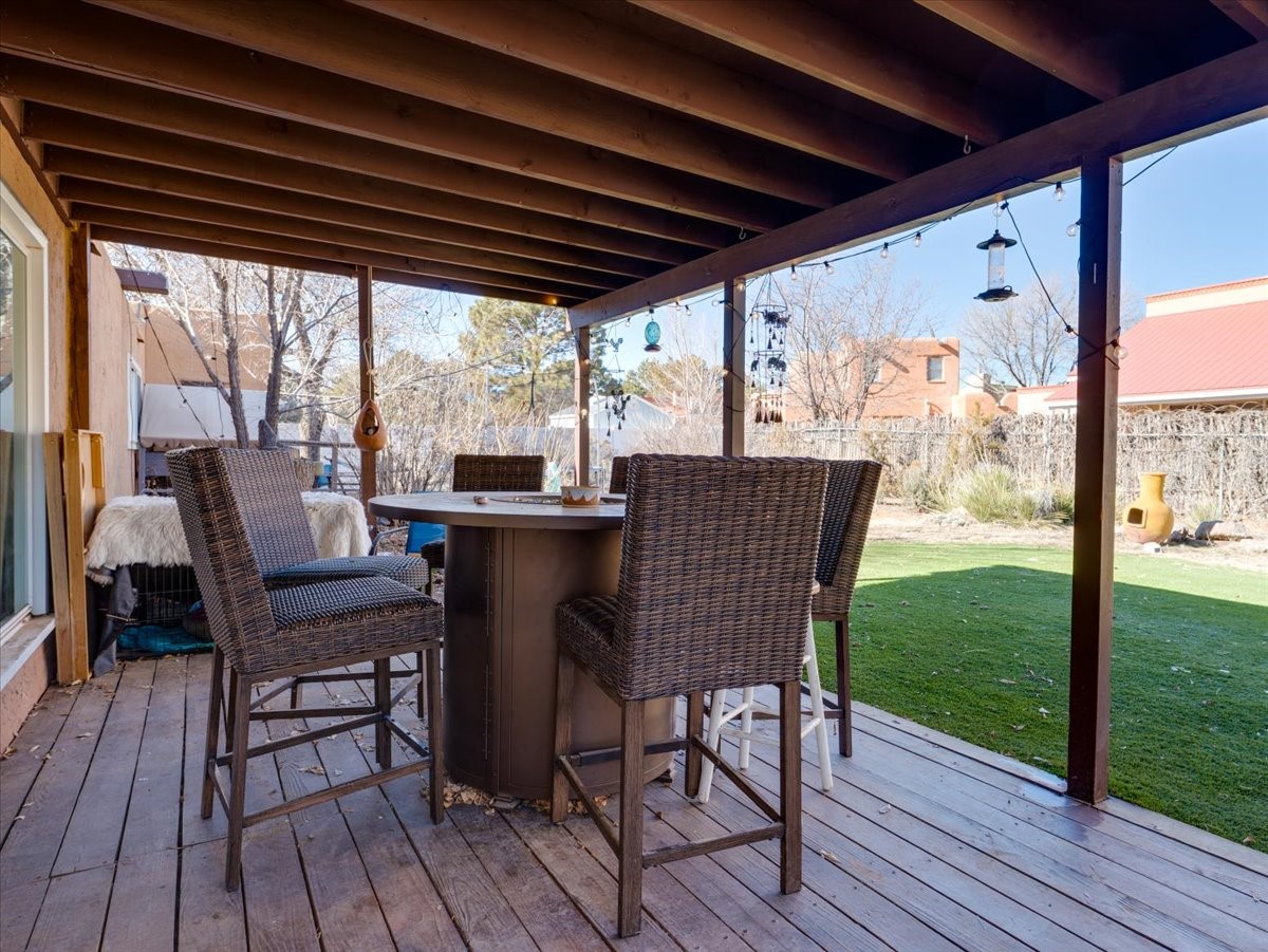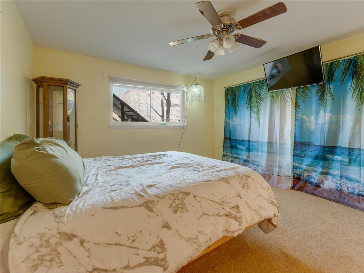 Welcome to this charming single-family home in White Rock, ideally located near Rover Park, bus stops, and scenic hiking trails. A south-facing front porch greets you with warm morning sunshine and the added benefit of quicker winter snow melt on the driveway. Inside, the home opens to a bright and inviting living room highlighted by a large fireplace and expansive windows that frame views of the backyard while filling the space with natural light. Just off the living room, the kitchen offers ample counter space, a small peninsula, and excellent potential for future updates. A dedicated laundry room with generous storage adds everyday functionality. Down the hall are two bedrooms served by a full bathroom. The primary suite offers flexibility, with access to a fourth bedroom tucked away from the main living areas. If a fourth bedroom isn't needed, this room is ideal for a private home office, library, workout room, or creative studio. The home has central air conditioning. Outside, the backyard features a covered patio perfect for all-season enjoyment, a low-maintenance area of artificial turf, and a generous yard ready for a new owner's vision of a garden, play space, or outdoor entertaining. With its desirable location, abundant natural light, and versatile layout, this home presents a wonderful opportunity to personalize and enjoy for years to come. Schedule your private showing today.