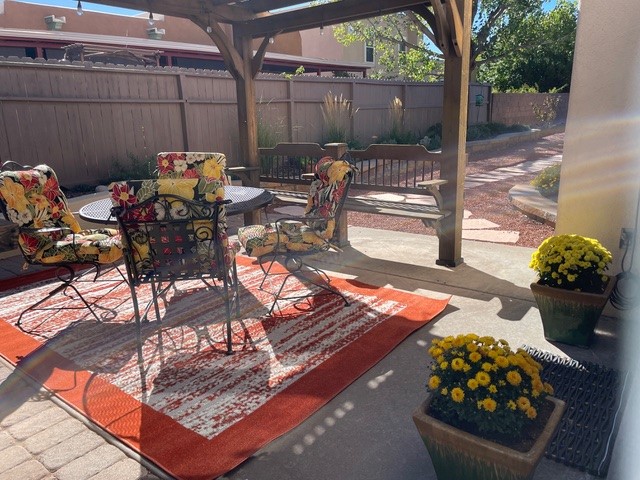 Located within the gated community of Vista Primera, this move-in-ready Santa Fe home offers comfort, efficiency, and thoughtful updates throughout. The property features owned solar, a recently maintained roof, tankless hot water heater, refrigerated rental air, updated kitchen countertops and backsplash, on demand hot water in the kitchen, and professionally landscaped grounds with drip irrigation, providing ease of ownership and energy-conscious living. Inside, the home has three well-proportioned bedrooms and 2 bathrooms, with a functional layout designed for both everyday living and entertaining. This home creates a welcoming atmosphere, while clean finishes allow for immediate enjoyment.Outdoors, the landscaped yard with large shed and lit gazebo provides a peaceful setting for relaxing or gathering, enhanced by low-maintenance drip irrigation. Whether used as a full-time residence or a Santa Fe retreat, this home combines practicality, comfort, and value within a secure, well-maintained community. This is a wonderful opportunity to enjoy move-in-ready living in one of Santa Fe's desirable gated neighborhoods.