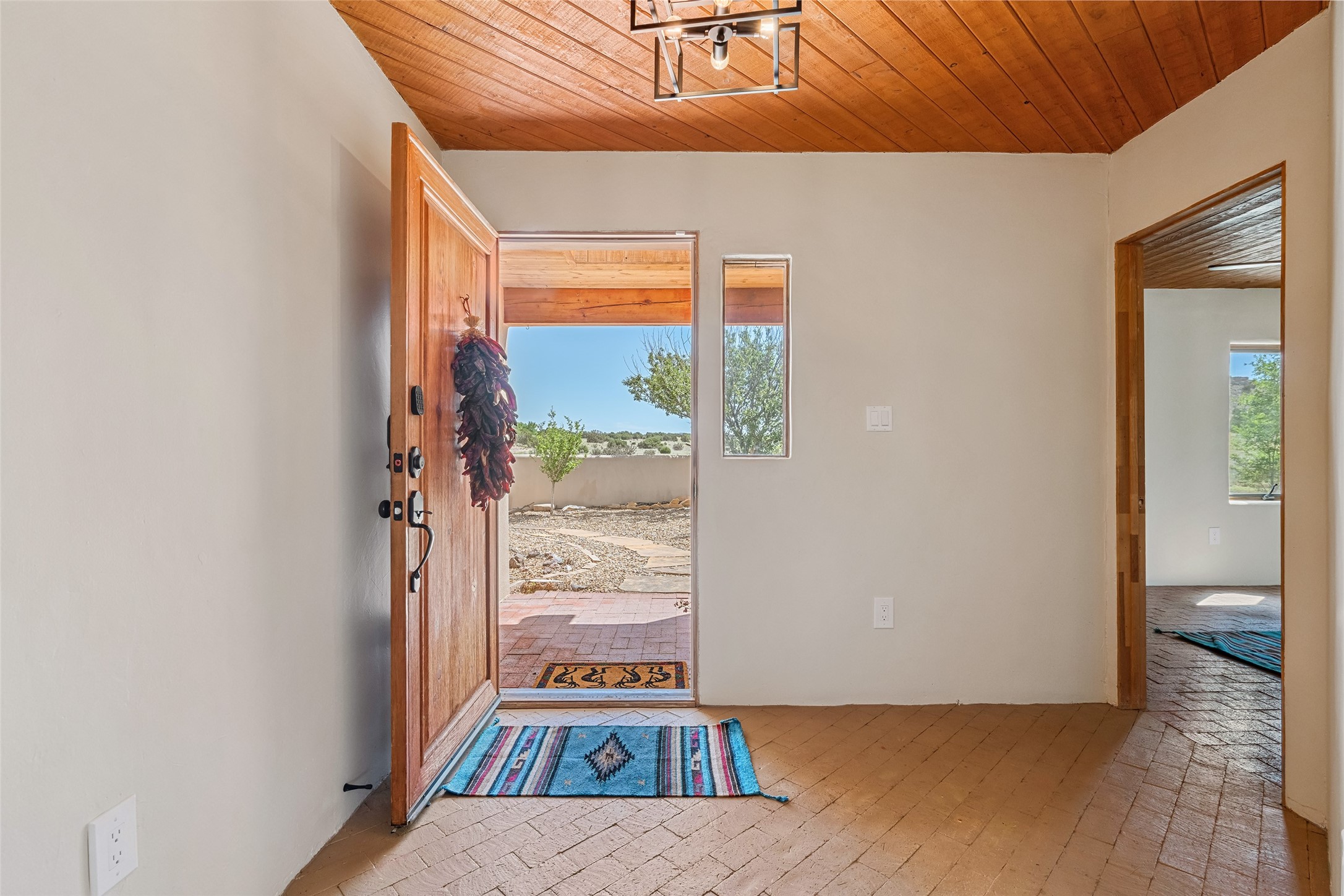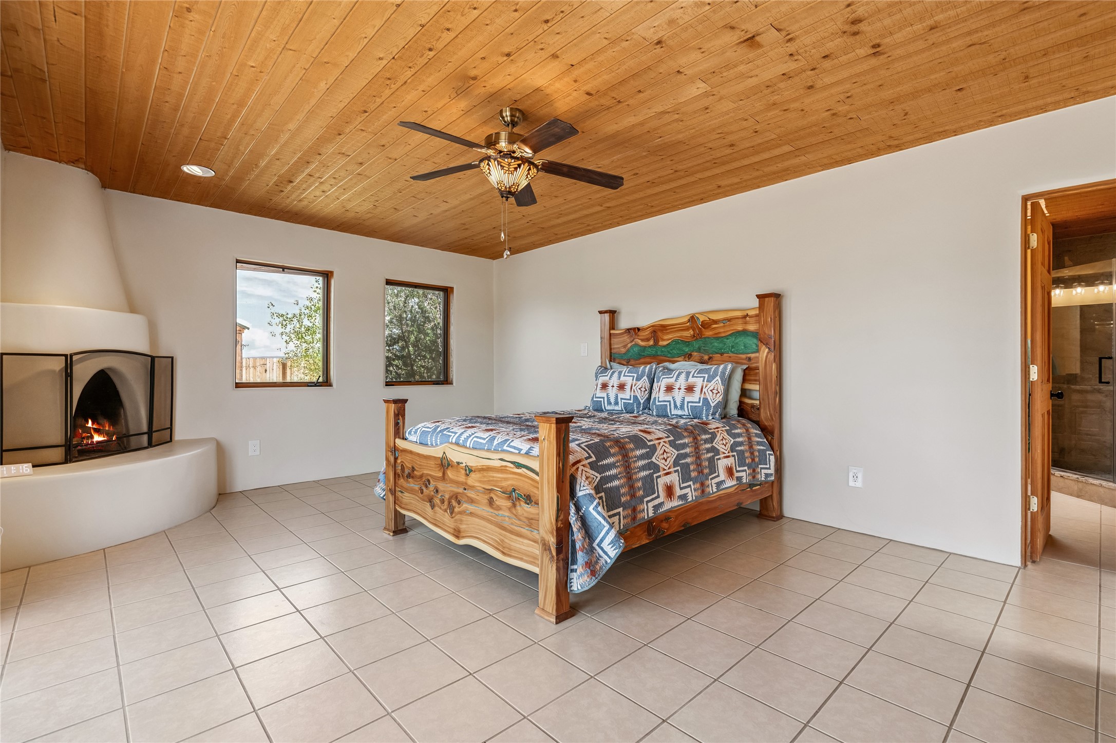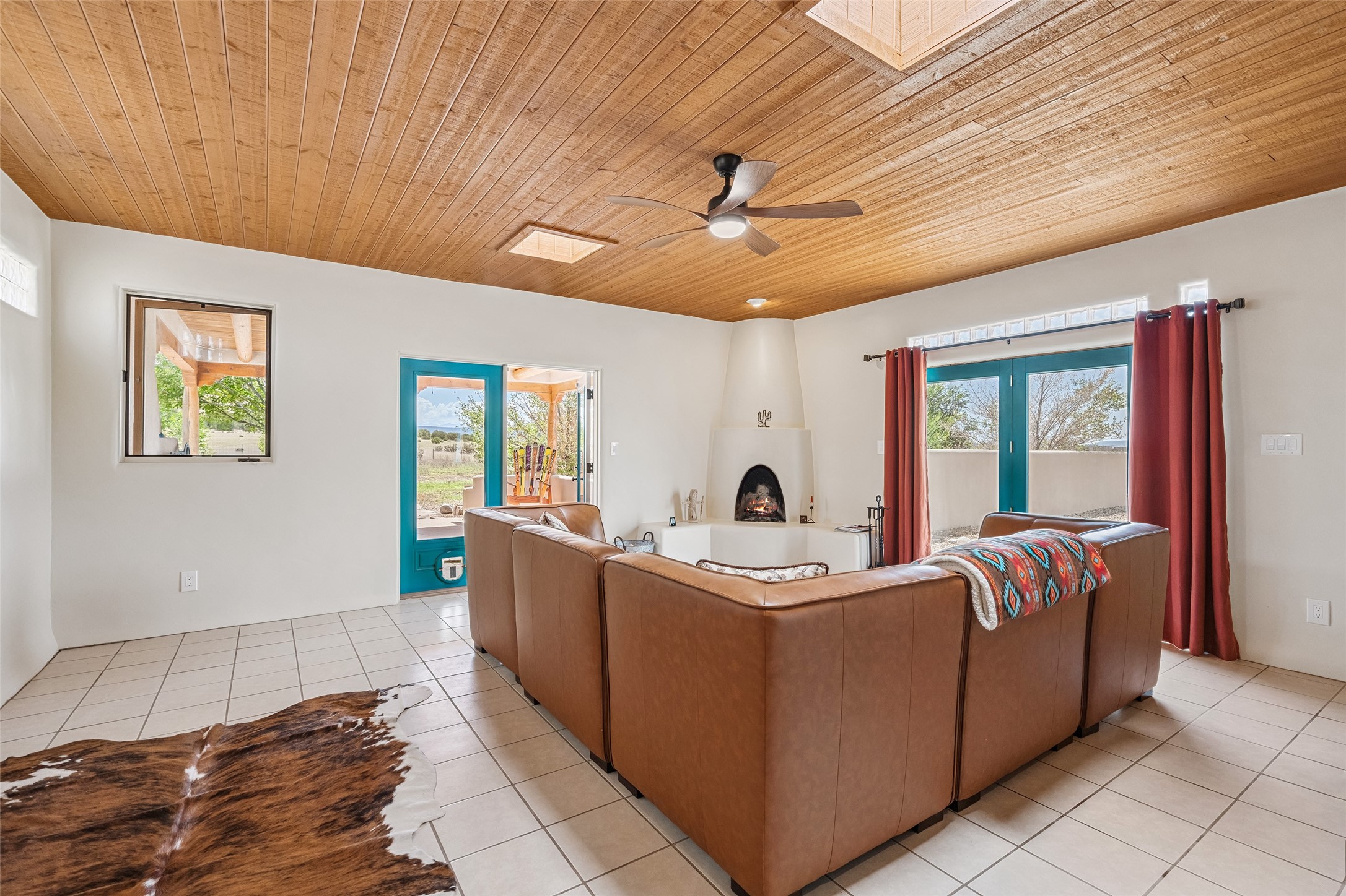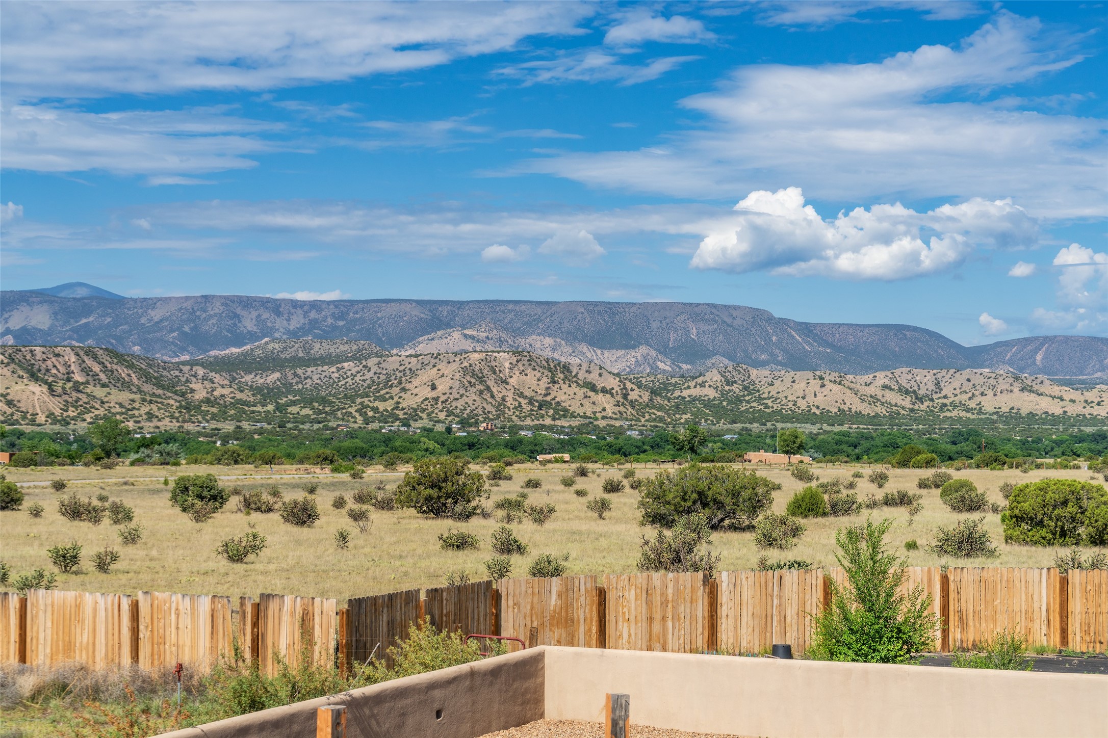 Ideally located for an easy commute to Espanola, Los Alamos and Santa Fe, this classic New Mexico-style home in the Mesa's de Medanales subdivision with No HOA! offers timeless Southwestern character, sweeping mountain views, and exceptional indoor-outdoor living. Set on five peaceful acres with horses welcome and surrounded by open vistas in every direction, the property provides an ideal balance of privacy, space, and convenience just minutes from Abiqui Lake, national forest, and Ojo Caliente Mineral Springs and Spa. At just under 4,000 square feet this mostly single level home features three spacious ensuite bedrooms, a fourth bedroom and a fourth bathroom, making it well suited for multi-generational living, guests, or flexible lifestyle needs. The main-level fourth bedroom is a large, light-filled space complete with a wood stove and cedar closet, offering excellent versatility as a guest suite, studio, or secondary living area. Throughout the home, classic Southwestern details create warmth and authenticity, including brick floors, beamed ceilings, nichos, radiant heat, multiple wood stoves, and three traditional kiva fireplaces. A generous eat-in kitchen serves as the heart of the home and opens to a formal dining room, while a dedicated office or flex space supports remote work, hobbies, or creative pursuits. All bathrooms have been tastefully remodeled with custom finishes and walk-in showers, enhancing both comfort and luxury. Outdoor living is a true highlight, with multiple serene courtyards and expansive exterior spaces designed for year-round enjoyment. A substantial covered portal with a traditional kiva fireplace invites relaxing evenings, entertaining, or simply taking in the remarkable high-desert surroundings. Recent updates add peace of mind and modern convenience, including remodeled bathrooms throughout, new stucco, updated electrical and lighting, fresh driveway gravel, security system and a water filtration and softener system.