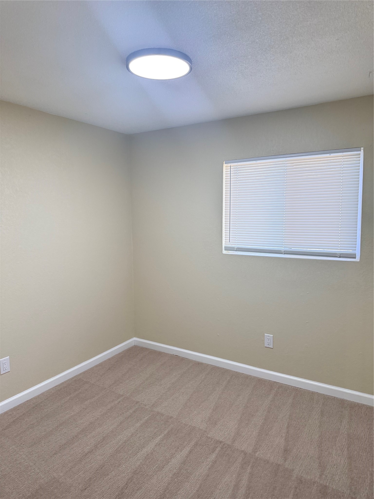 Single Story Home - 3 or 4 bedroom home, 2 baths located at end of cul-de-sac. Fenced yard with access to walking trail in rear. New paint, flooring, cabinets, solid surface countertops, carpet, fixtures. Converted garage may be used as 4th bedroom or large second living area. Refrigerated air. Stainless appliances with stackable washer/dryer located in kitchen area. Fridge will be provided. Large storage/workshop room accessed in backyard separate from home.