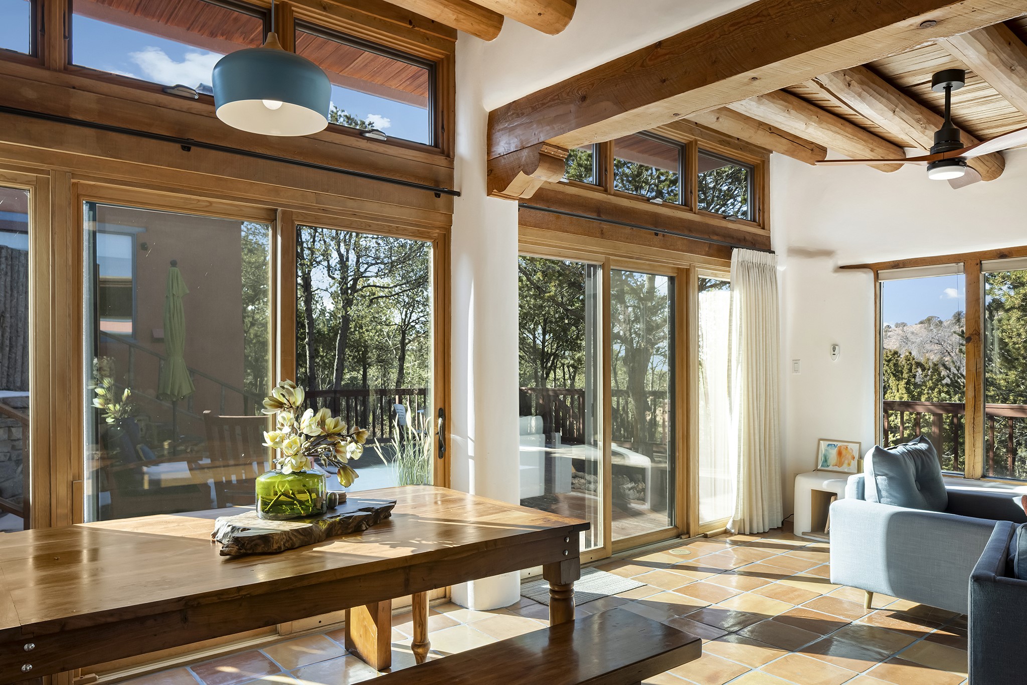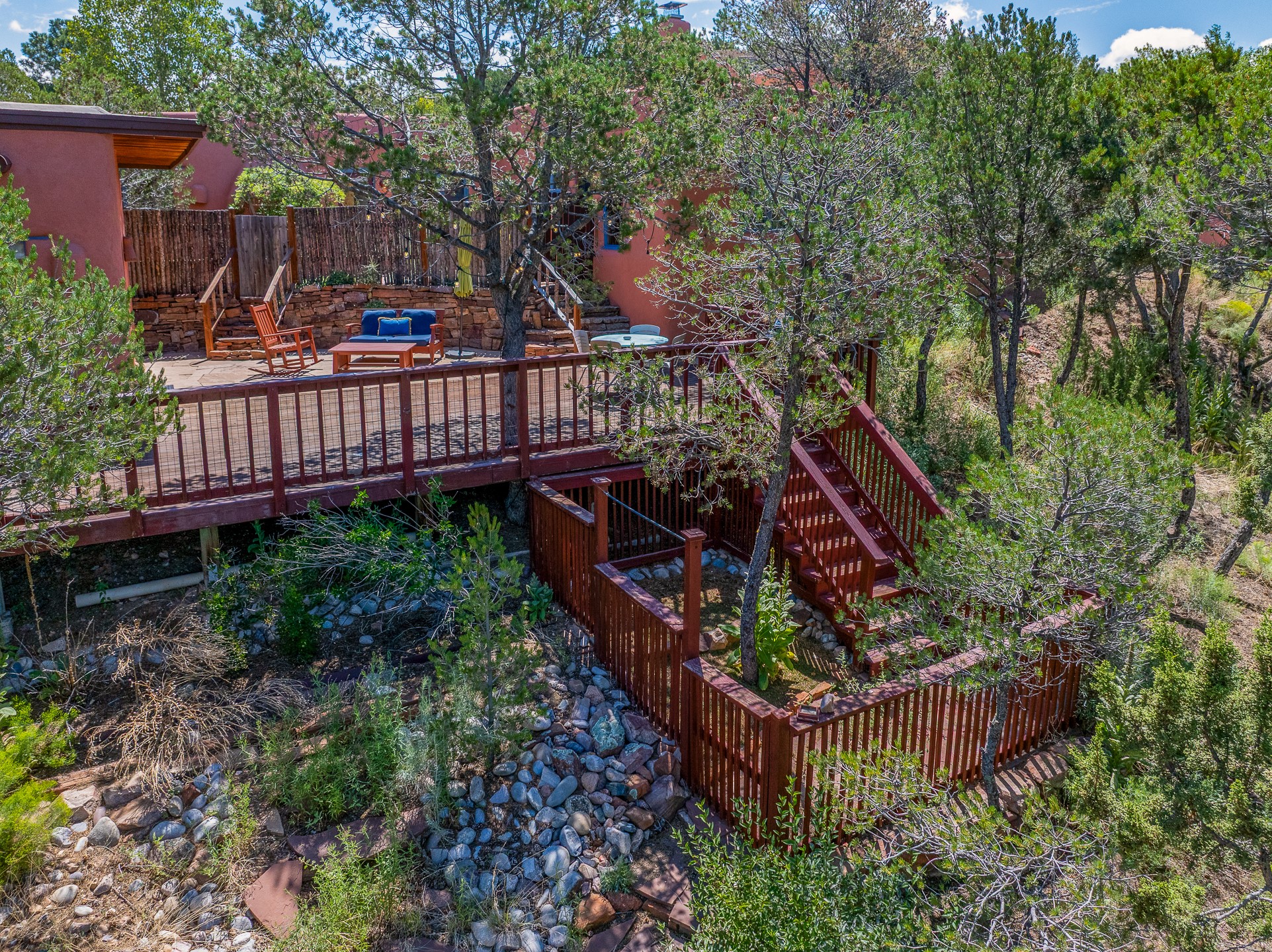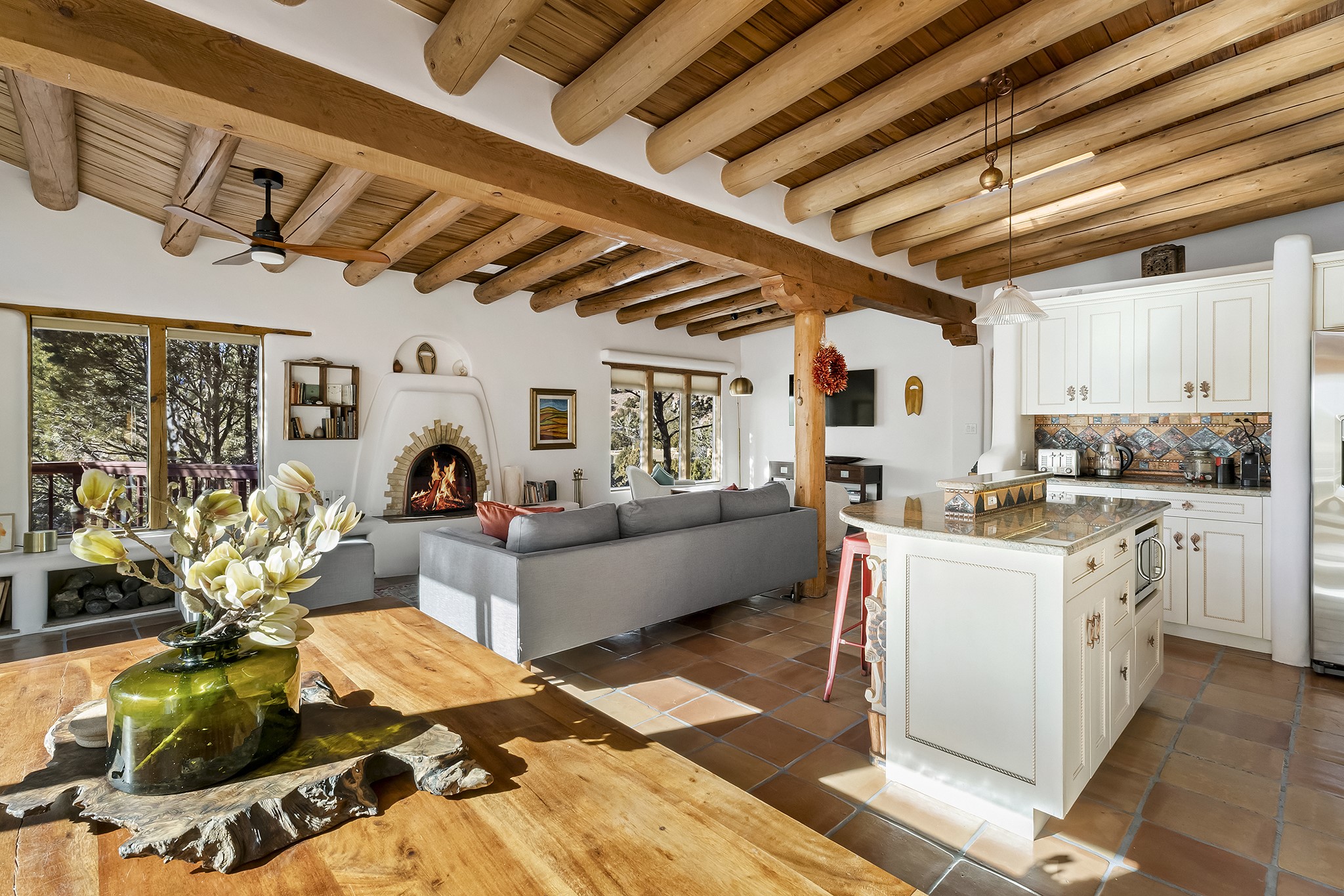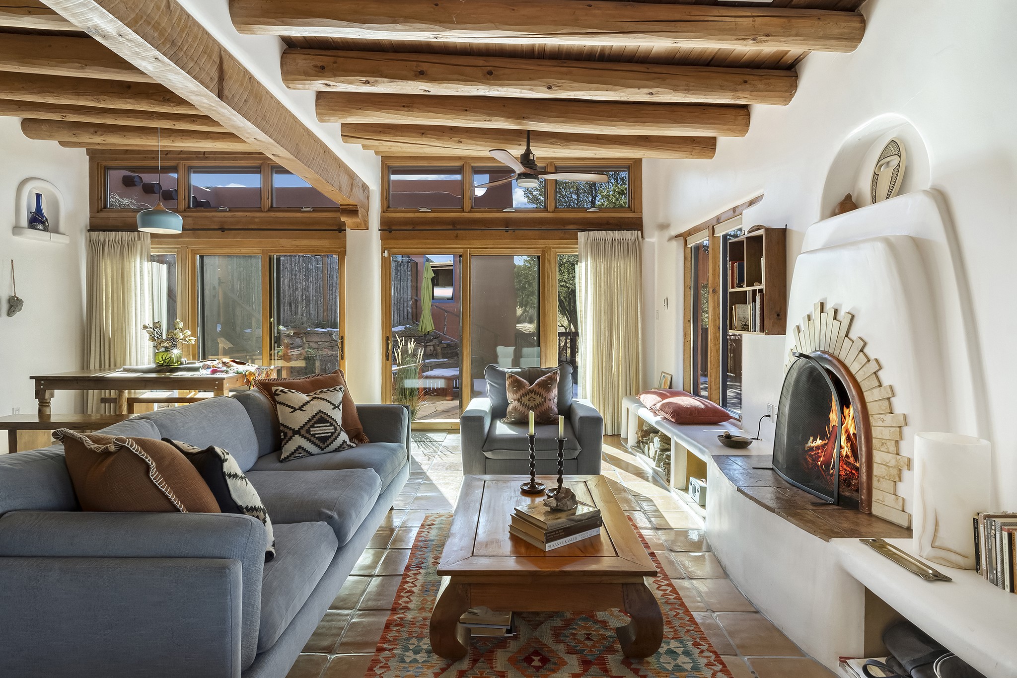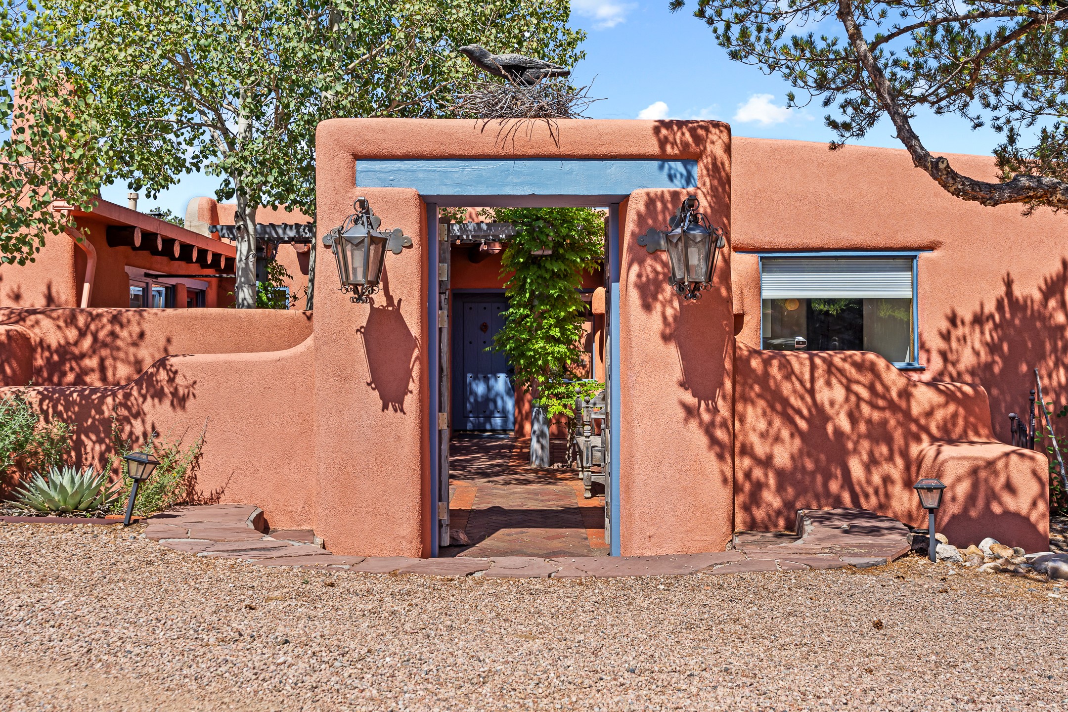 A rare 3,896 sq. ft. DUPLEX just minutes from the Plaza, Canyon Road, and the Railyard District--offering exceptional versatility, timeless style, and a premier 1.2-acre setting.With two fully independent 2-bedroom, 2-bath residences under one roof, Casa Del Sur and Casa Del Norte, the property can be used flexibly for multi-generational living, rental income, or creative live/work arrangements.Both interiors reflect the warmth and character of Southwestern design, featuring classic elements like vigas, Saltillo tile flooring, brick flooring and exposed adobe and plaster walls. Each residence has its own living spaces, kitchens, and private entrances--offering separation without sacrificing charm.Privately sited and thoughtfully designed, the home also includes a 3-car garage, ample outdoor areas, and quiet surroundings--creating a sense of retreat within easy reach of Santa Fe's most iconic galleries, restaurants, and historic landmarks.Whether you're looking to live, share, or invest, this unique compound offers possibilities that are increasingly hard to find in Santa Fe.