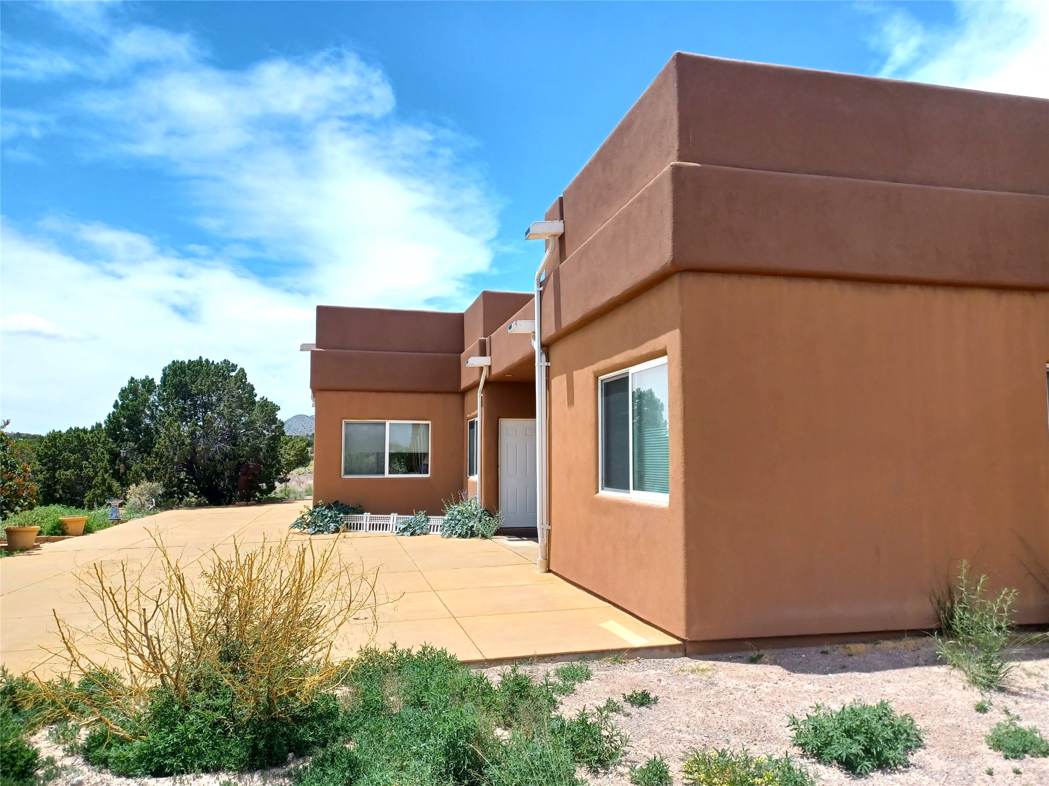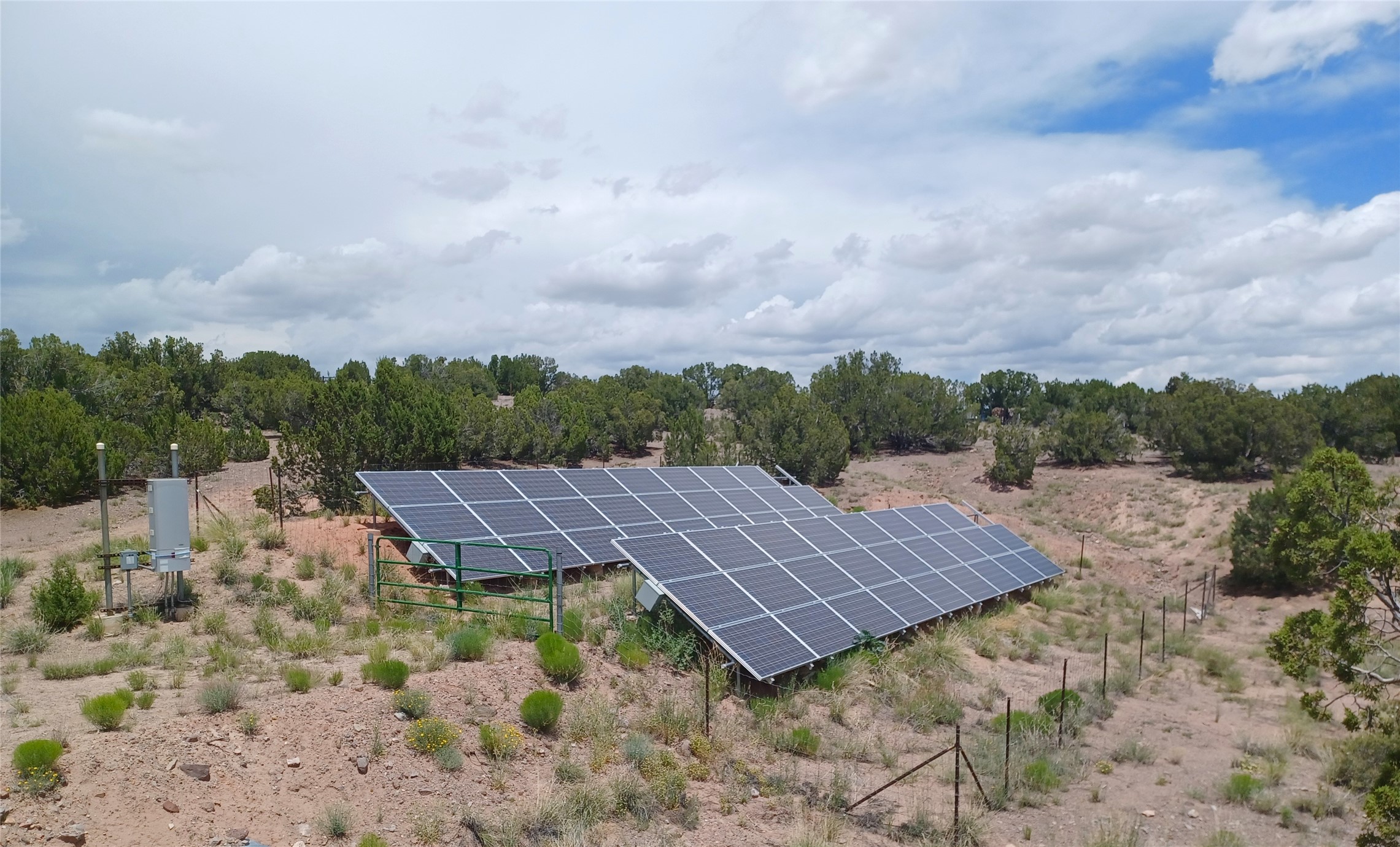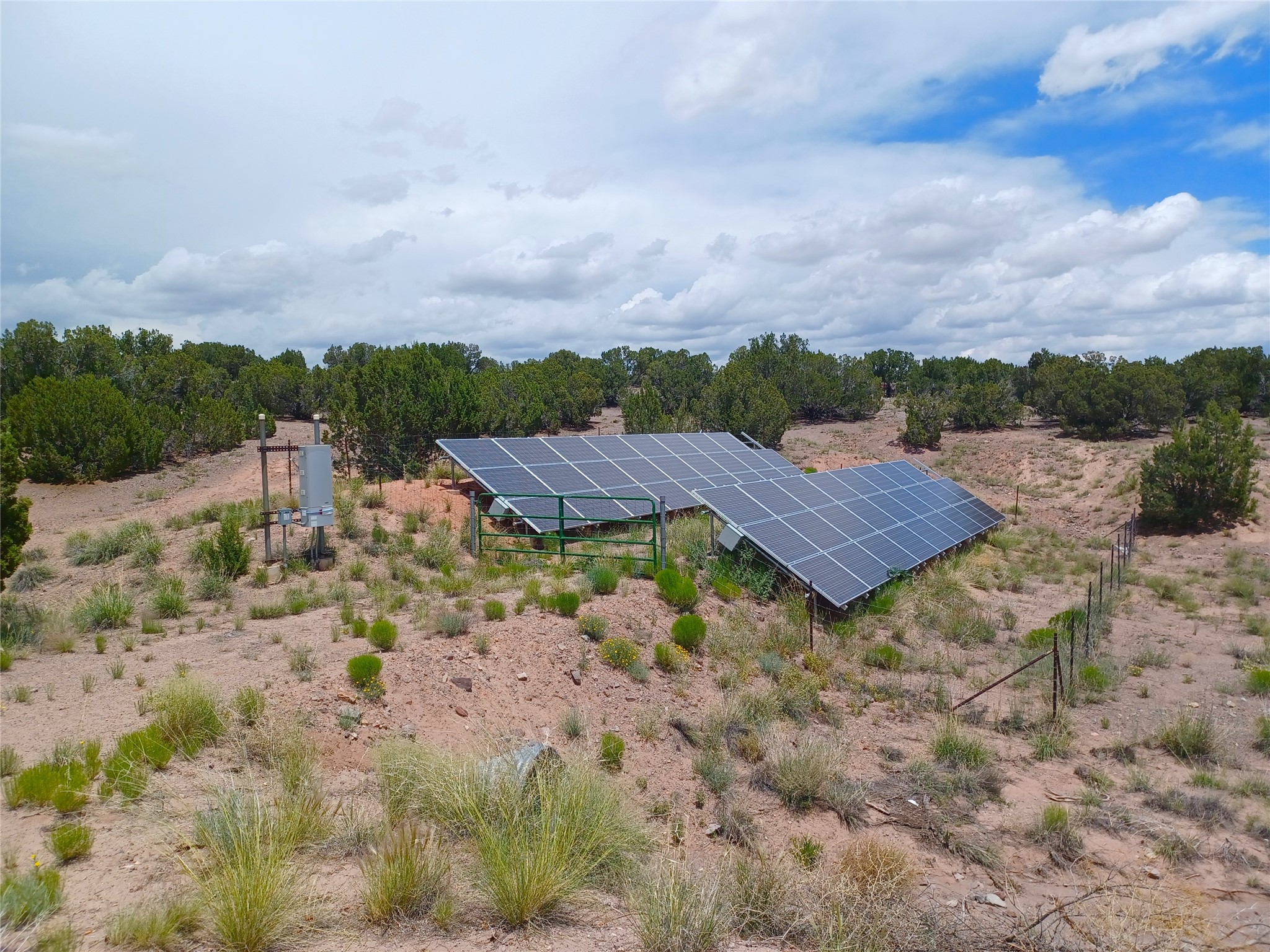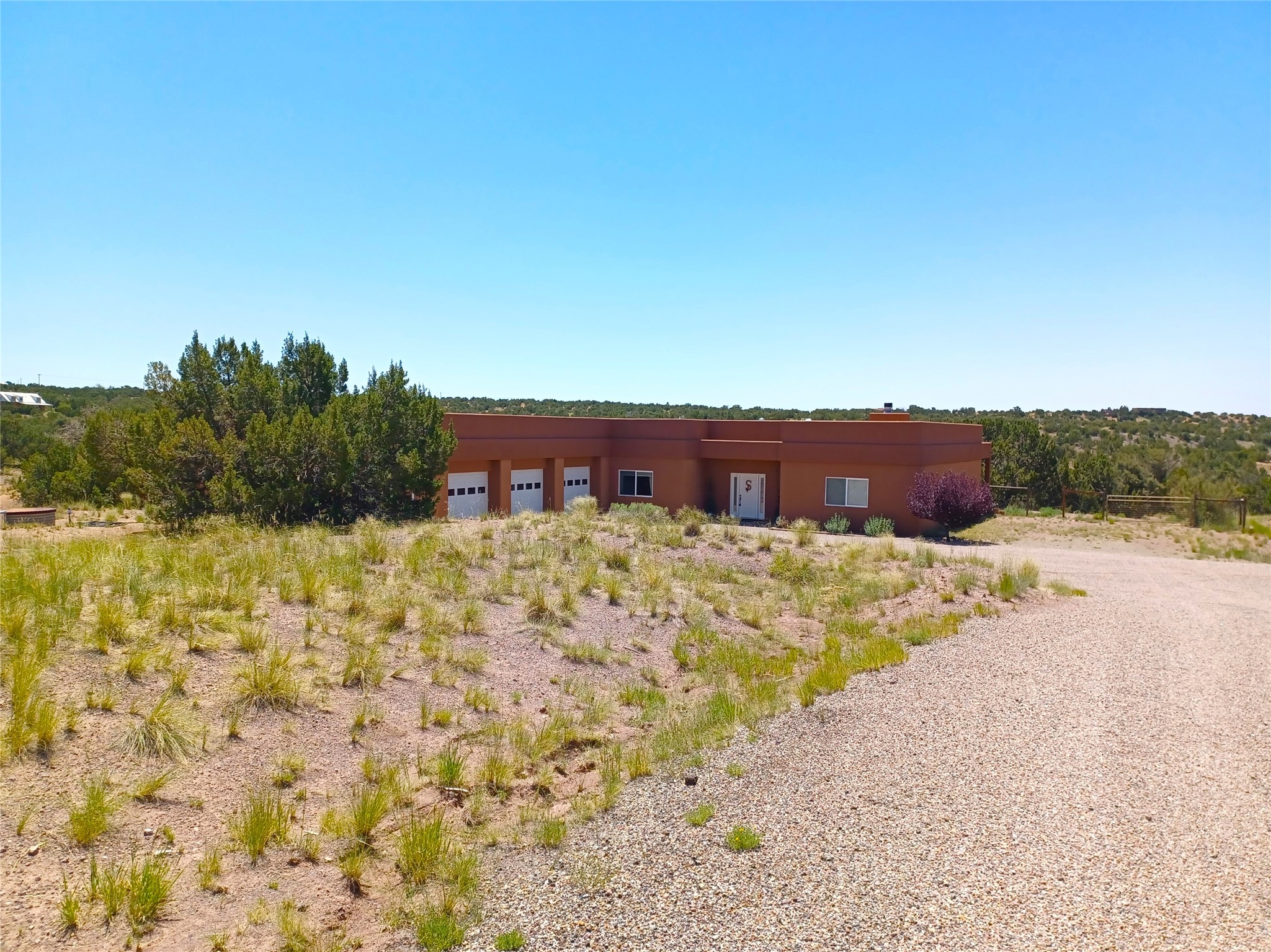 Welcome to the exceptional property located at 64 Coyote Trail in Santa Fe County. Situated on over 20 acres, this distinguished luxury home represents a meticulously planned and executed estate, achieving complete independence from fossil fuels. The residence features a contemporary geothermal system for heating and cooling, effectively replacing propane and natural gas, alongside a substantial solar photovoltaic array that not only powers the home but also contributes energy back to the grid. The property maintains a connection to PNM to ensure continued electric service. Furthermore, a private well and septic system enhance this home's self-sufficiency, resulting in remarkably low operating costs throughout the year. The residence encompasses 3,619 square feet and includes three bedrooms and three bathrooms. The master suite is particularly noteworthy, featuring two separate, luxurious ensuite bathrooms on opposing sides, all wheelchair accessible as the rest of the home. Additional interior features include classic eurpoean design touches, a wood burning fireplace and a formal dining room. The property also boasts a generous 1,786 square foot temperature controlled garage, suitable for 6 + vehicles or to use as a workshop. Constructed with superior quality on a concrete slab, this remarkable home reflects uncompromising standards. I invite you to schedule a private viewing of this unique property at your earliest convenience. Please be advised that showing times are limited, and the listing Broker is required to be present for all appointments. There is not a for sale sign on the street and the gate remains locked except for confirmed showings.