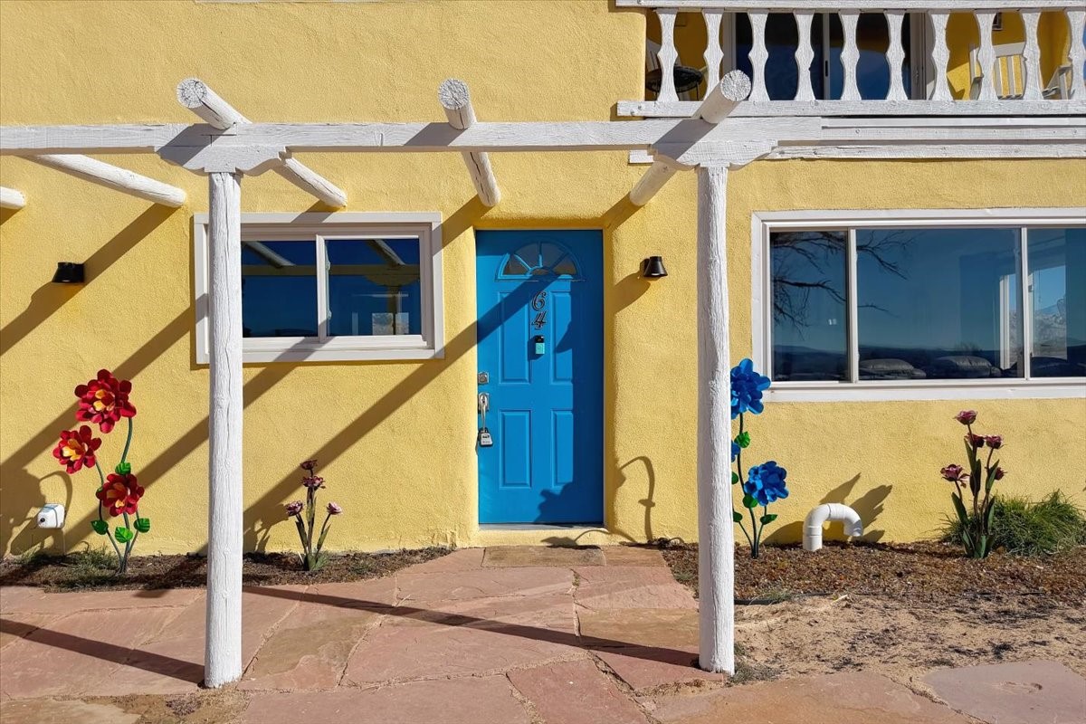 Set on 1.5 private acres with stunning 360-degree views, this beautifully updated home blends sparkle, warmth, and comfort in a peaceful cul-de-sac setting. Featuring 3-4 bedrooms and 3 bathrooms, the home welcomes you with a grand entry, striking lighting, and an open-concept layout designed for both everyday living and entertaining. The main level offers a spacious living area with a cozy pellet stove, a formal dining space highlighted by a gorgeous light fixture, and a bright kitchen updated with granite countertops, a shimmering backsplash, and picturesque views from the sink. A conveniently located laundry room and half bath add ease, while a bonus room or bedroom showcases a beautiful wood-burning fireplace for extra charm. Upstairs, you'll find two generously sized bedrooms with an updated full bath, plus a serene primary suite with an en-suite bathroom and private deck to take in even more breathtaking scenery. Additional features include newer windows, a fenced yard, outbuildings with a detached garage/shop and large shed for storage or projects. The roof and septic system are only seven years old, offering peace of mind. Enjoy quiet country living with easy access to Santa Fe, Espaola, and Los Alamos--privacy, beauty, and convenience all in one sparkling, welcoming home.