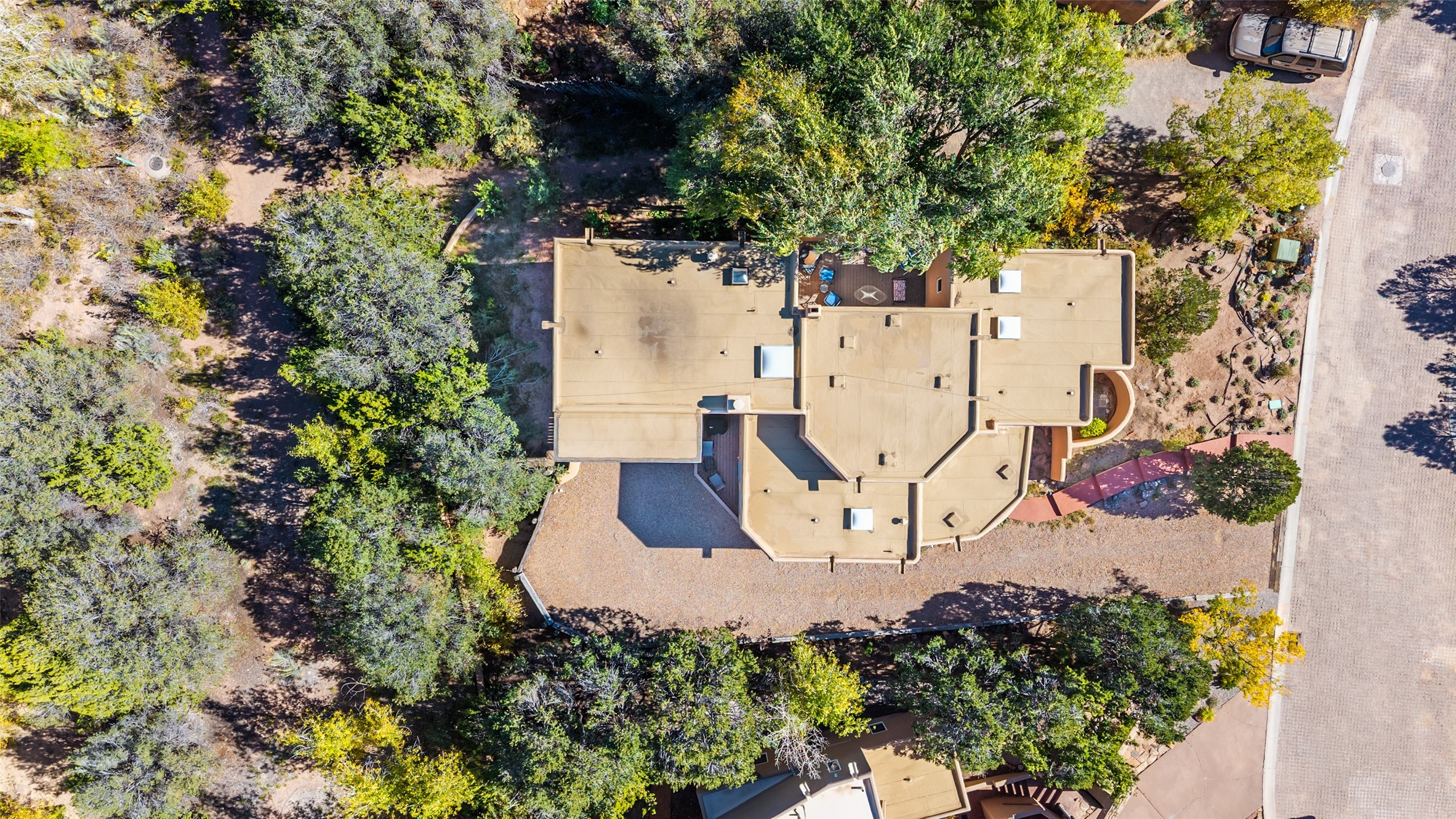 Immaculate Santa Fe Retreat in Estancia Primera! Nestled in the foothills just above the Santa Fe Plaza, this exceptional home offers the perfect blend of elegance, comfort, and location. Thoughtfully remodeled and meticulously maintained, this property is a true gem for those seeking refined Santa Fe living with modern luxury. At the heart of the home, the showstopping kitchen-- remodeled by Kitchens by Jeannine--is a chef's dream. Featuring premium cabinetry with abundant storage, high-end appliances including a Viking Range and Sub-Zero Refrigerator, and striking thick-slab Esprit de Santos granite countertops with elegant copper veining, this kitchen truly inspires. Light maple wood floors flow through the living spaces, where tall beamed ceilings, double patio doors, and a classic kiva fireplace create a warm and inviting ambiance. The elevated primary suite is a private haven, complete with its own fireplace and a beautifully remodeled bath. The oversized walk-in closet is a dream, offering generous storage and thoughtful design. Two additional bedrooms--one with its own cozy outdoor space and charming Santa Fe style bath--offer wonderful flexibility for guests or work-from-home living. Additional highlights include freshly repainted interiors, an immaculate garage with epoxy floors and new cabinetry, and a serene walking path just behind the home leading into downtown Santa Fe. Located in the sought-after Estancia Primera community, residents also enjoy access to a seasonal outdoor swimming pool and tennis courts. This immaculate foothills home combines Santa Fe charm, luxurious upgrades, and an unbeatable location--just minutes from world-class dining, galleries, and the historic Plaza.