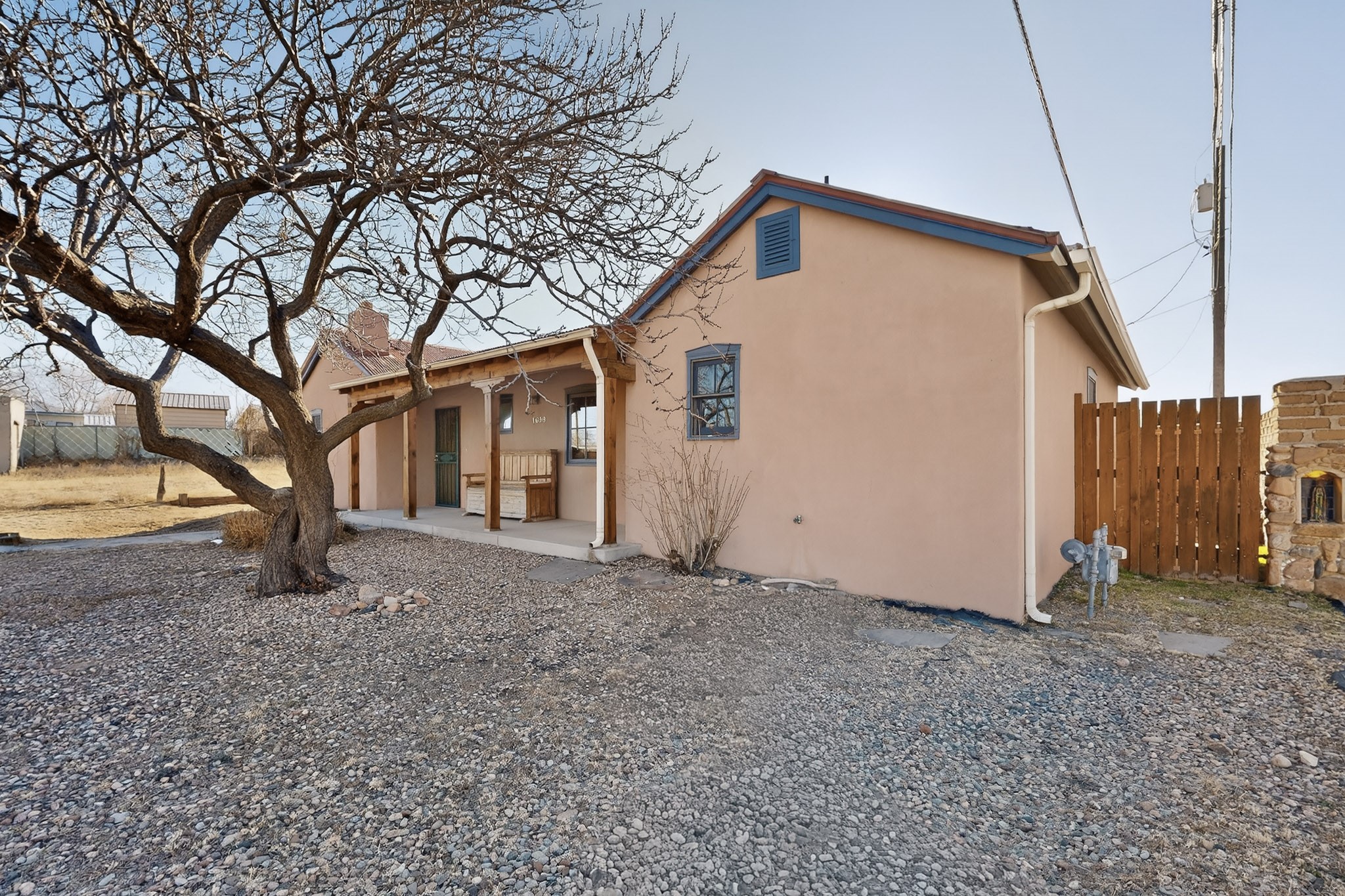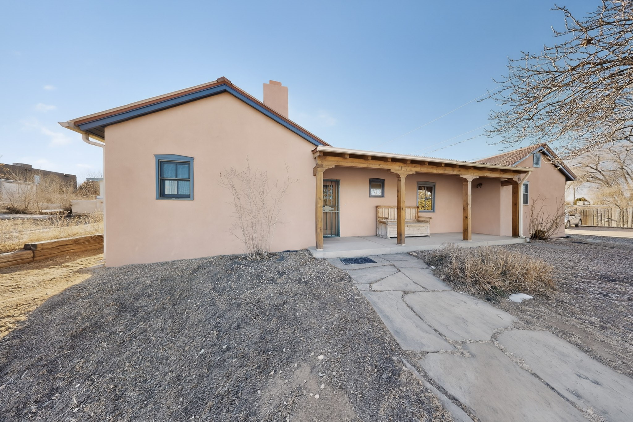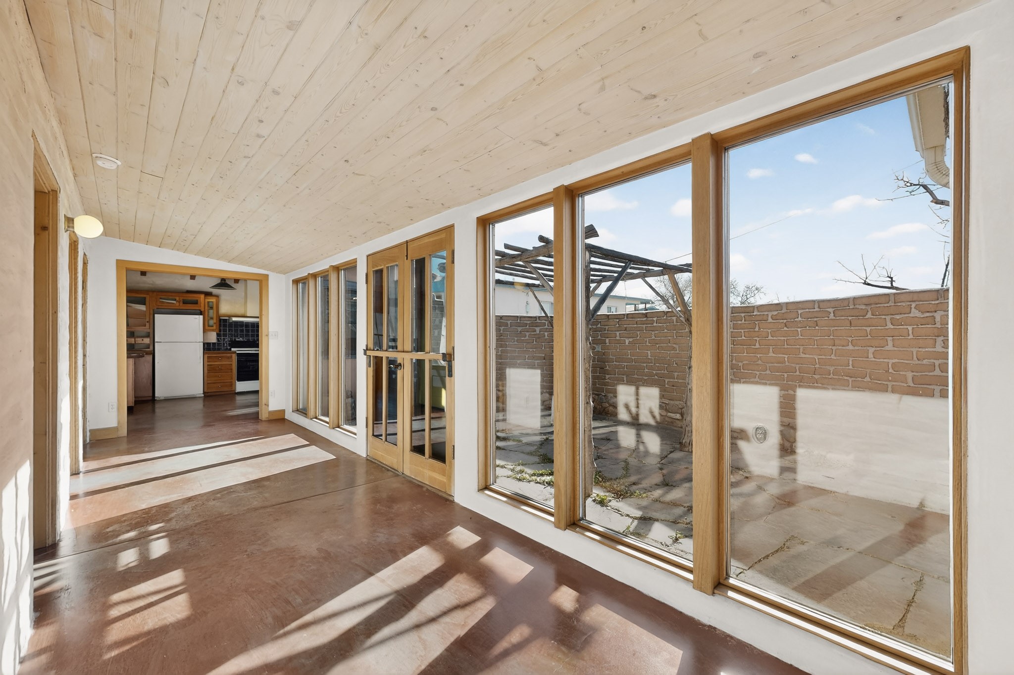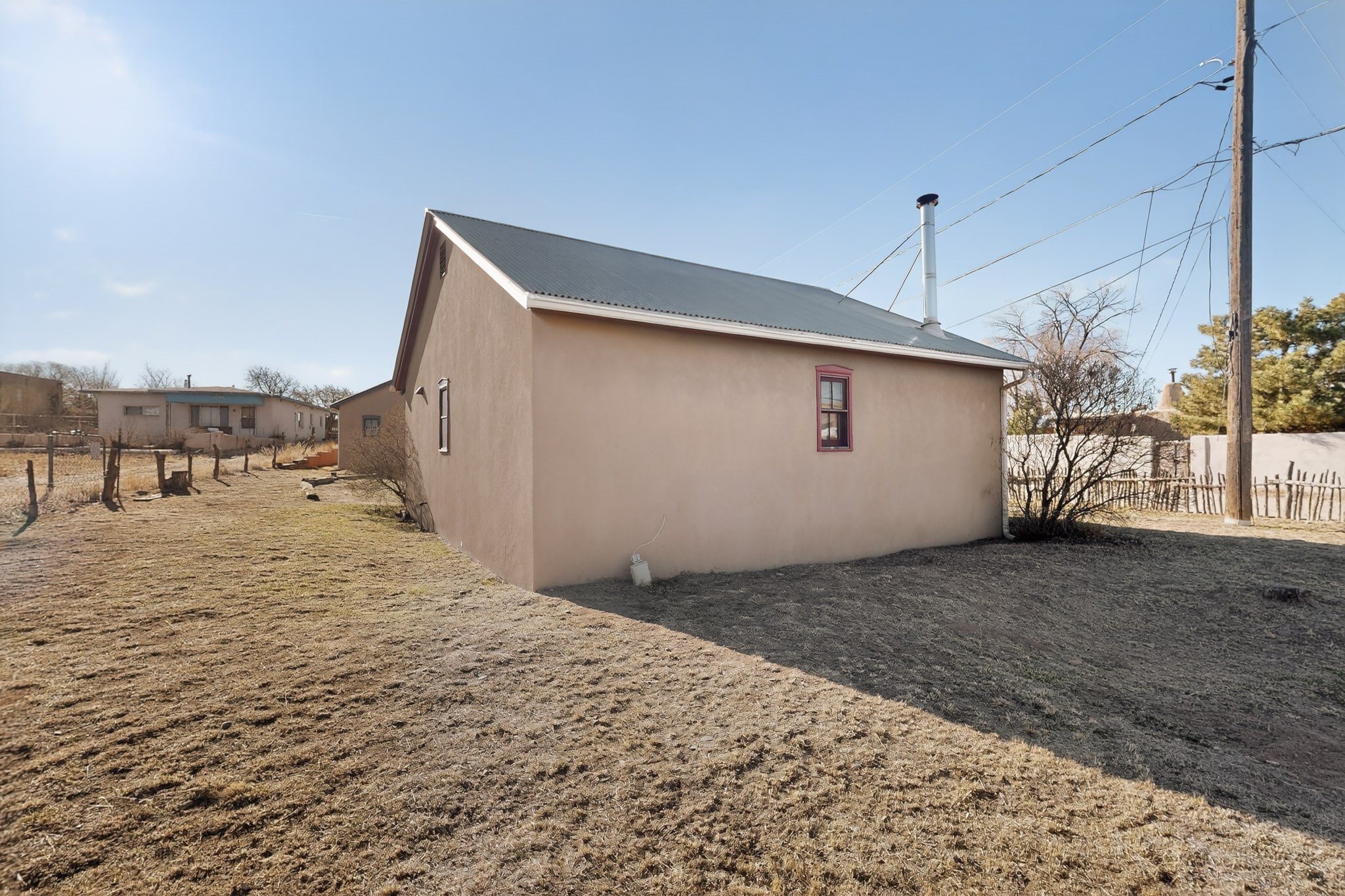 Quintessential northern New Mexico design meets everyday livability in this uber-charming two-bedroom, two-bath home that feels rooted, warm, and unmistakably Santa Fe. Polished concrete floors run throughout, paired with radiant heat for year-round comfort, while a pitched roof and high ceilings bring in light and a relaxed sense of volume. The cozy kitchen opens to the main living space, anchored by a sweet kiva fireplace that adds warmth and character. Two comfortable bedrooms offer privacy and flexibility. A detached studio provides inspiring bonus space for art, work, or easy conversion into a guest house. Recent improvements include a new water heater, adding peace of mind. Live like a true local with a 7-minute drive or 37-minute walk to the Santa Fe Farmers Market and just ten minutes by car to the heart of the city at the Santa Fe Plaza. A soulful home in a location that connects you effortlessly to Santa Fe living.
