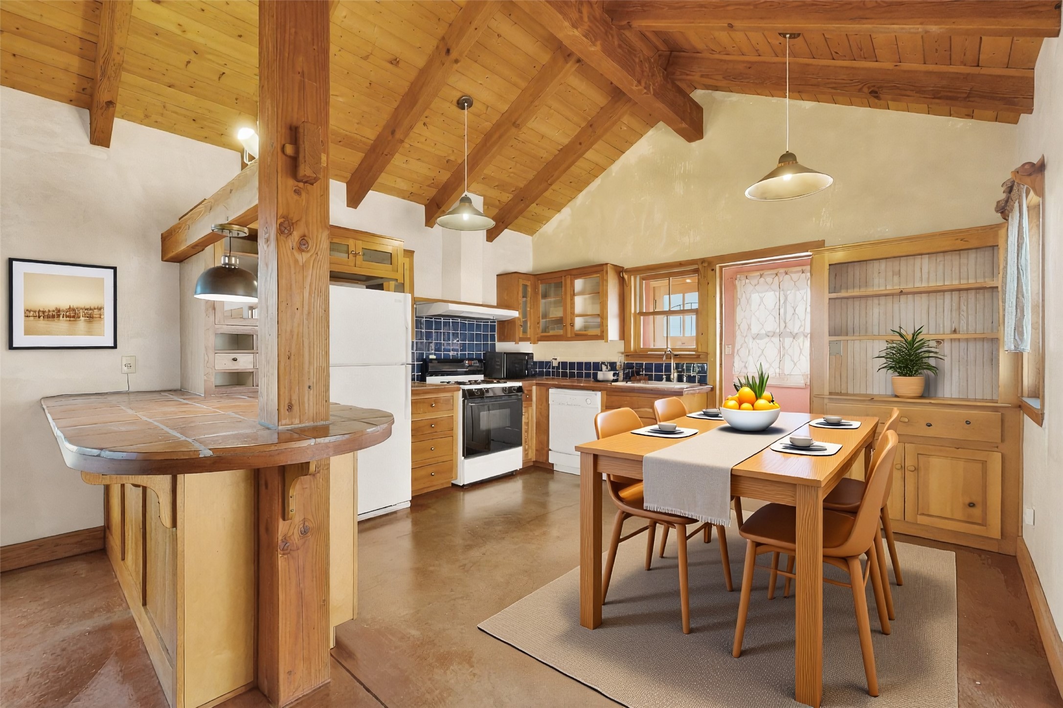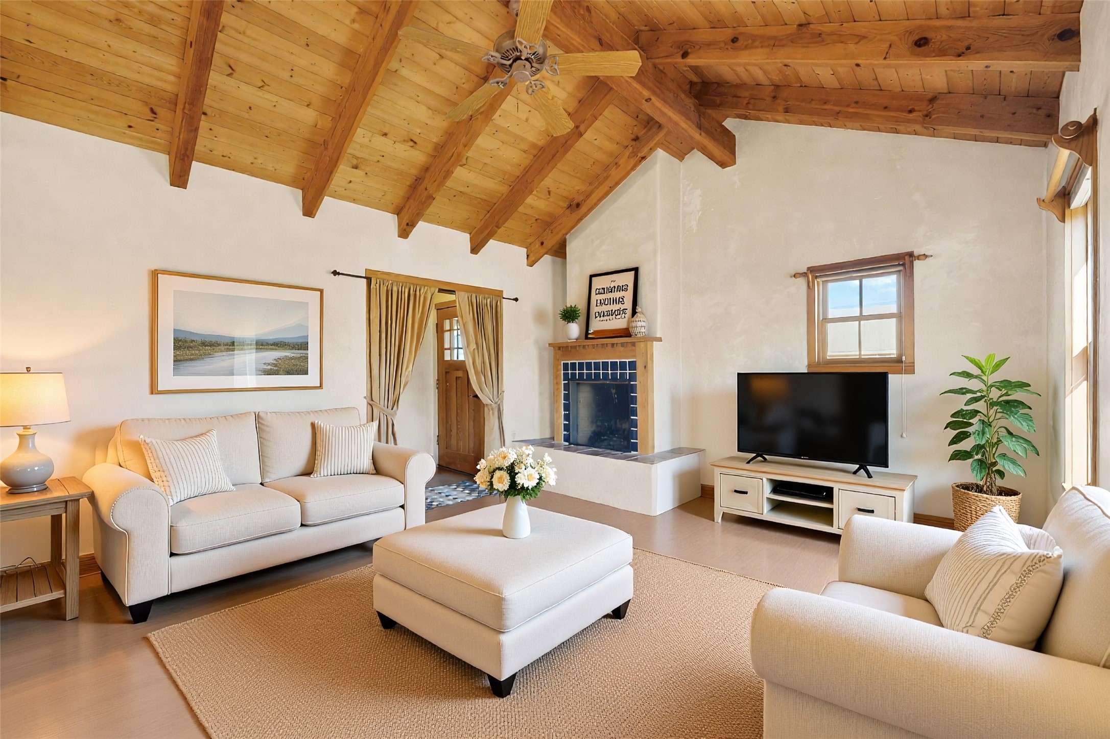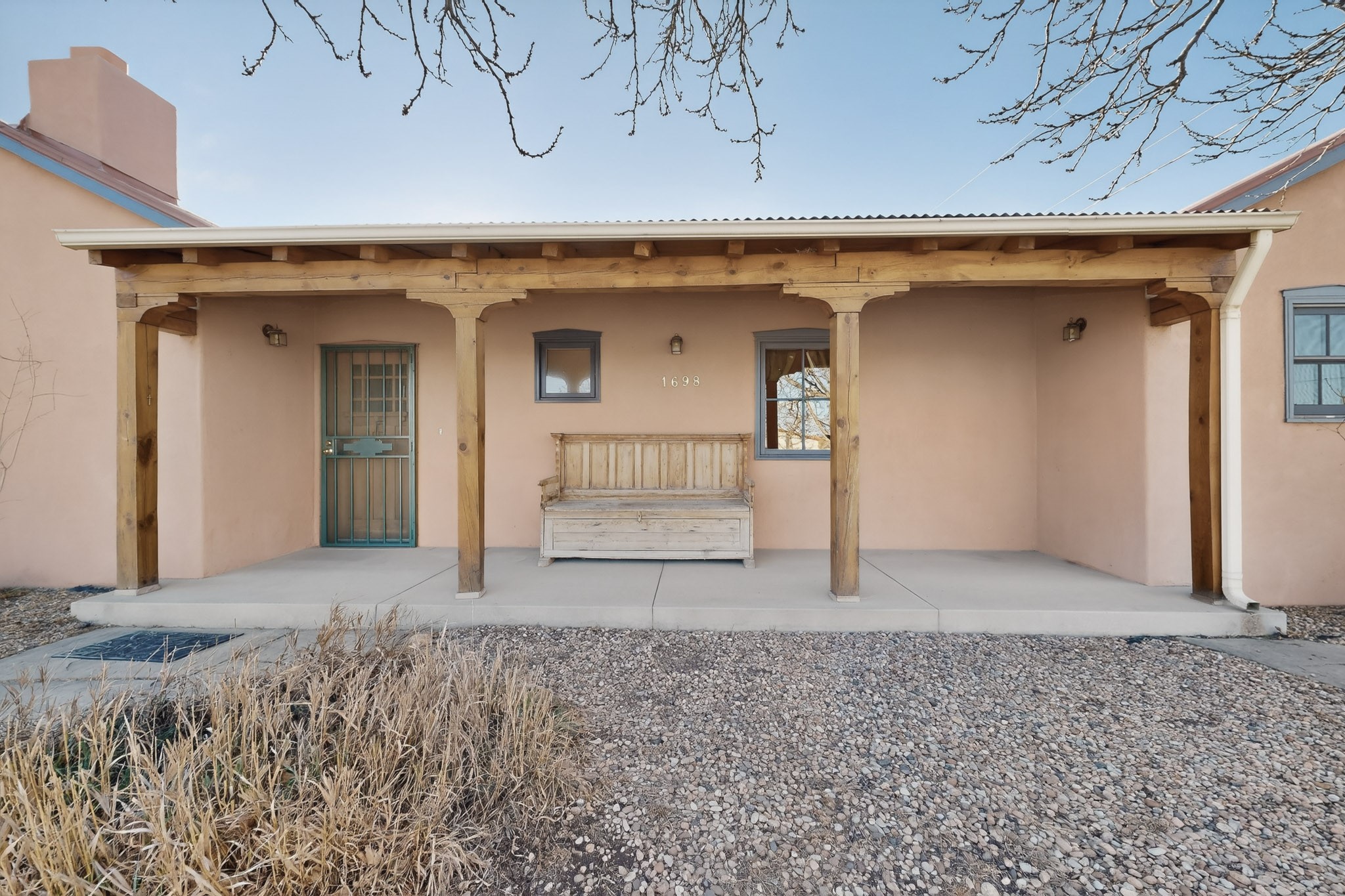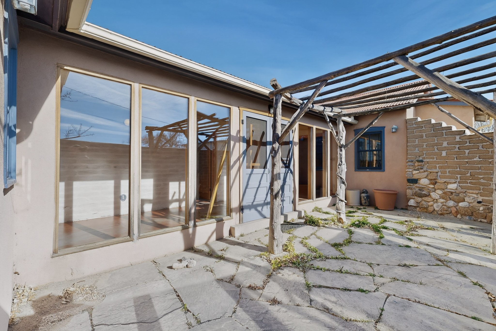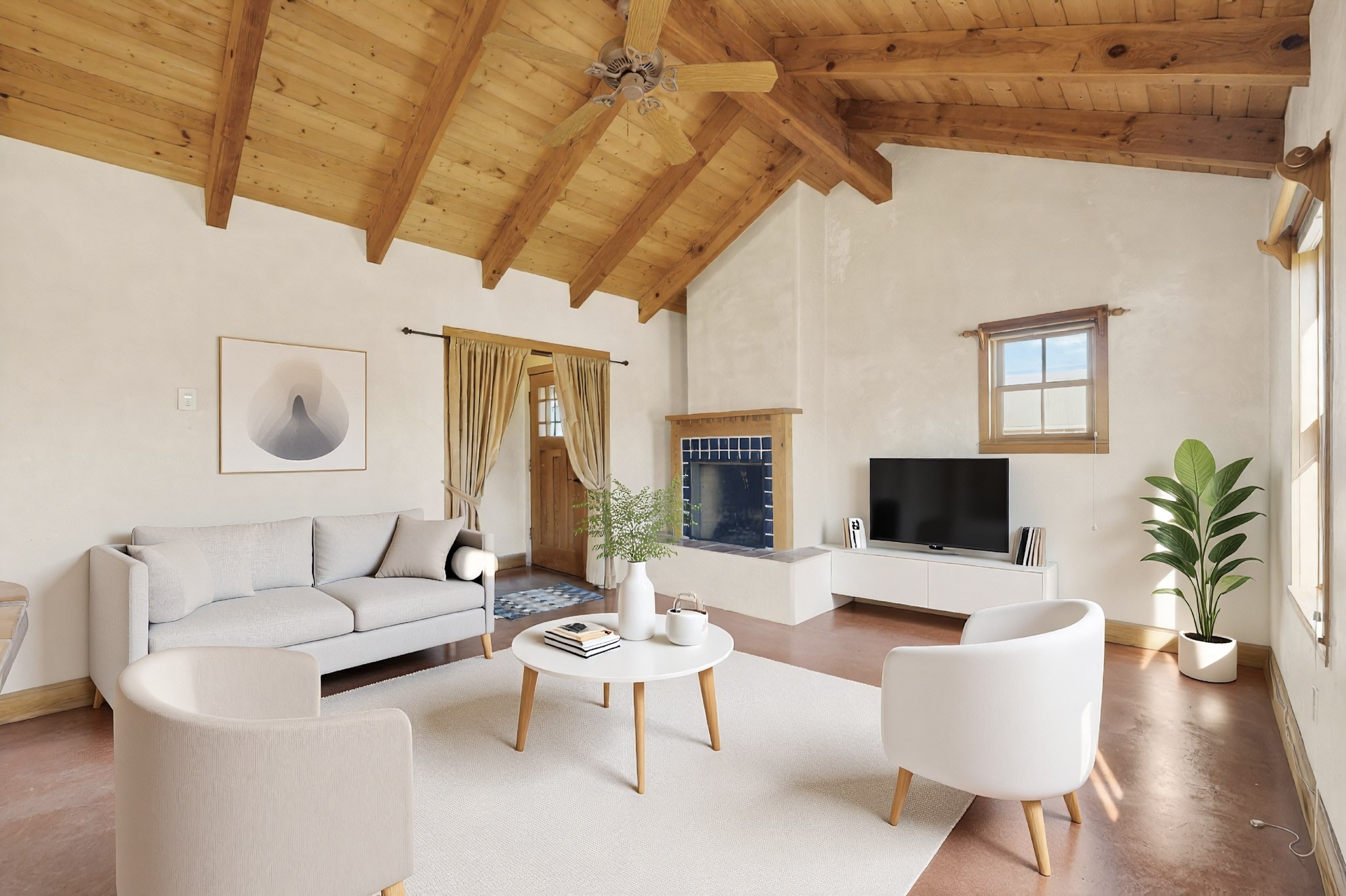 Quintessential northern New Mexico design meets everyday livability in this uber-charming two-bedroom, two-bath home that feels rooted, warm, and unmistakably Santa Fe. Polished concrete floors run throughout, paired with radiant heat for year-round comfort, while a pitched roof and high ceilings bring in light and a relaxed sense of volume. The cozy kitchen opens to the main living space, anchored by a sweet kiva fireplace that adds warmth and character. Two comfortable bedrooms offer privacy and flexibility. A detached studio provides inspiring bonus space for art, work, or easy conversion into a guest house. Recent improvements include a new water heater, adding peace of mind. Live like a true local with a 7-minute drive or 37-minute walk to the Santa Fe Farmers Market and just ten minutes by car to the heart of the city at the Santa Fe Plaza. A soulful home in a location that connects you effortlessly to Santa Fe living.