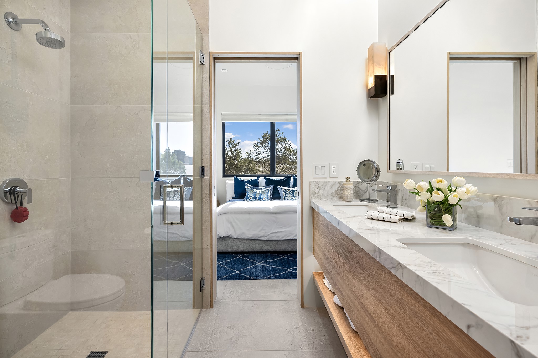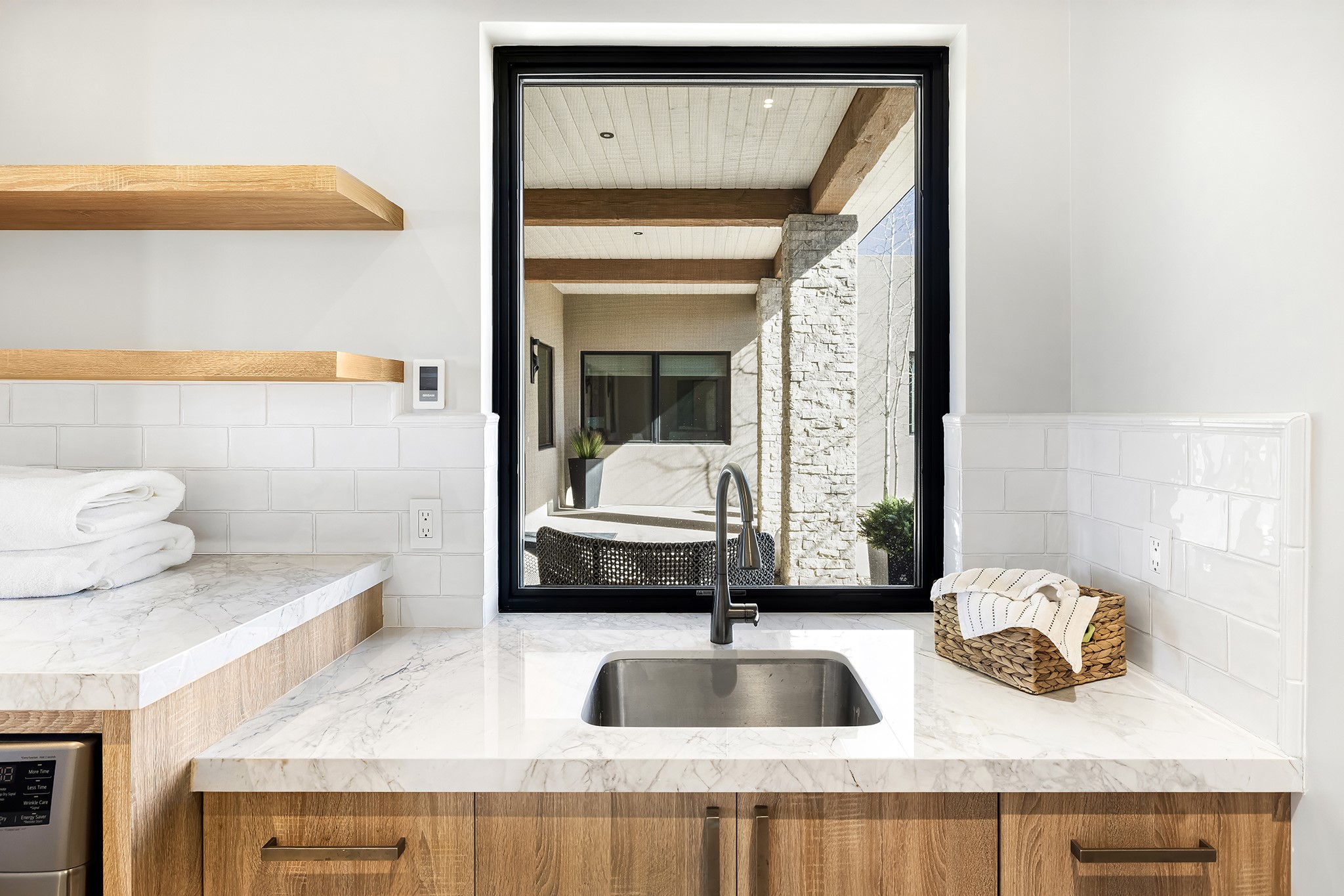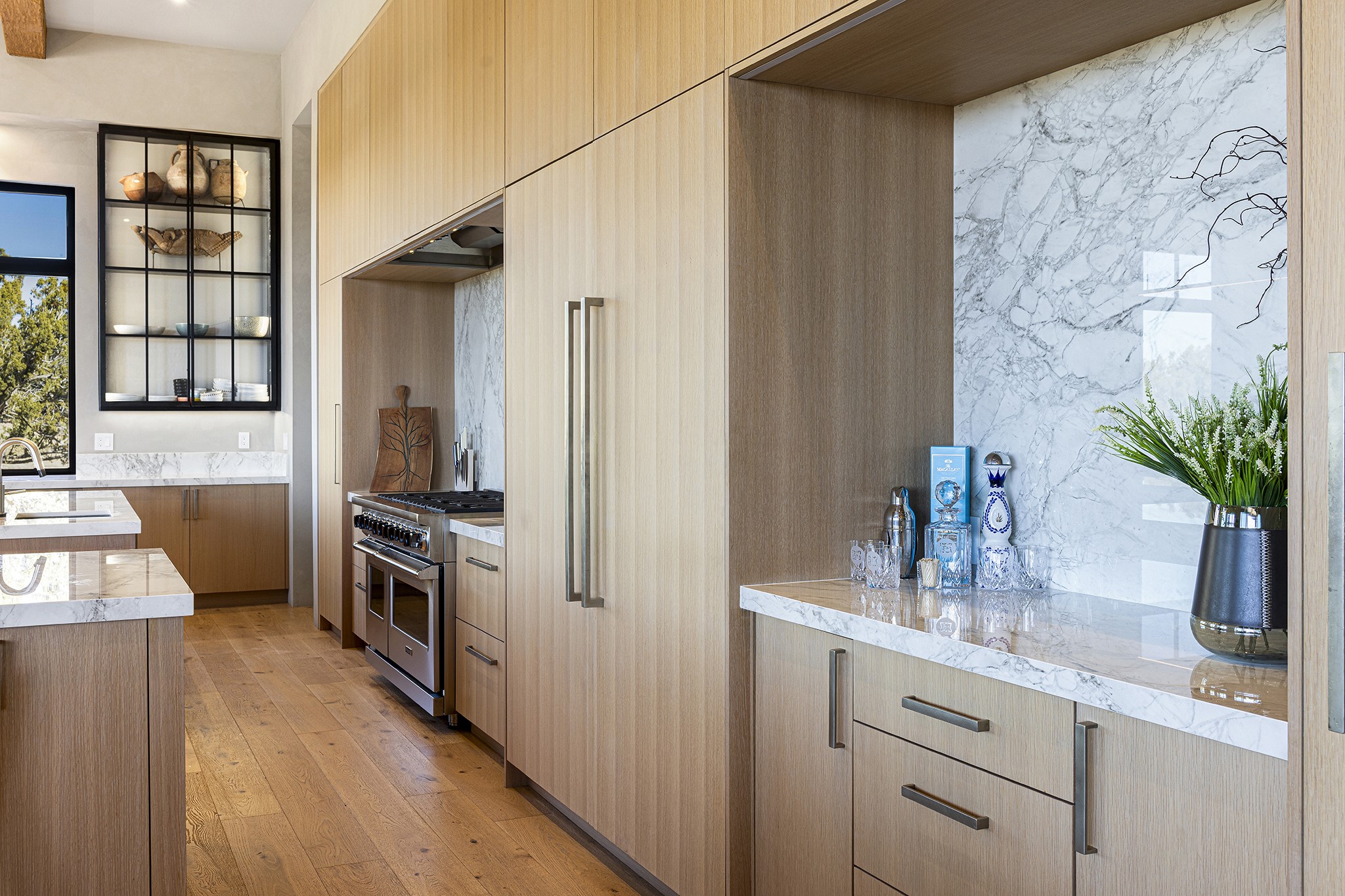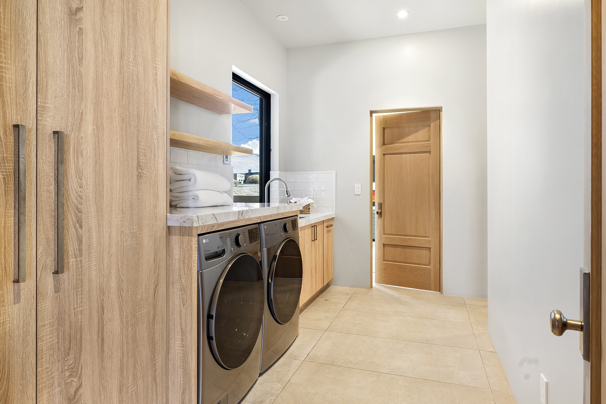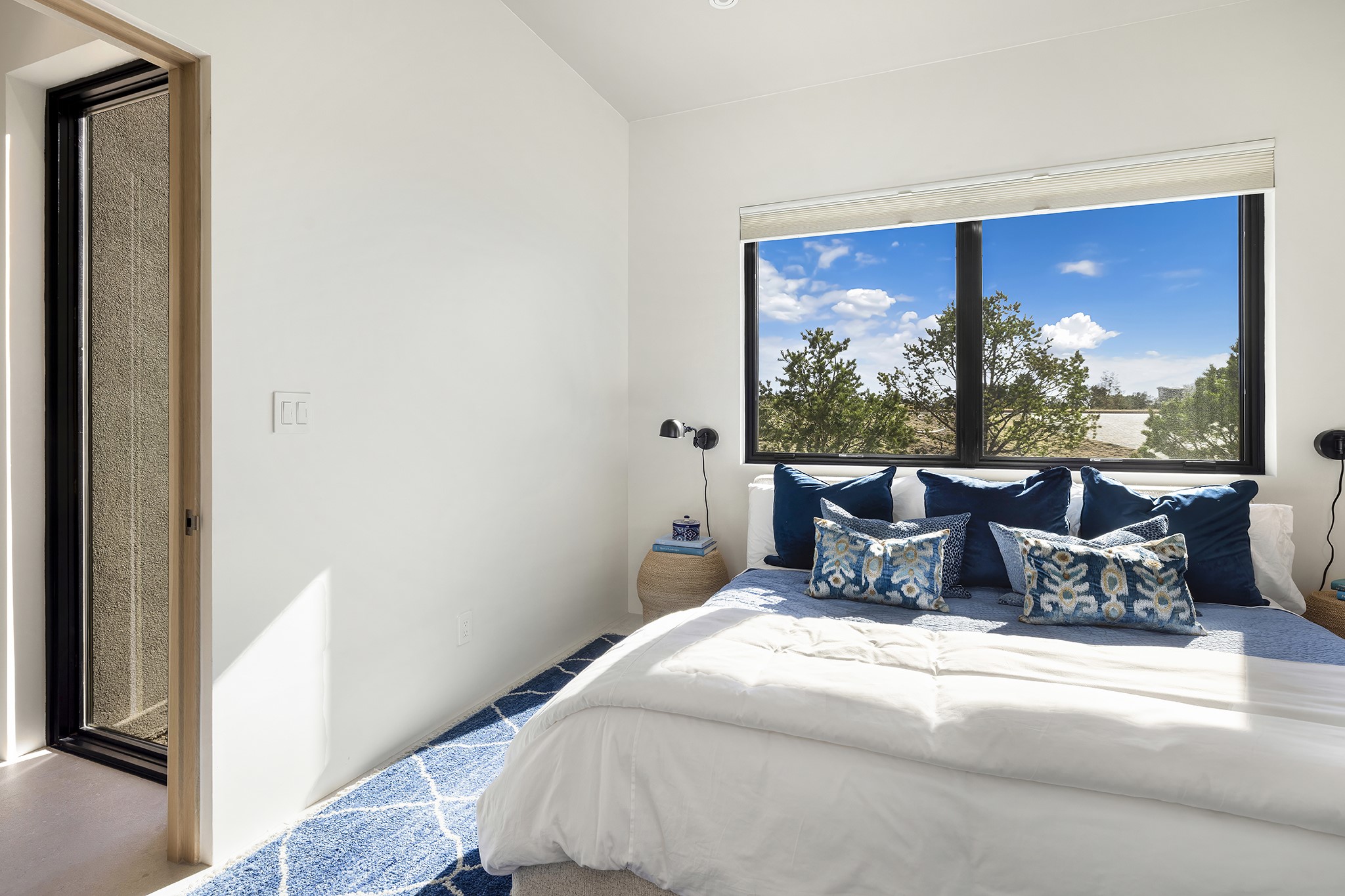 A masterful blend of modernity and warmth, this single-level custom home--built by Prull Custom Builders in 2021-- is sited on 1.8 acres and framed by the panoramic majesty of the Jemez Mountains. Every detail was thoughtfully designed to reflect the natural beauty of New Mexico while embracing clean, contemporary lines and sustainable living.The heart of the home is the expansive living, kitchen, and dining area--anchored by a split stone accent wall with a sleek gas fireplace and wrapped in floor-to-ceiling windows that open to a deep portal with a gas firepit and uninterrupted views. The chef's kitchen is a showpiece, featuring an 8-burner Viking range, Sub-Zero refrigerator, expansive stone countertops, and a large center island with bar seating and a prep sink--ideal for gathering and entertaining.Organic textures and subtle design elements are woven throughout: lime-washed walls, distressed beams, and a soft stone feature wall create a quiet luxury that feels both rooted and elevated. Powered by solar, this home pays homage to the land in both form and function.The private primary suite and adjacent office offer direct access to the portal and inspiring western views. In the guest wing, three bedrooms, two bathrooms, and a media room provide generous accommodation and flexible use. A separate flex room--currently an art studio--is located off the laundry room for added versatility.This is a rare opportunity to own a nearly new, artfully crafted home in the coveted community of Las Campanas--where architecture, sustainability, and the soul of the Southwest converge.