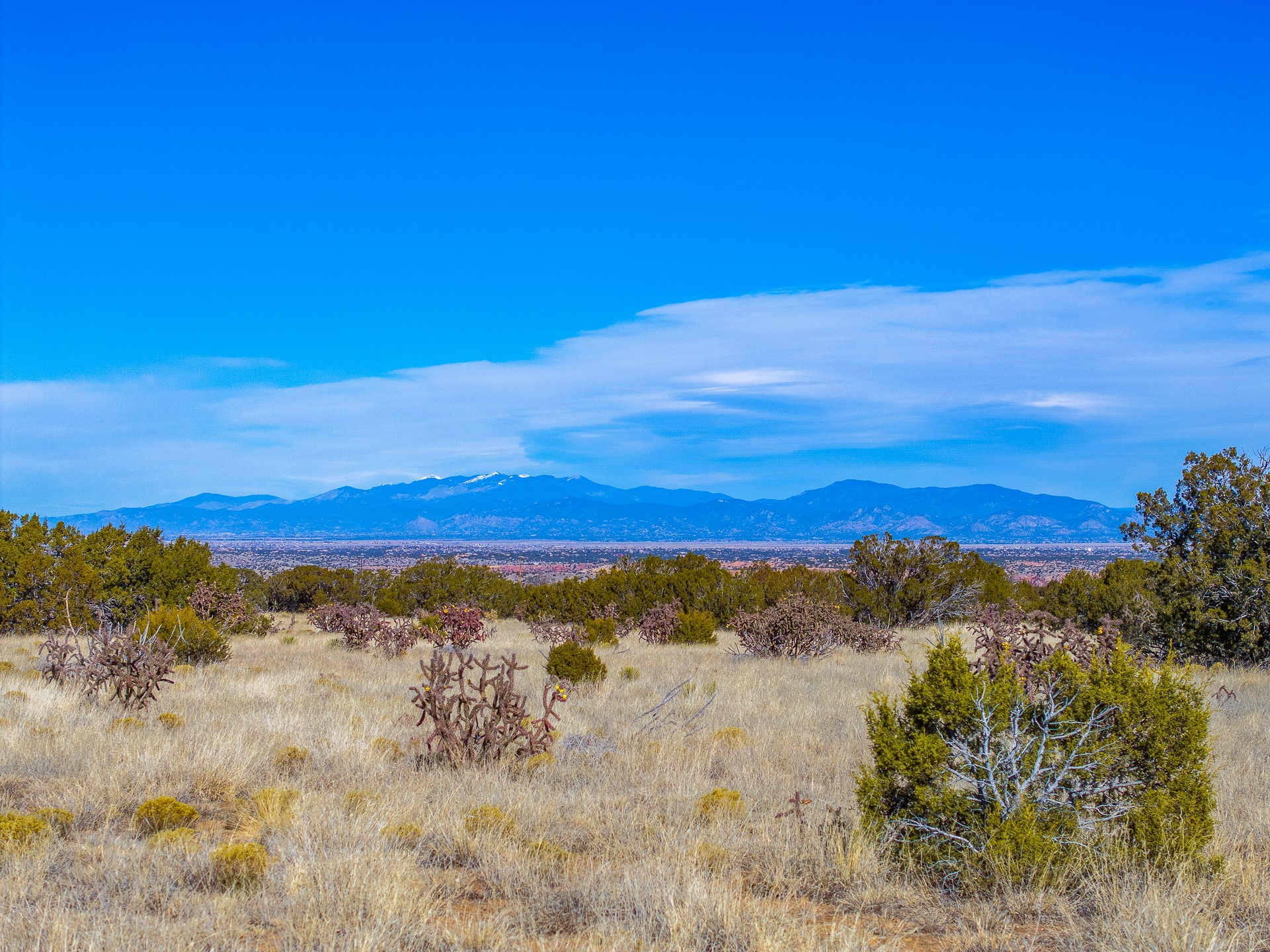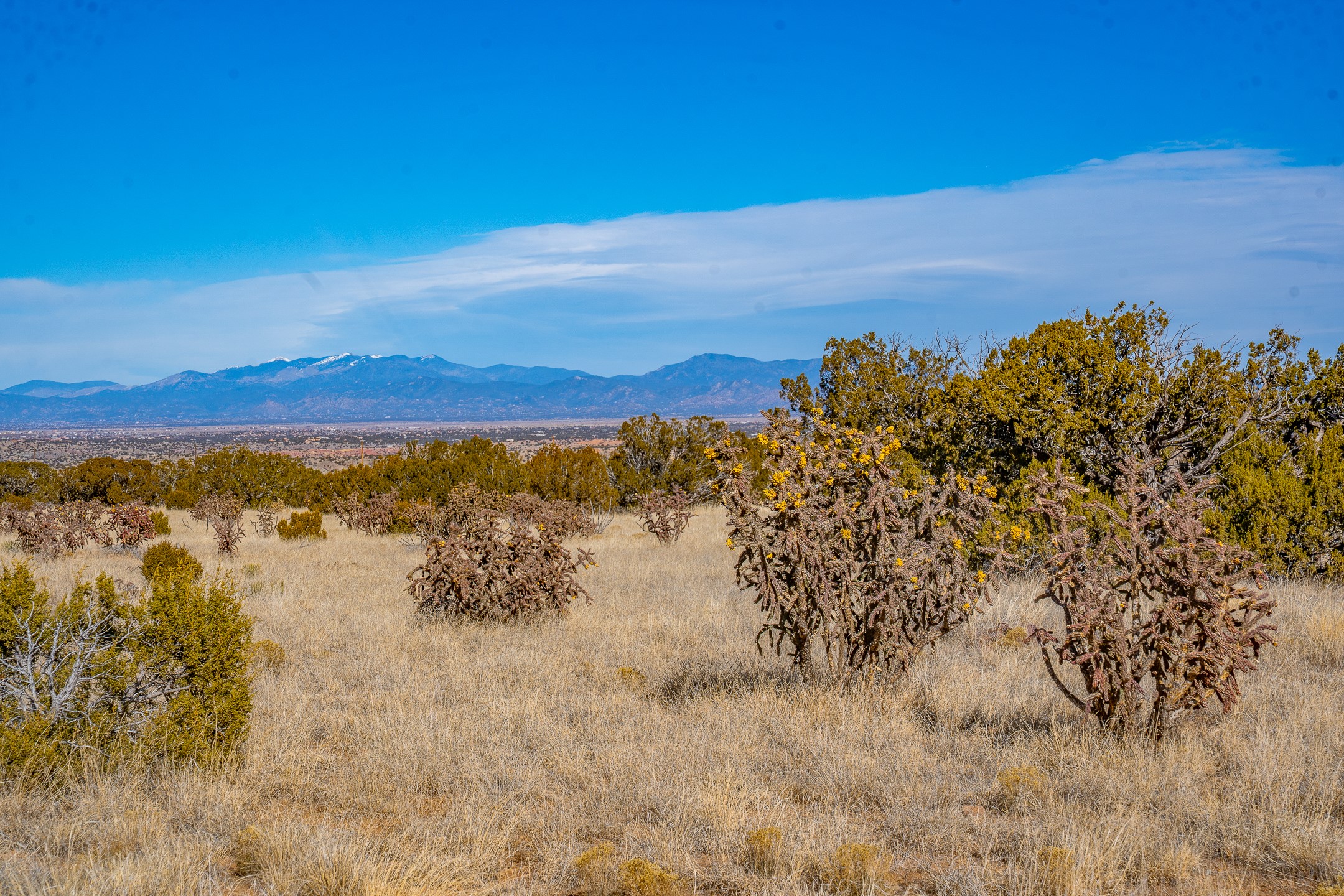 Three-hundred-and-sixty degree views from this twenty acre lot in the foothills of the Ortiz Mountains. Perched on the edge of a dramatic arroyo, this off-grid parcel is just a mile from pavement, and is mostly level, offering acres of easily usable land. Quiet, with excellent sunsets, mountain views, and the brilliant, starry nights that you can only get away from the city. Roads in area have seen recent improvements, property is roughly 2000' from underground power. Roughly 20 miles from Santa Fe and near Madrid and Cerrillos for dining and entertainment. Covenants forbid mobile homes, have very few other restrictions. Small homes and varied architectural styles welcome. Multiple properties are addressed 56 Ocean View, please get directions before seeing.