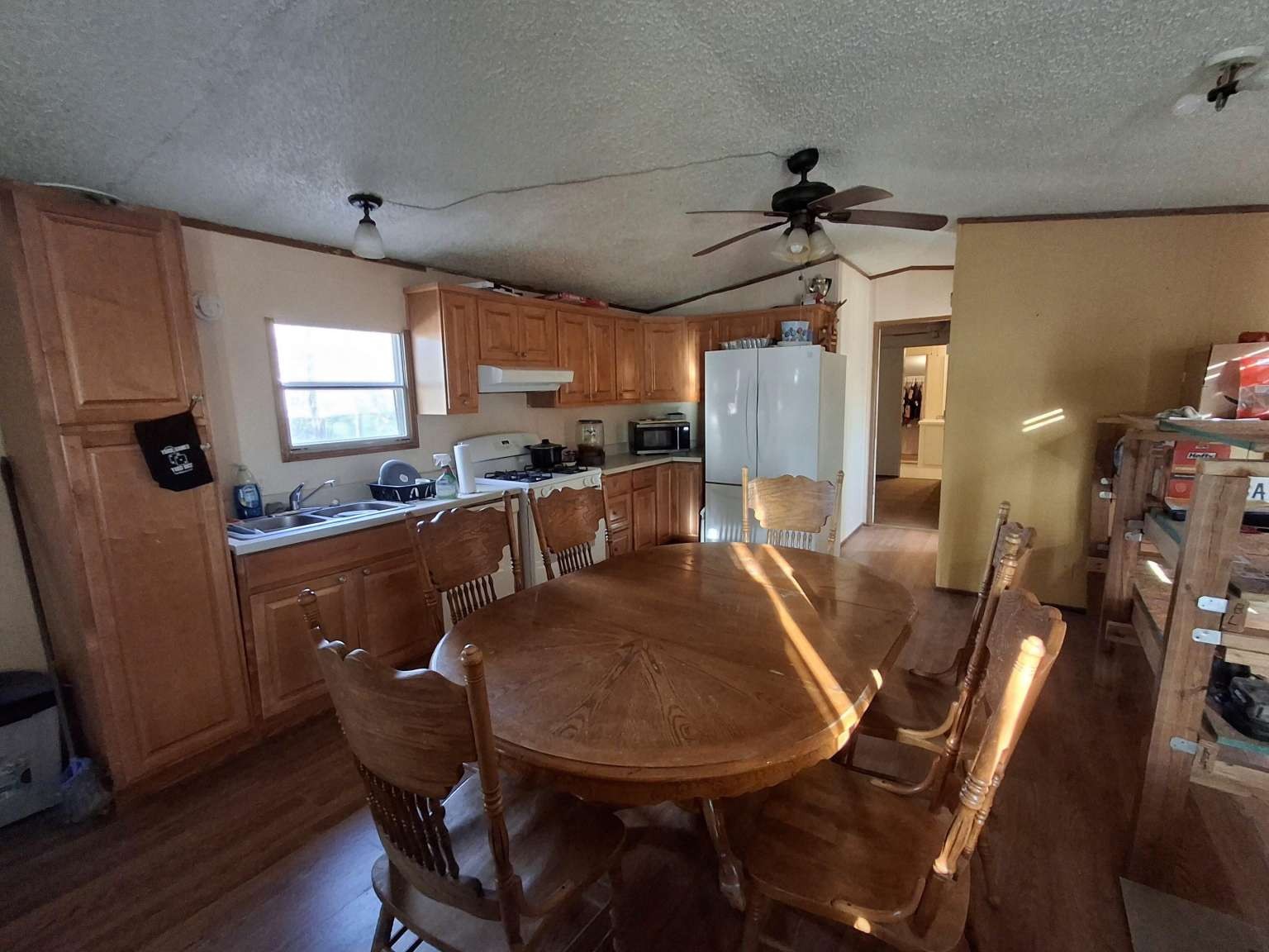 Discover this well-kept 3-bedroom, 2-bathroom residence in Farmington, offering 1,280 square feet of comfortable living space. The property features a split floor plan with laminate flooring and an eat-in kitchen. Recent outdoor enhancements include a new front deck, perfect for enjoying the local atmosphere. The exterior is fully fenced with a sliding gate for added privacy. Notable features include a durable metal roof and a swamp cooler for seasonal comfort. This property is in good condition and ready for its next owner to move in and enjoy the 0.23-acre lot.