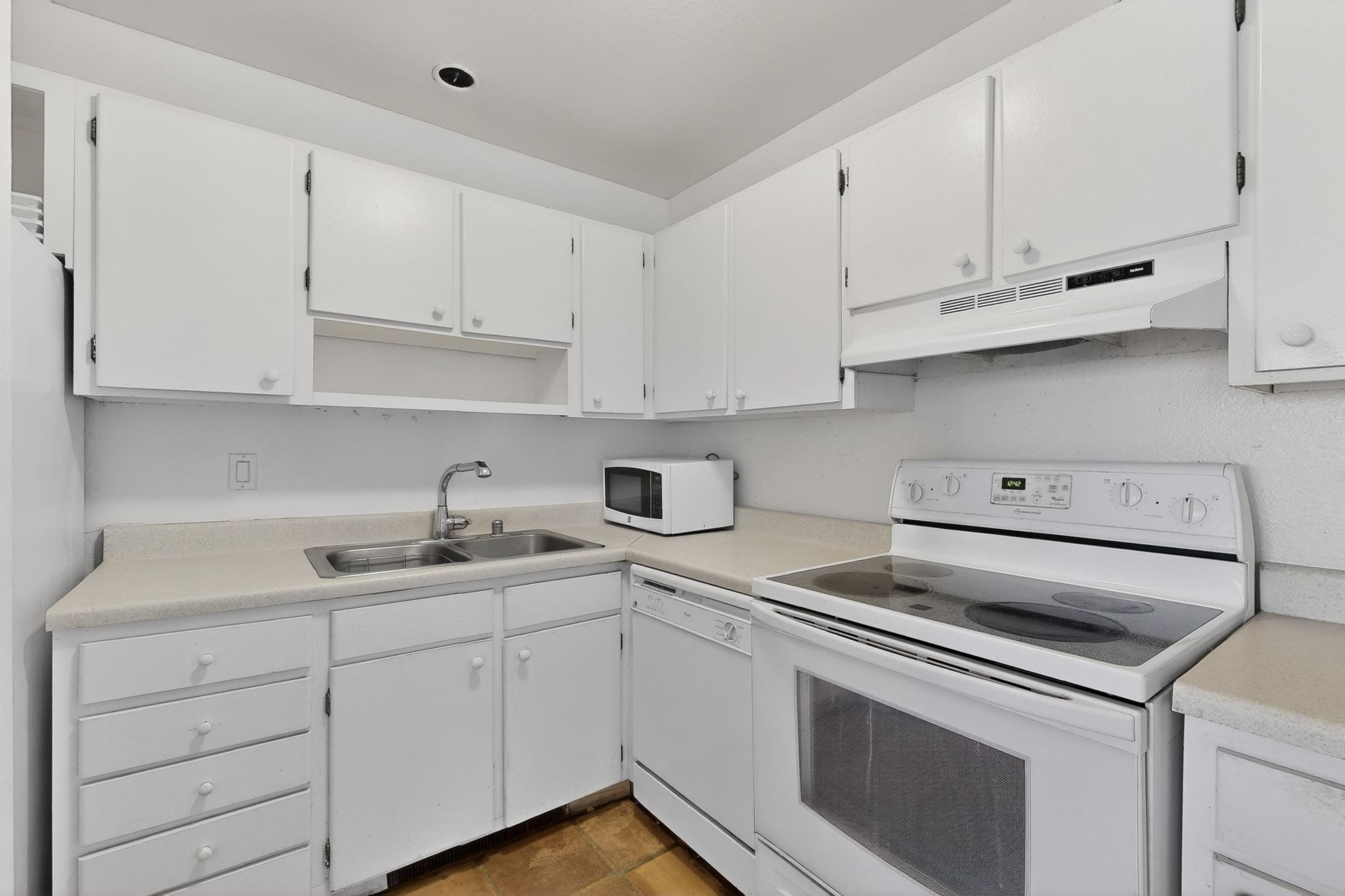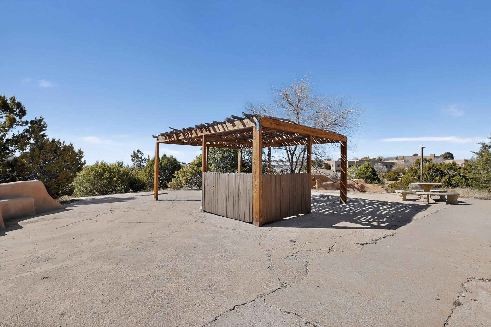 Live at the Los Arroyos Condos in the east area of town offers two bedrooms, a 1 3/4 bathrooms and it includes a large laundry and storage room with a stacked washer and dryer. The flooring is saltillo tile in all living areas and bedrooms (no carpet), the second bedroom has laminate wood flooring. This ground-floor condo overlooks the arroyo and trail! The Los Arroyos area is approximately 14 acres of trees, flowers, and shrubs. It's close to medical facilities, along with convenient shopping and a few minutes' drive to downtown. All utilities are included in the HOA fee except electric. The Los Arroyos Compound includes access to an array of amenities, including a clubhouse, an indoor pool, an exercise room, a dry sauna, outdoor space for social gatherings, and tennis courts.