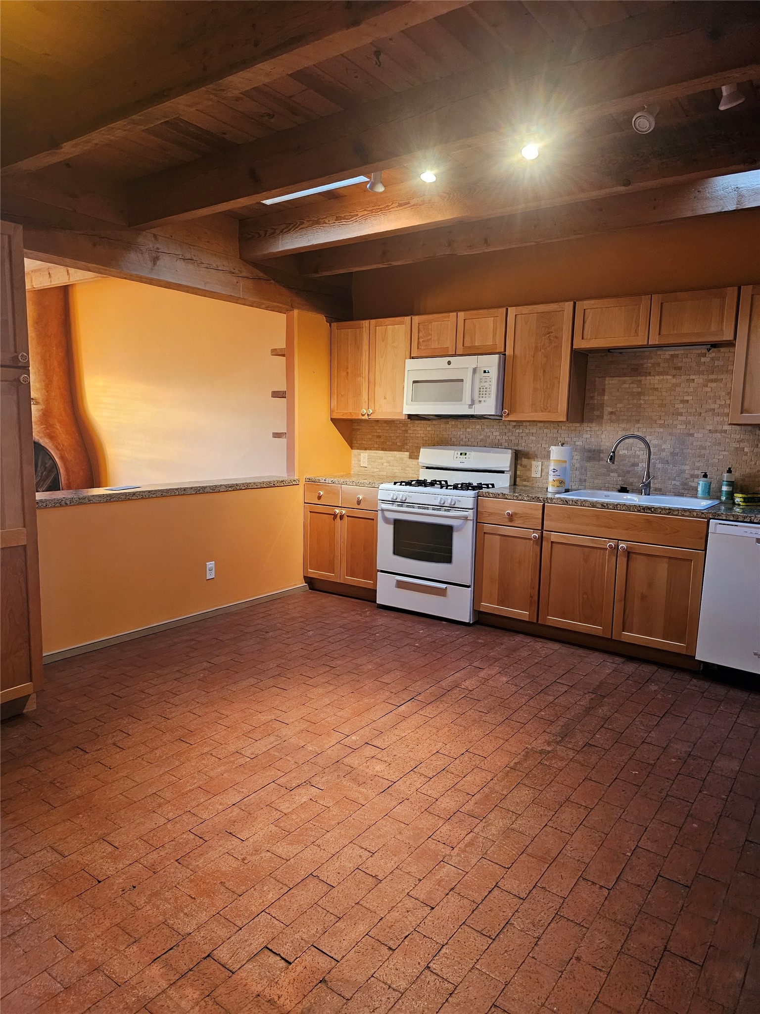 Conveniently located Midtown townhome with authentic Santa Fe style galore! Charming and warm, with mostly brick flooring, tall ceilings, plentiful wood accents, a classic kiva fireplace and an expansive eat in kitchen! Sited on a corner lot, with a large side and rear yard, the exterior provides multiple opportunities for gardening, entertaining and enjoying our beauty. Perfect full time home, second home or investment property. Come see this one fast!