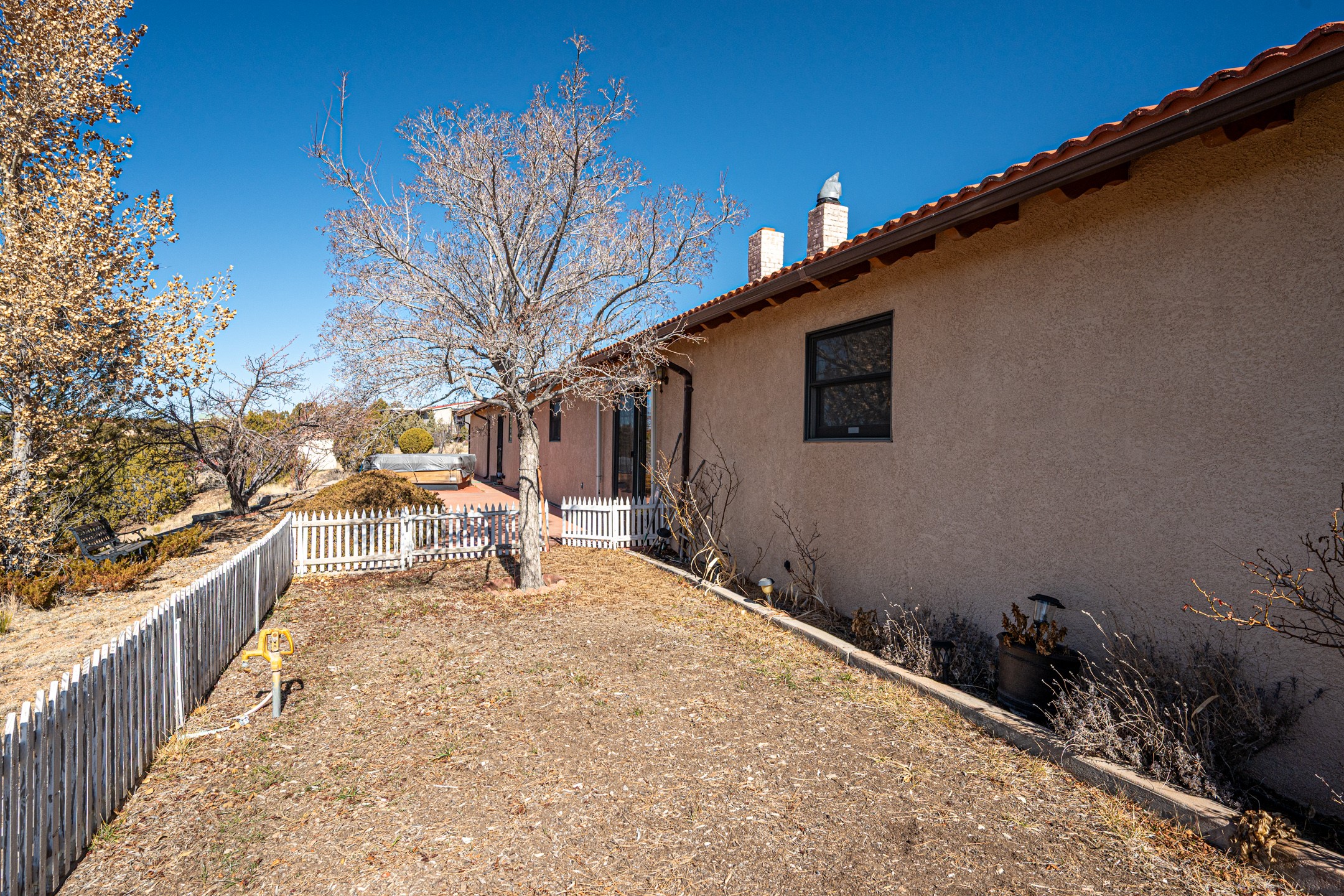 Astounding Sangre Views abound from this hilltop perch! This single level one owner home is sited on 5 acres and features 2 fireplaces, 3 bedrooms, spacious floorplan, separate laundry room with adjacent powder room, 3 garage bays and plenty of room to garden. There are mature apple trees and a fenced vegetable plot. The home offers a private well and natural gas. Ojo Springs and El Rancho de Los Golondrines are both just up the road and this country setting in the Village of La Cienega is less than 30 minutes to The Santa Fe Plaza!