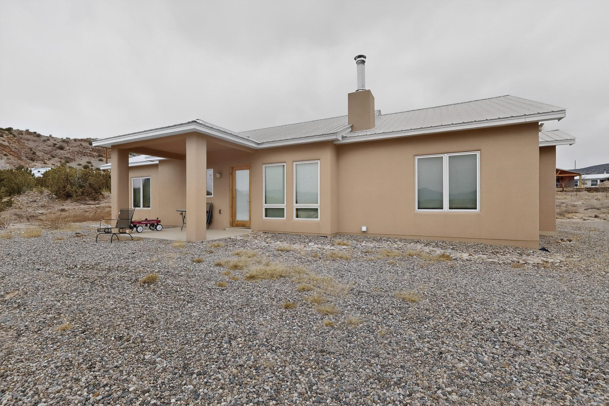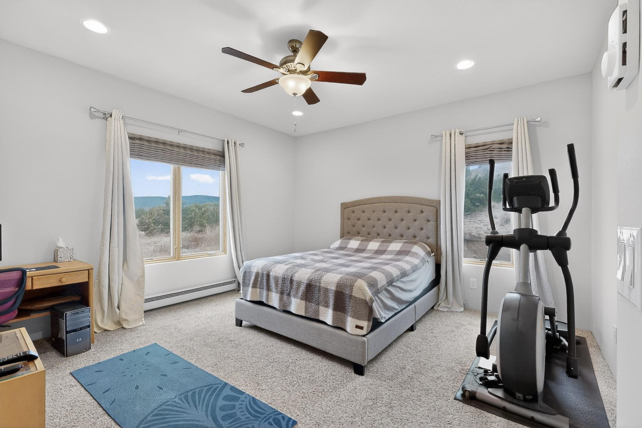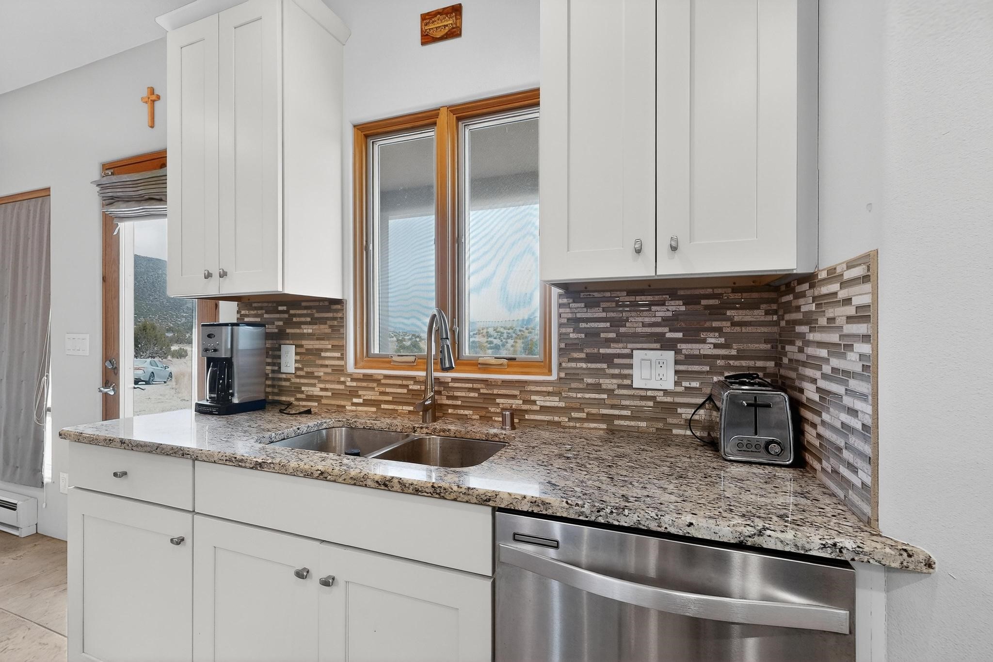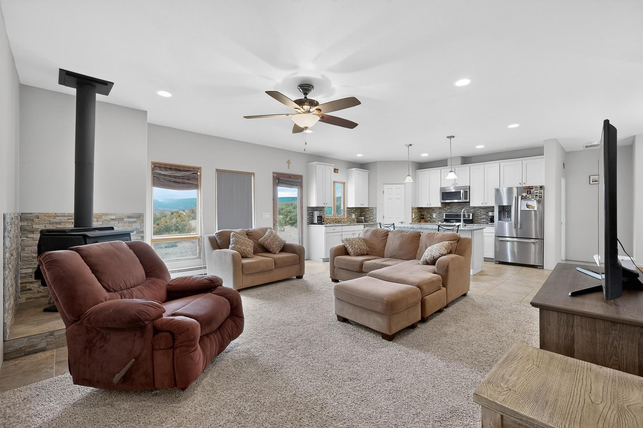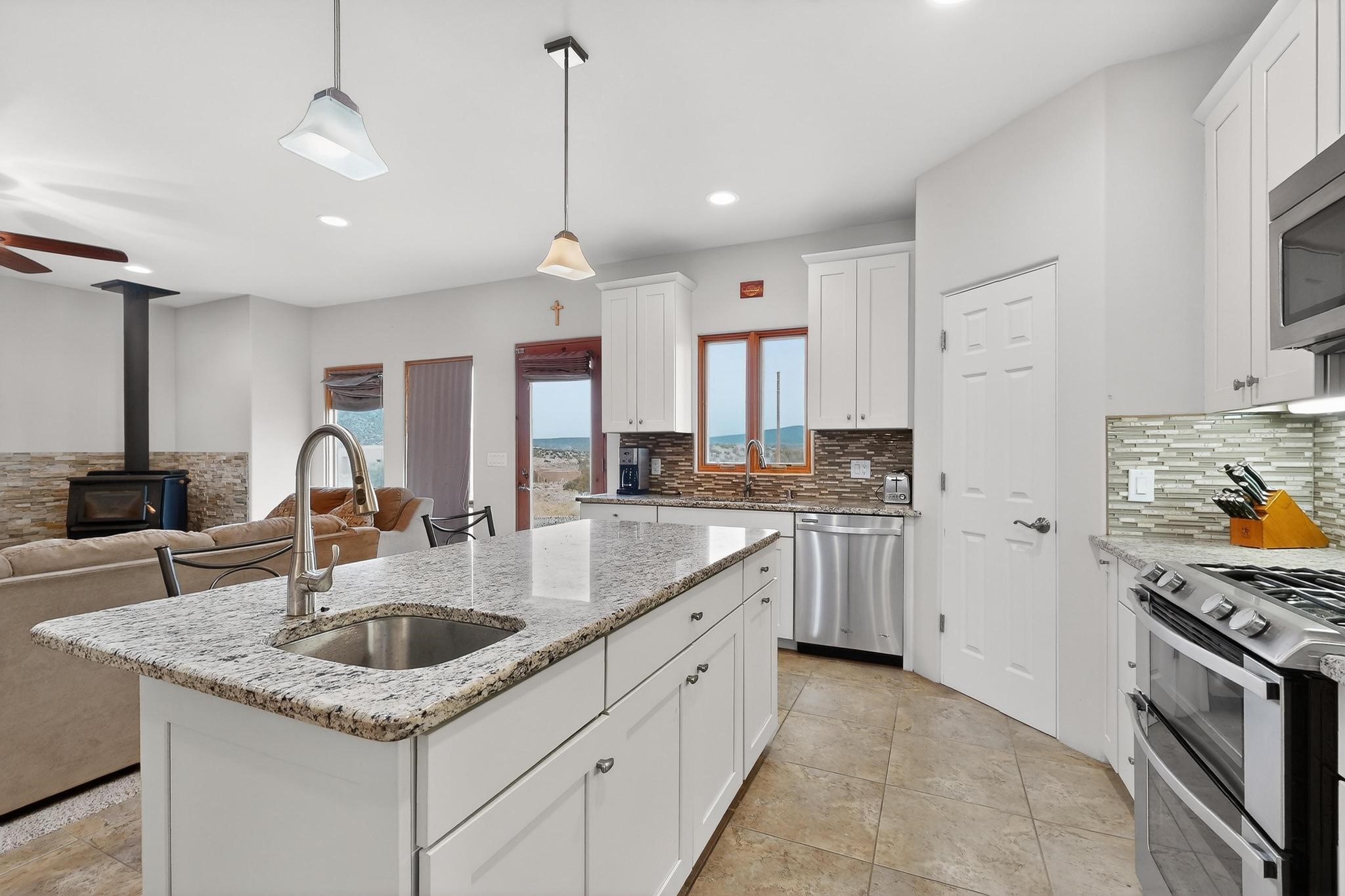 Experience breathtaking views from this beautifully custom-built, one-owner home tucked inside a gated area with its own private driveway. Thoughtfully designed with 3 bedrooms plus a versatile fourth room ideal for an office, guest space, or additional bedroom, the layout offers comfort and intentional design throughout.Inside, craftsmanship shines. The kitchen features custom granite countertops, a propane stove, a center island with prep sink, soft-close drawers and cabinets, crown molding cabinetry, and a full backsplash that ties the space together with sophistication and style. Custom-built front and kitchen doors add distinctive character.The living area includes a wood-burning stove, thoughtfully designed with tile surrounding the carpeted space to accommodate bringing in firewood with ease. Heating is also provided by electric baseboard heating, and the home is equipped with ducted evaporative cooling. Hot water is supplied by a propane water heater.The primary bathroom offers a double vanity, adding both functionality and space. The property utilizes a private well and private septic system, with the well pressure tank replaced approximately three years ago. Enjoy the benefit of no HOA -- just a $175 annual gate maintenance fee.Privacy, views, and carefully considered details come together in this exceptional opportunity!Step inside and experience all the thoughtful details and stunning views this home offers--schedule your visit today!